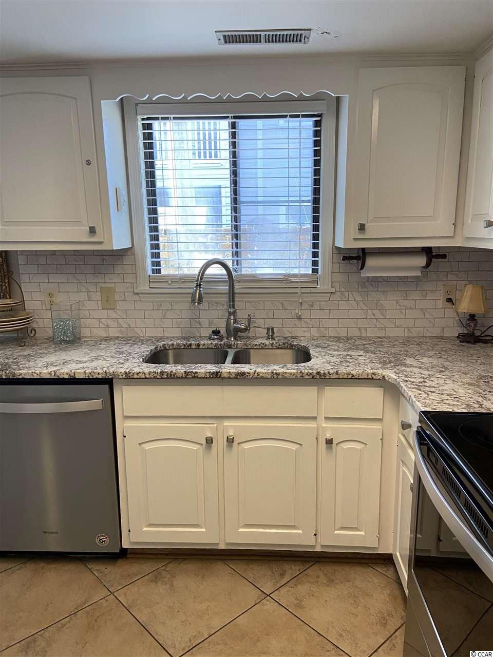 Beautiful townhome that has just been repainted, granite countertops in kitchen and baths, stainless steel appliances, new backsplash in kitchen. Kitchen cabinets painted. Only 12 units, very private. Located one block to ocean and two blocks to Main St. This is a Shagger's delight!!! Walk to downtown and Fat Harold's. Private bricked in patio. Pool in complex. Pull down attic for extra storage. Rarely do these units come on the market.