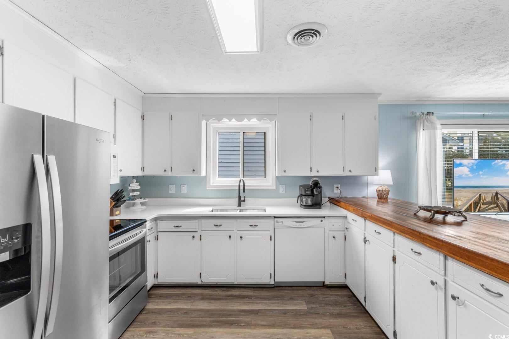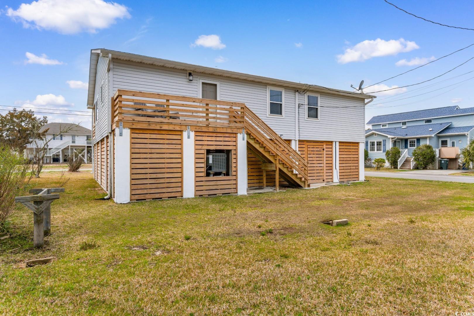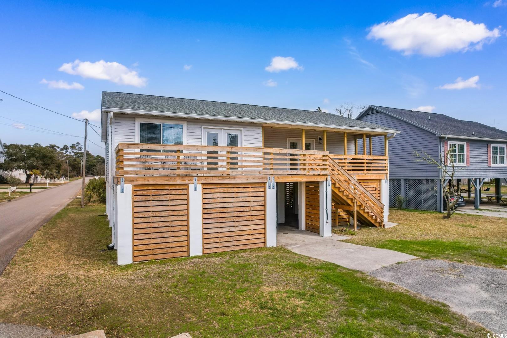 Welcome to your dream coastal retreat in the highly sought-after Windy Hill section of North Myrtle Beach! This charming, fully furnished, 3-bedroom, 2-bathroom raised beach home is just a short stroll or golf cart ride to the beach, offering the perfect blend of comfort and convenience. Step inside to a bright and open floor plan with abundant natural light, LVP flooring, a spacious living area, and a beautifully designed kitchen featuring stainless steel appliances, granite & butcher block countertops, and ample cabinet space with a breakfast bar. The primary suite offers a private en-suite bath, while the additional bedrooms provide plenty of space for family and guests, with easy access to the second full bath with upgraded double sink vanities. Enjoy outdoor living on the large covered deck, perfect for relaxing or entertaining, or sunning on the back deck with the added privacy. The home also features ample storage space underneath, covered parking, and an outdoor shower-ideal for rinsing off after a day at the beach. Located walking distance to the beach, and near top dining, shopping, golf, and entertainment; This home is ideal for a primary residence, vacation getaway, or investment property. Don't miss this incredible opportunity-schedule your showing today!