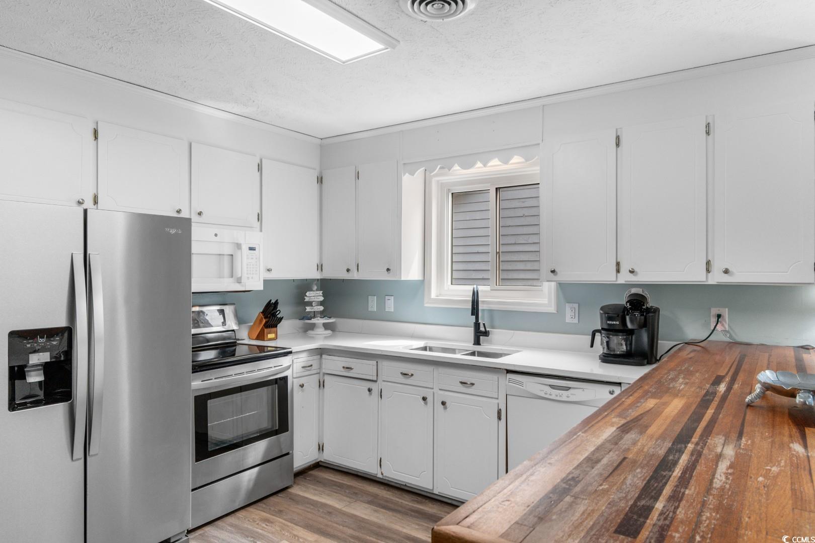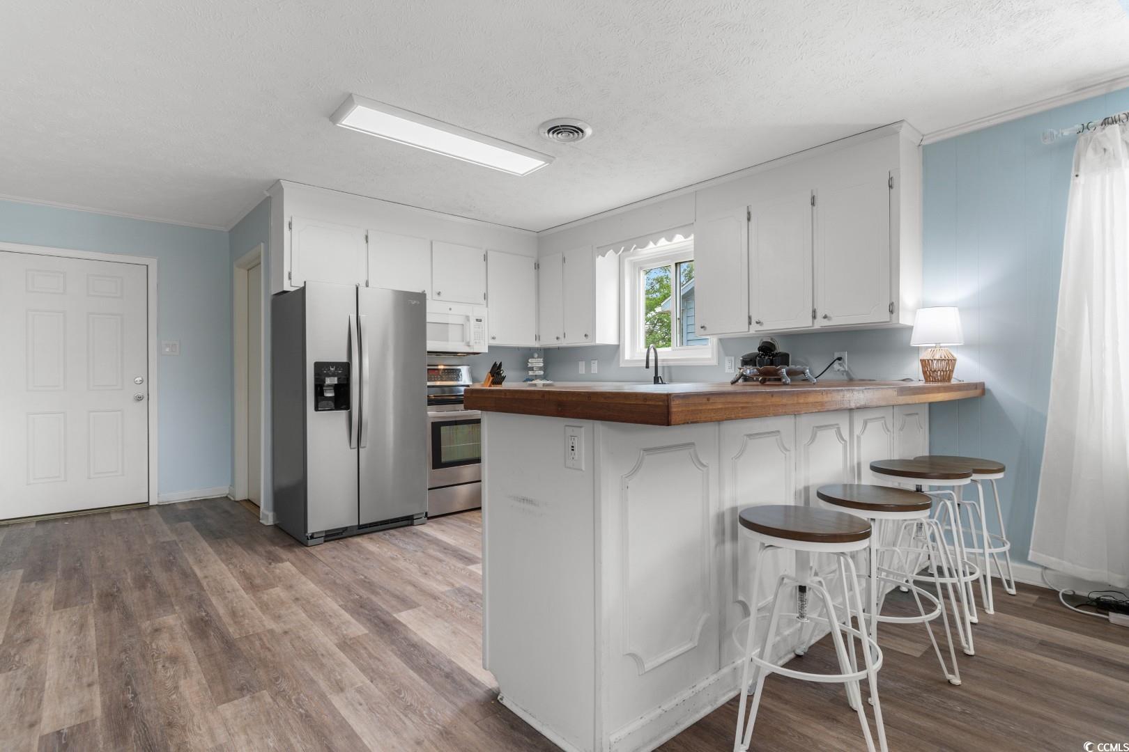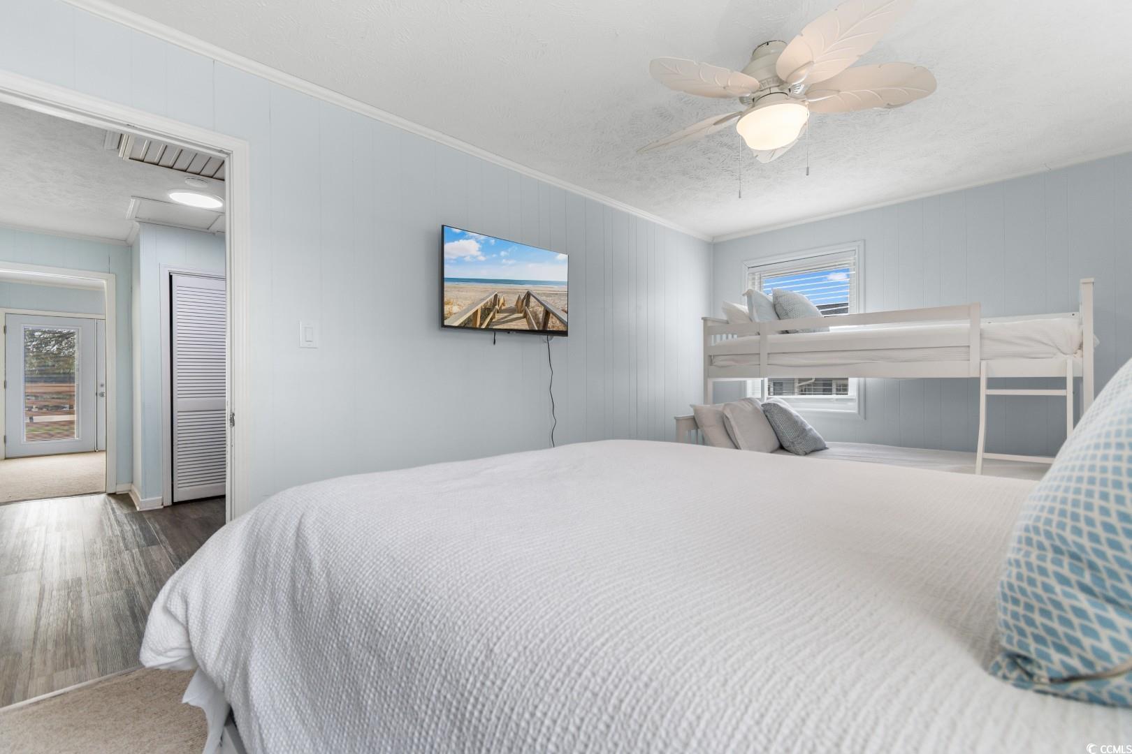 Welcome to your dream coastal retreat in the highly sought-after Windy Hill section of North Myrtle Beach! This charming, fully furnished, 3-bedroom, 2-bathroom raised beach home is just a short stroll or golf cart ride to the beach, offering the perfect blend of comfort and convenience. Step inside to a bright and open floor plan with abundant natural light, LVP flooring, a spacious living area, and a beautifully designed kitchen featuring stainless steel appliances, granite & butcher block countertops, and ample cabinet space with a breakfast bar. The primary suite offers a private en-suite bath, while the additional bedrooms provide plenty of space for family and guests, with easy access to the second full bath with upgraded double sink vanities. Enjoy outdoor living on the large covered deck, perfect for relaxing or entertaining, or sunning on the back deck with the added privacy. The home also features ample storage space underneath, covered parking, and an outdoor shower-ideal for rinsing off after a day at the beach. Located walking distance to the beach, and near top dining, shopping, golf, and entertainment; This home is ideal for a primary residence, vacation getaway, or investment property. Don't miss this incredible opportunity-schedule your showing today!
