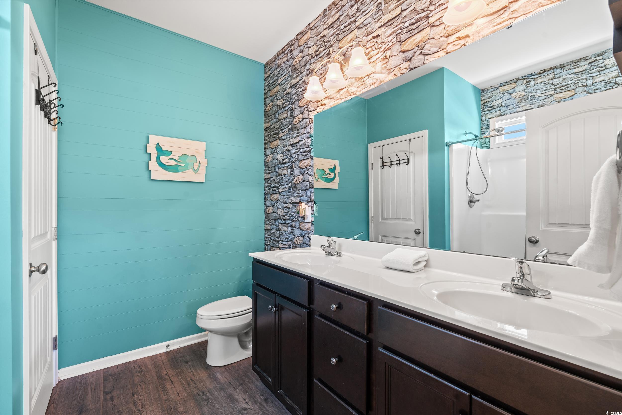 Charming Corner Lot Home with Modern Amenities and Spacious Interiors Welcome to this beautifully maintained corner lot home, perfectly situated on a large lot for optimal privacy and space. This inviting residence features five generously sized bedrooms and three full bathrooms, offering ample room for family and guests. Step into the expansive first-floor master suite, a true retreat with a spacious layout and a luxurious master bath. Enjoy the convenience of dual sinks and an oversized walk-in shower, designed for both comfort and style. The home also includes two additional bedrooms and a full bath on the first floor, providing flexibility and ease of living. The heart of the home is the updated kitchen, complete with granite countertops, stainless steel appliances, and a stylish tile backsplash. Whether you're cooking up a family meal or hosting a gathering, this kitchen is both functional and elegant. Upstairs, discover a versatile bonus room that can be tailored to your needs- perfect as a family room, media center, or entertainment area. Fresh, brand-new LVP flooring graces the downstairs areas, while plush new carpet adds comfort upstairs. Additional features include a Ranni tankless water heater for endless hot water and extra storage in the garage and attic access. The location is just minutes away from the historic charm of Conway, local dining, the Waccamaw River, shopping and hospitals. This home offers a blend of modern convenience and classic comfort, making it must-see. Schedule a tour today and experience all that this exceptional property has to offer!