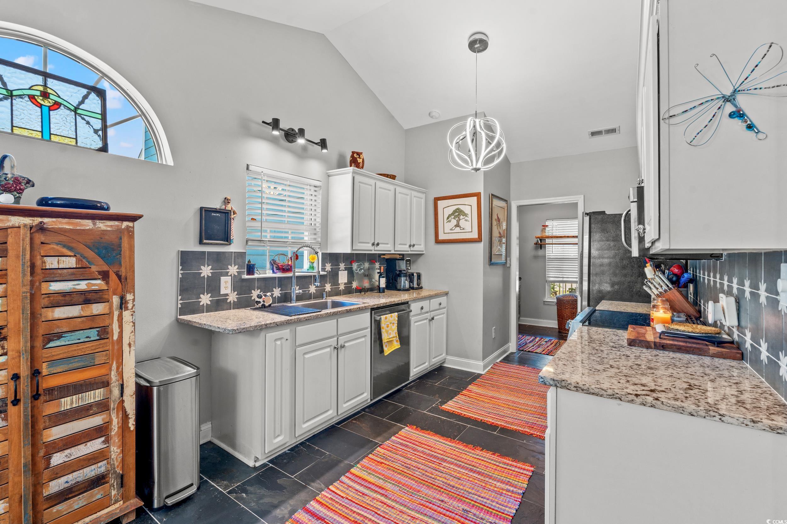 Welcome to your 3 bedroom, 2-bathroom home with Bonus Room, nestled in the Kingston Ridge neighborhood. NO HOA! As you step inside you will be greeted by brand New LVP flooring throughout the downstairs. Gorgeous black slate floor with brand new granite countertops in the kitchen. Cozy living room with a fireplace. Masterfully crafted tile showers in both bathrooms, equipped with Bluetooth speaker exhaust fans. BONUS room upstairs for private office or game area with new carpet. Enjoy your meticulously manicured landscaping while grilling out with friends on the hardscaped back patio. Relax and have a refreshing drink on your screened in sunroom. French drain runs along front of home. Superb location 10 minutes from The Market Commons, Coastal Grand Mall, and Beach; 15 min to Myrtle Beach State Park; 20 min to Myrtle Beach Boardwalk. Roof 2018, HVAC 2013, Hot Water Htr 2024. Schedule your showing today!