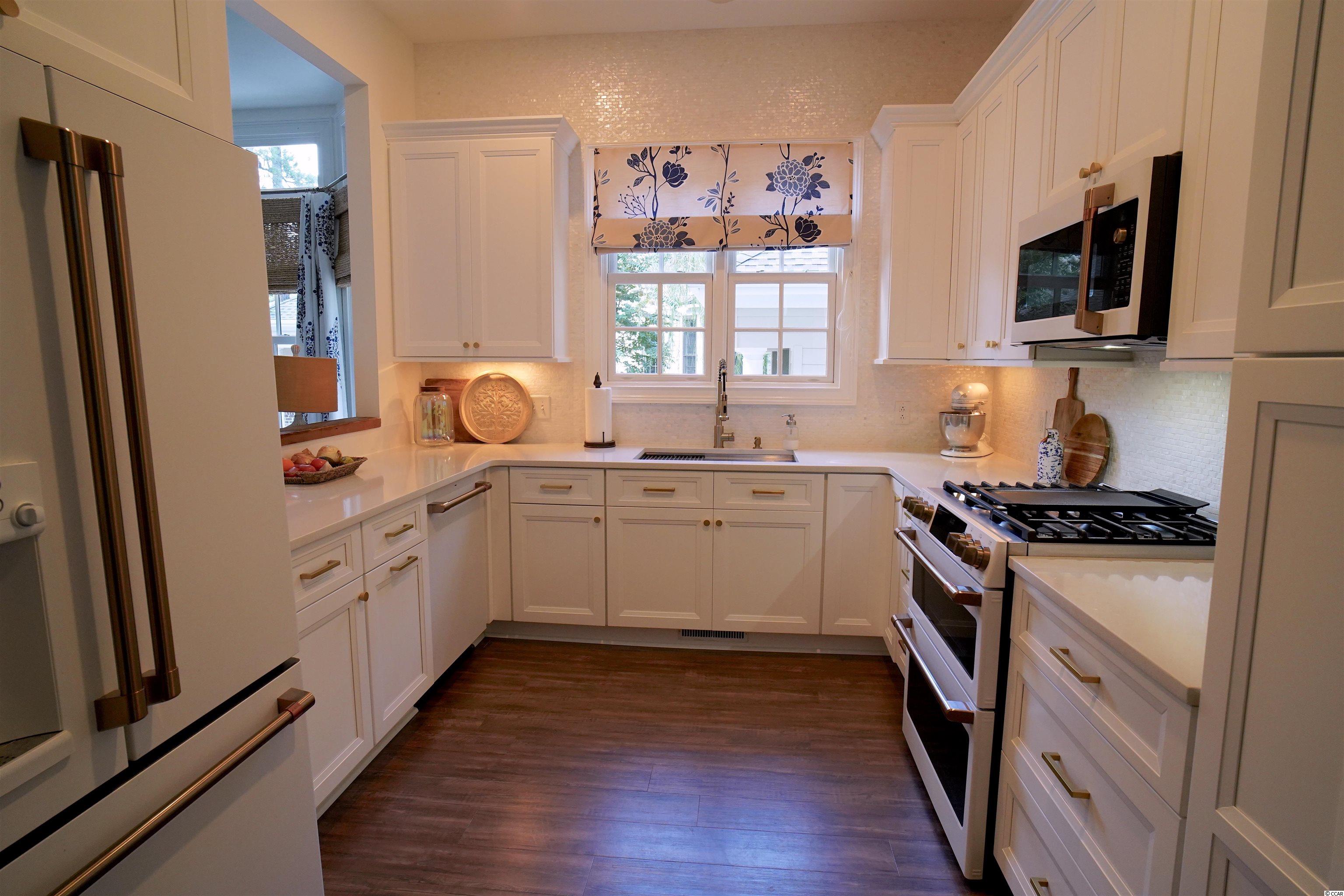 407 A Tuckers Road is a beautiful, inviting four-bedroom, three-and-a-half bath townhome. This fully renovated home boasts many lovely updates to enjoy. As you enter, note the host of windows that flood the space with natural light and draw the eye outside to all the lush greenery. The completely renovated and expanded kitchen is designed to please. Enjoy gorgeous Cafe appliances. The refrigerator is massive and offers a host of features. The double oven is a dream to use. Convenient pull-out trash and recycling are close at handnew cabinetry with soft close drawers and pull-out pantry shelves complete the space. As your eye moves past the kitchen, let your gaze go up, up, up the newly renovated two-story fireplace, clad in shiplap. Flanking the fireplace are handcrafted floating shelves. More windows surround the space. Adjacent to the den is the expanded breakfast room, featuring a custom-built corner banquet for the whole family to enjoy. This room also has beautiful new cabinetry and floating shelves, perfect for a coffee bar. Downstairs you will find the spacious main bedroom and en suite bath, laundry room, and half bath. Upstairs boasts of a great teen/flex space with plenty of room for fun. Three spacious bedrooms and two full, updated bathrooms are located on this floor. Outside is a temperature-controlled detached, oversized two-car garage with attic storage and two adjustable Gladiator overhead storage racks. The square footage of the garage is not included in the total heated square feet. The back patio has plenty of space for grilling, picnic, or lounging. In addition, Litchfield Plantation has a large community pool, Beach House, Plantation House, and a marina. This renovated dream is a must-see. Be sure to check out the walking video tour of this property.