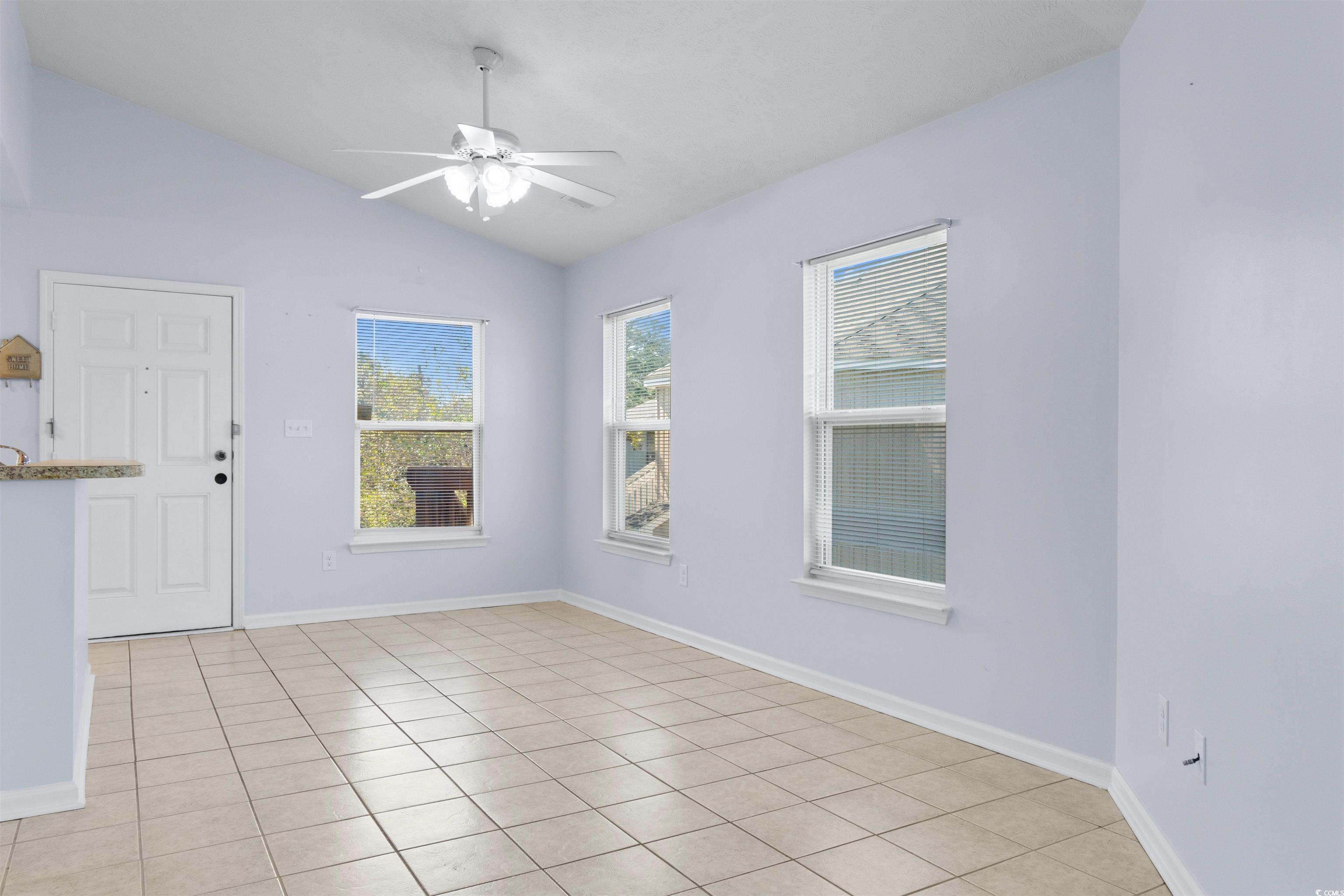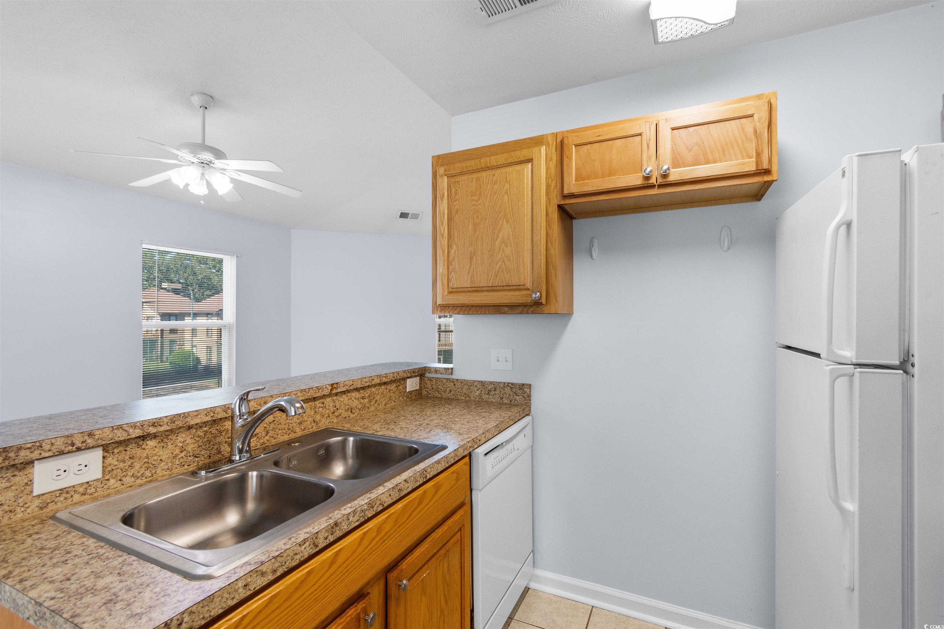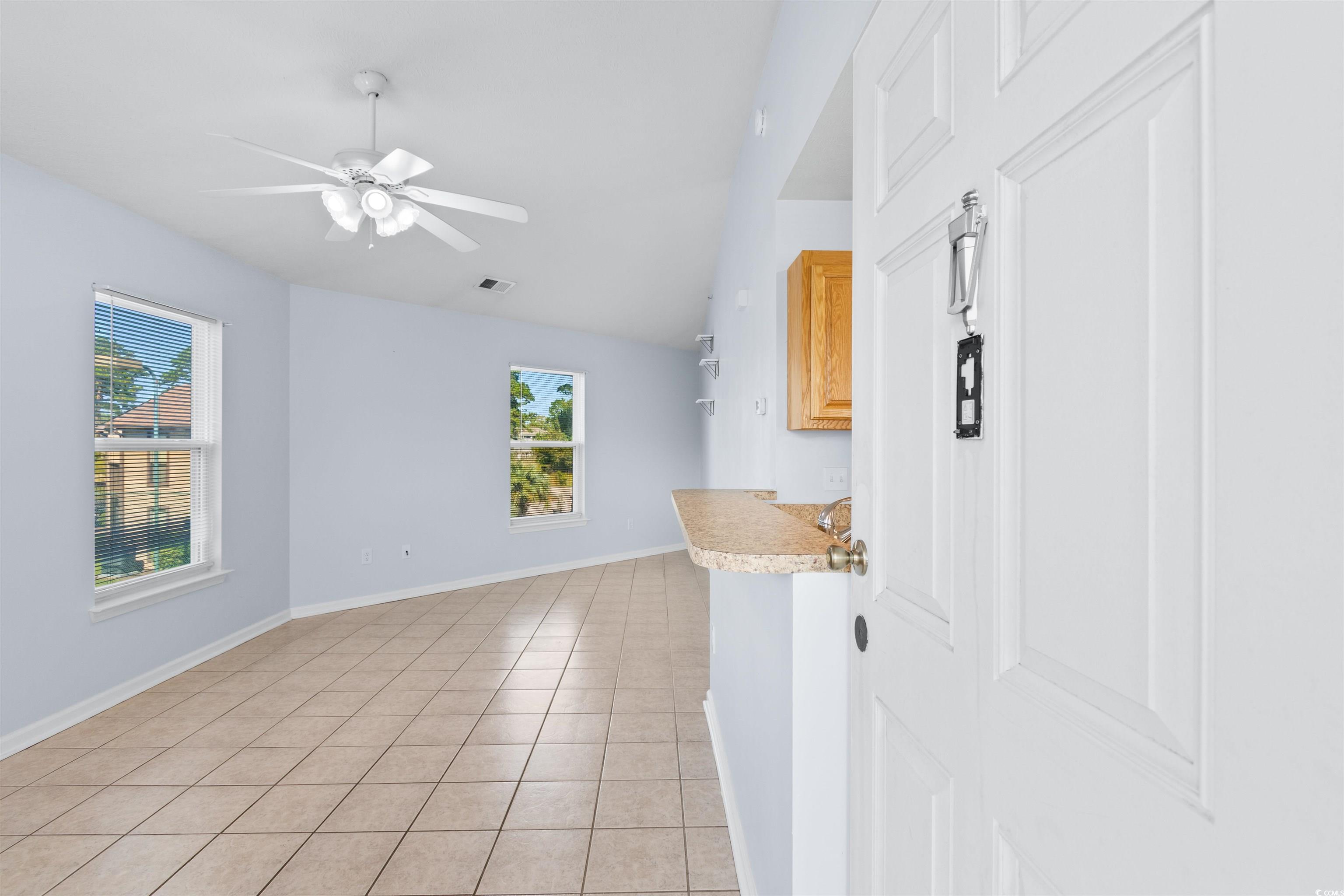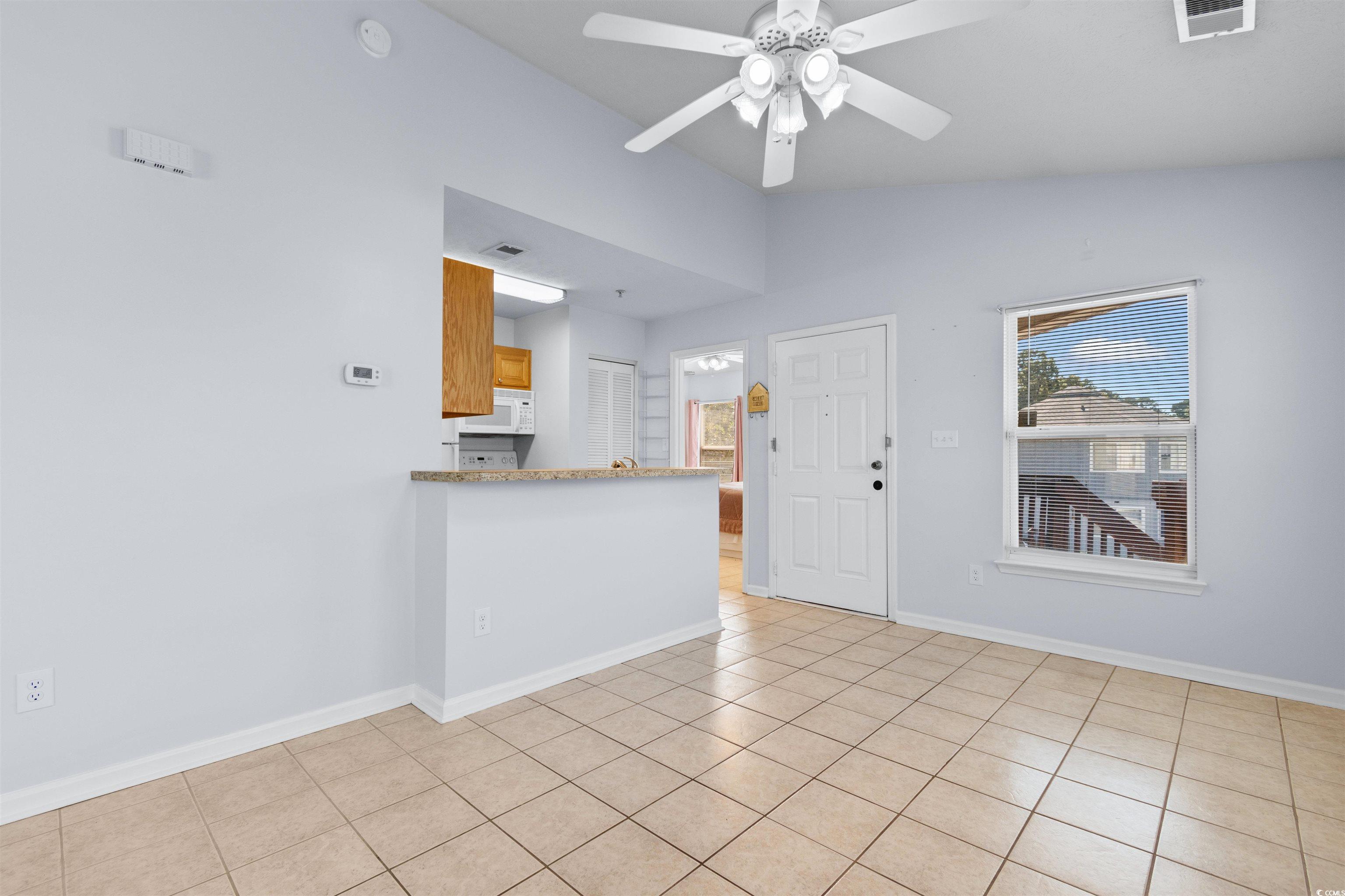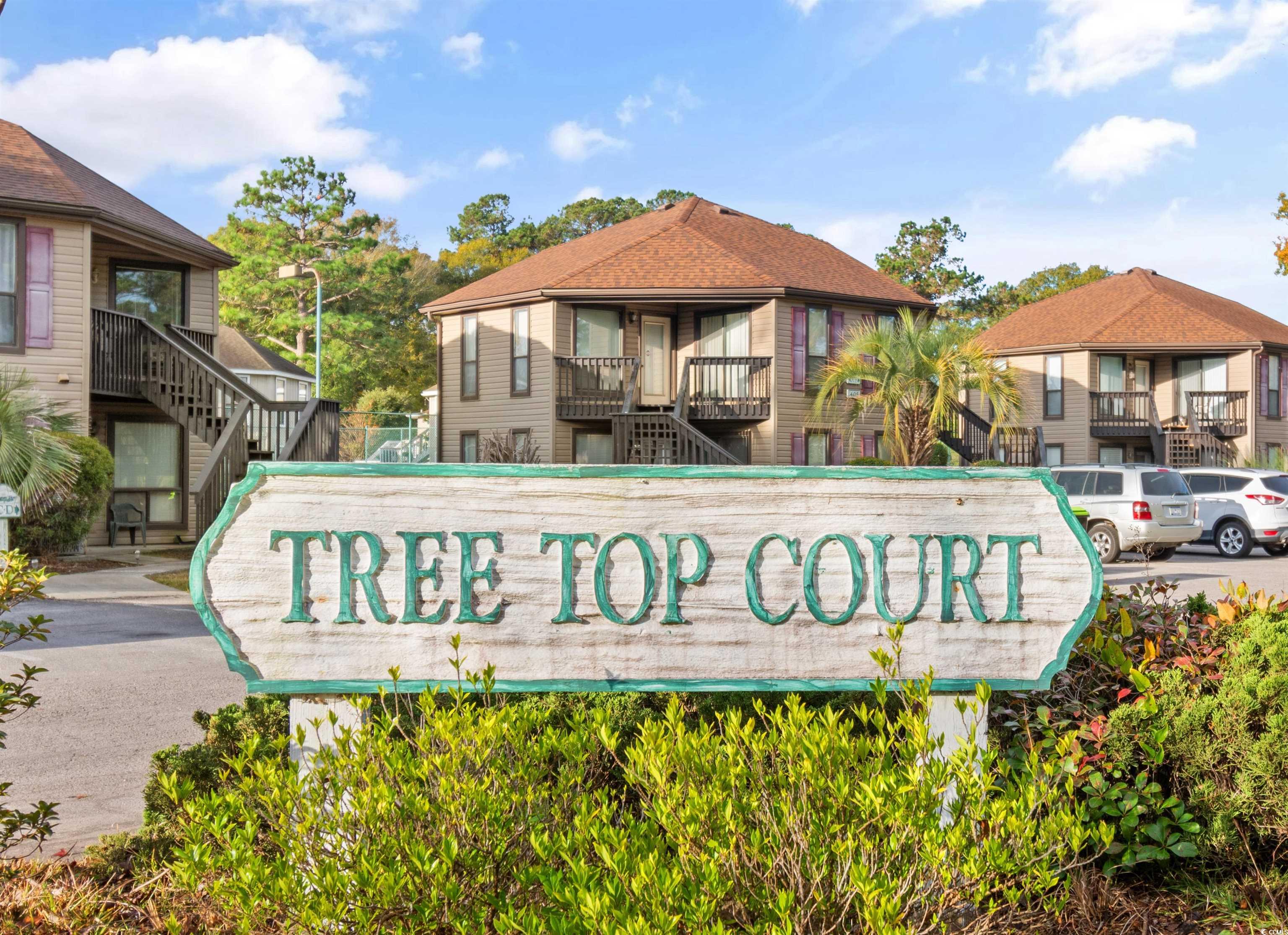Nestled in the sought-after Island Green Tree Top community, this beautifully maintained 1-bedroom, 1-bathroom condo is the perfect beach retreat. Step into a bright, inviting living and dining space highlighted by vaulted ceilings and abundant natural light. The full kitchen, complete with a breakfast bar, is perfect for casual dining and entertainment. The spacious bedroom features an adjoining bathroom for added convenience. Additional highlights include fresh paint, modern light fixtures, ceiling fans, updated door hardware, and an in-unit washer and dryer. Enjoy peaceful mornings or evenings on the cozy front porch, ideal for outdoor relaxation. This property is truly move-in ready and located just minutes from major roads, shopping, dining, golf courses, and, best of all, the beach! Dont miss out - schedule your visit today and discover your new coastal haven. All information is deemed reliable but not guaranteed. Buyers are encouraged to verify all details.