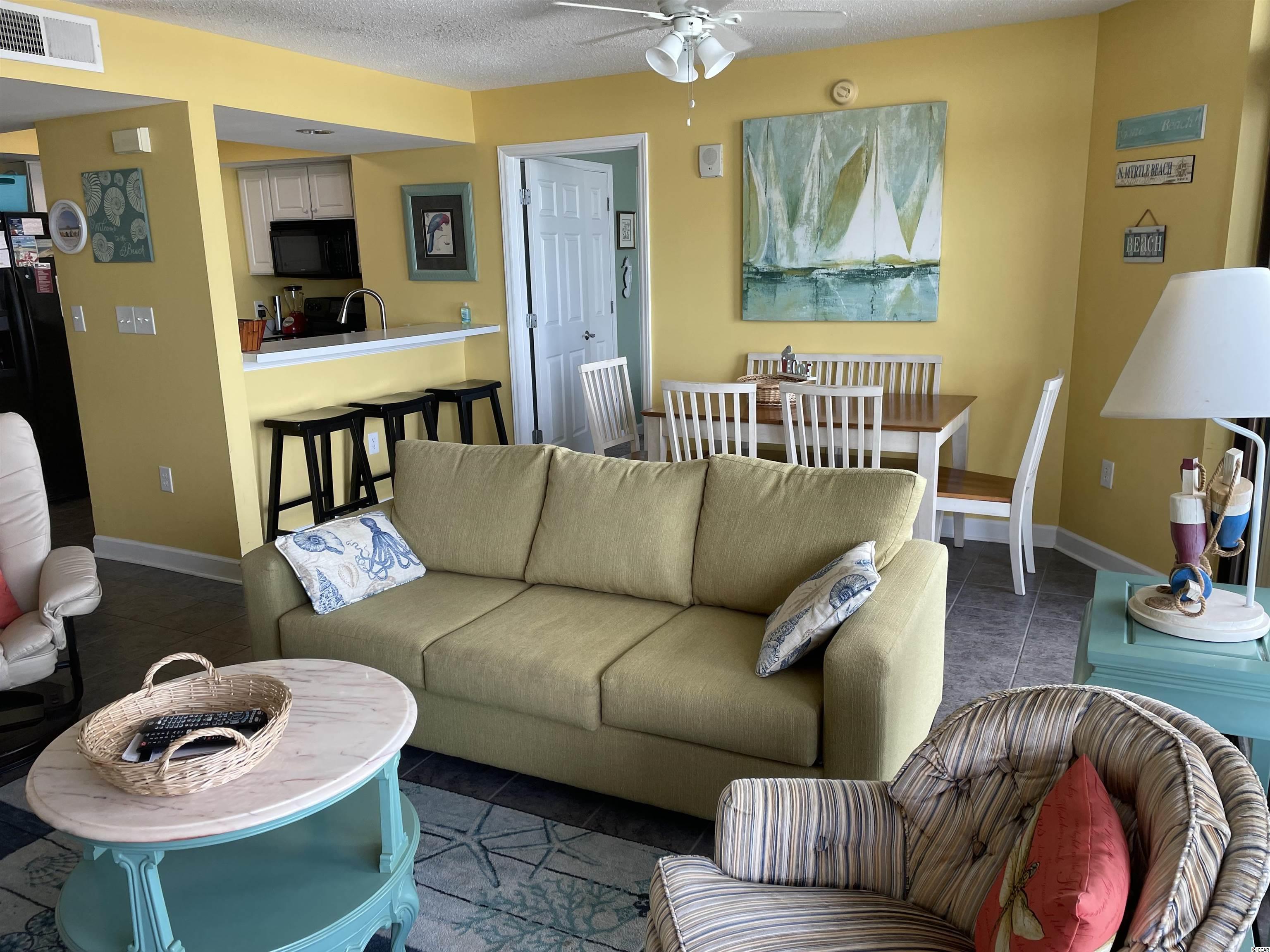 Spectacular views from the balcony of this 2 bedroom 2 bath 7th floor condo. You can see the Ocean all the way to Waities Island and a great view of the marsh from the balcony and even the second bedroom.