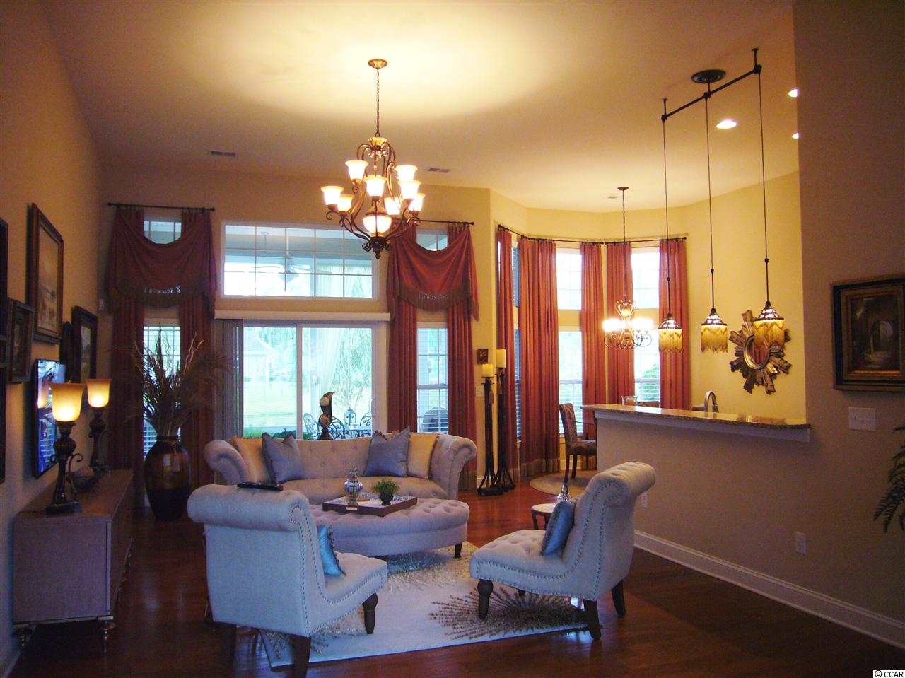 Beautiful 3 bedroom 2 bath single family home located in one of the most desirable areas of Myrtle Beach. This well maintained and immaculate home is located in the Saint David's Township gated section of Windsor Plantation off Hwy 544 (Dick Pond Road) and Big Block Road. Granite counter tops and back splash. Whirlpool stainless appliances. Elegant chandeliers, light fixtures and/or ceiling fans in all rooms. Gorgeous Hardwood Floors throughout main living areas, upgraded carpeting in all bedrooms. Tile floors in all baths. Master Bath has a large Garden tub and separate tiled shower. The interior has well appointed window treatments in all rooms. Oversized breezy screened porch to view nature in and around the lake at rear of property. Sreened porch has outdoor ceiling fan/light fixture. Separate patio for relaxing in the sun or outdoor grilling. Large storage area above 2-Car Garage. Property has been professionally landscaped and accent lighting has been installed through-out the property. Beautifully designed & landscaped community pool with hot tub and kiddy pool with large mushroom fountain waterfall to provide shade. Clubhouse scheduled for completion by the fall of 2014. Development is conveniently located near restaurants and shopping. Short distance to the ocean, approximately 3 miles.