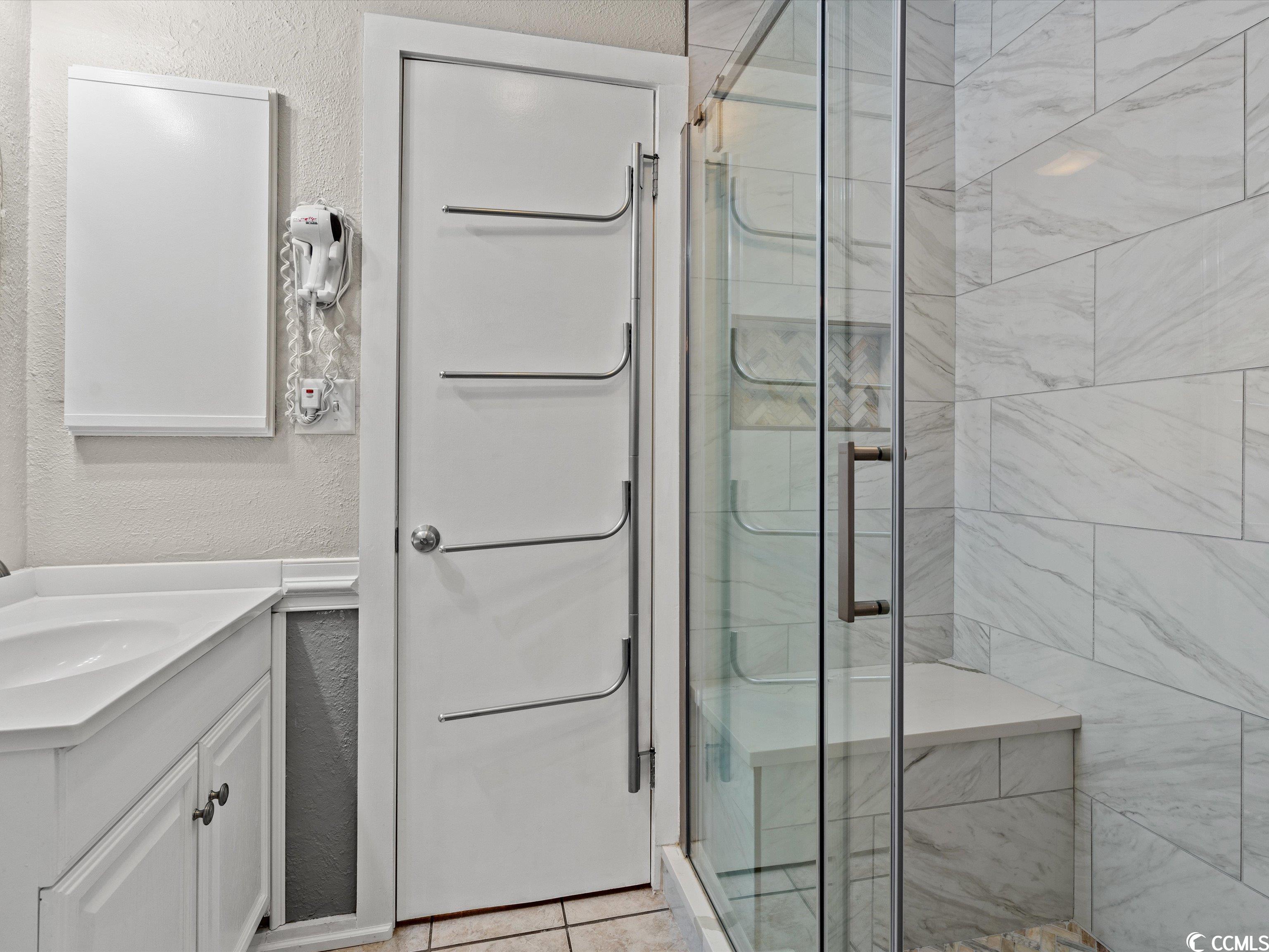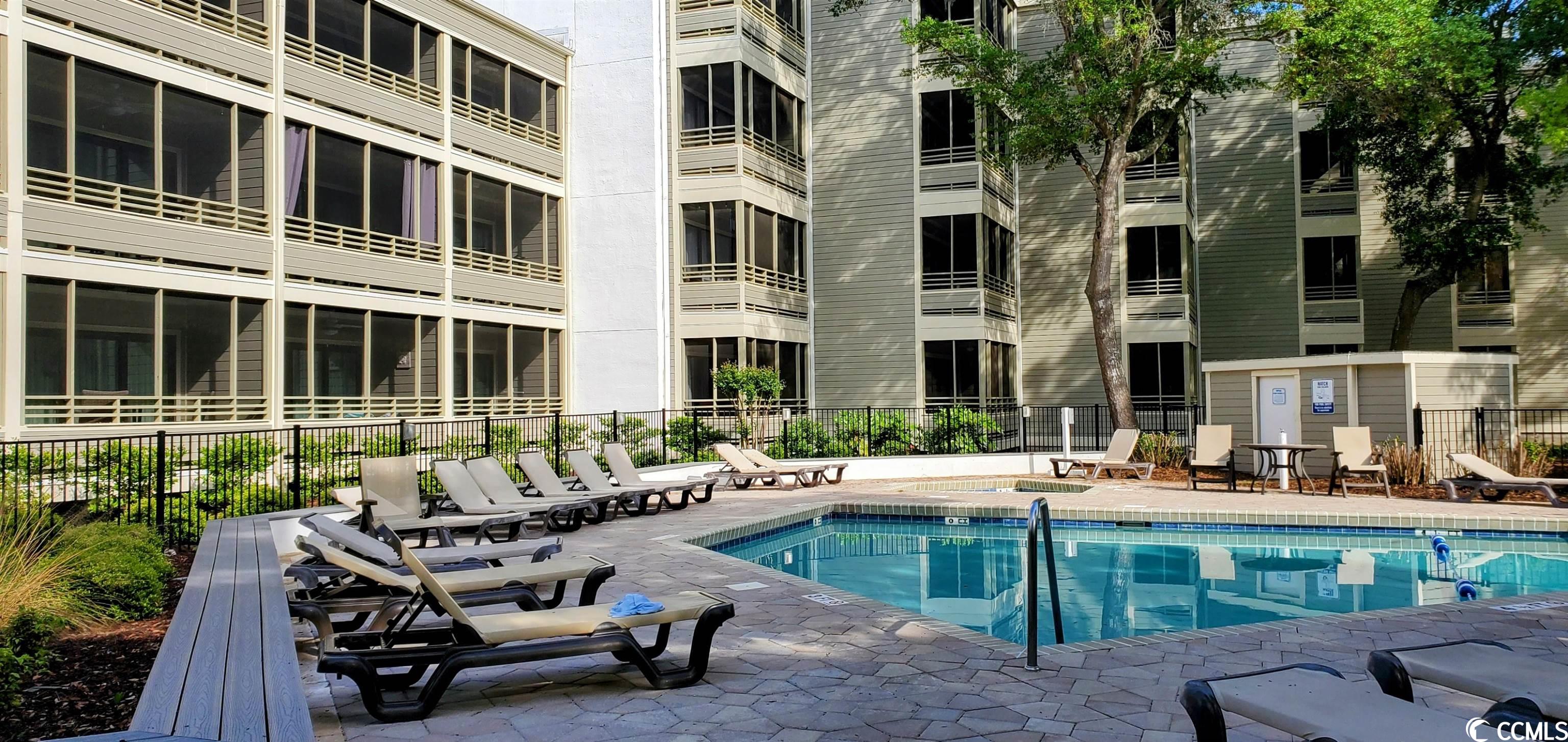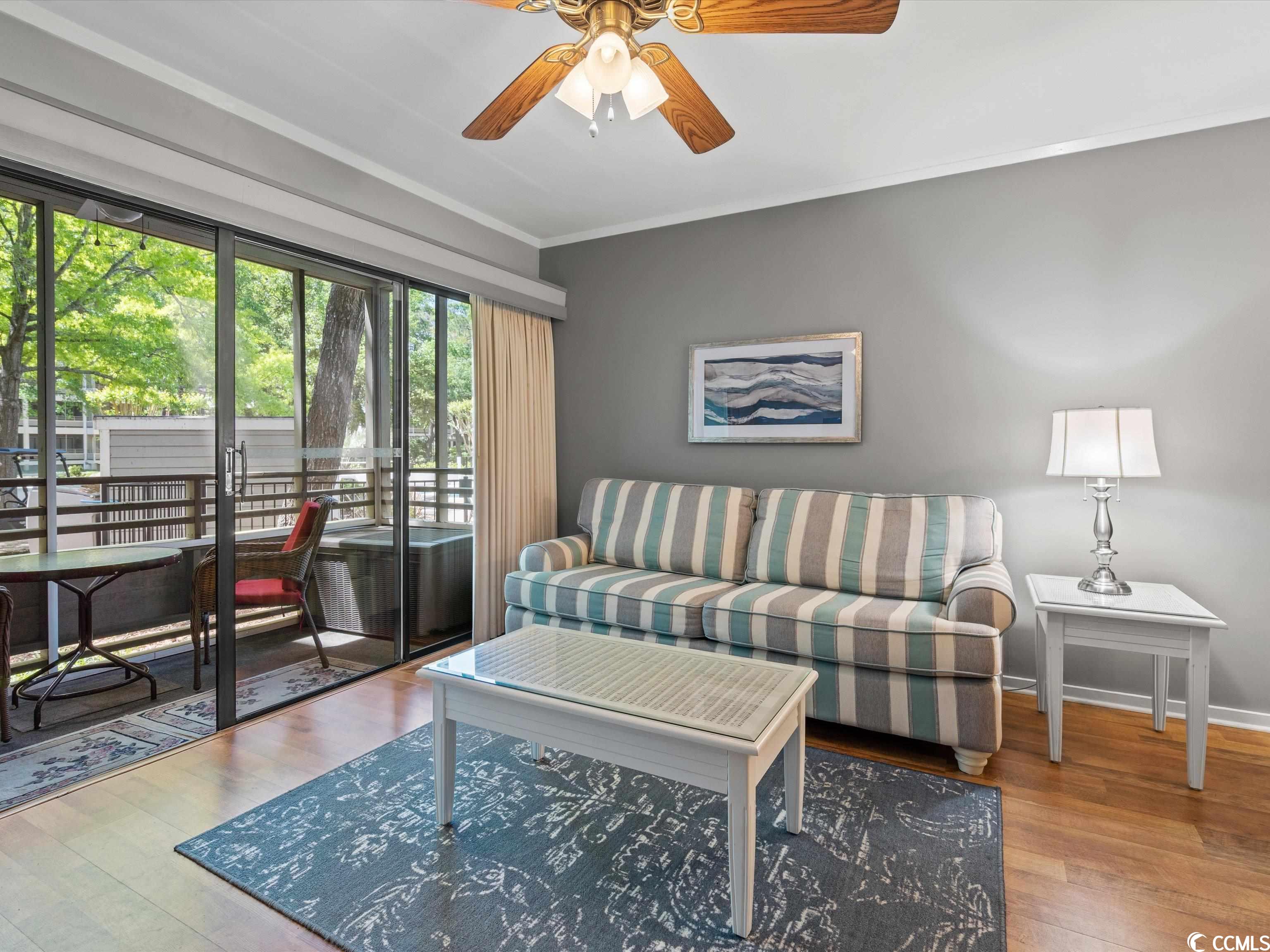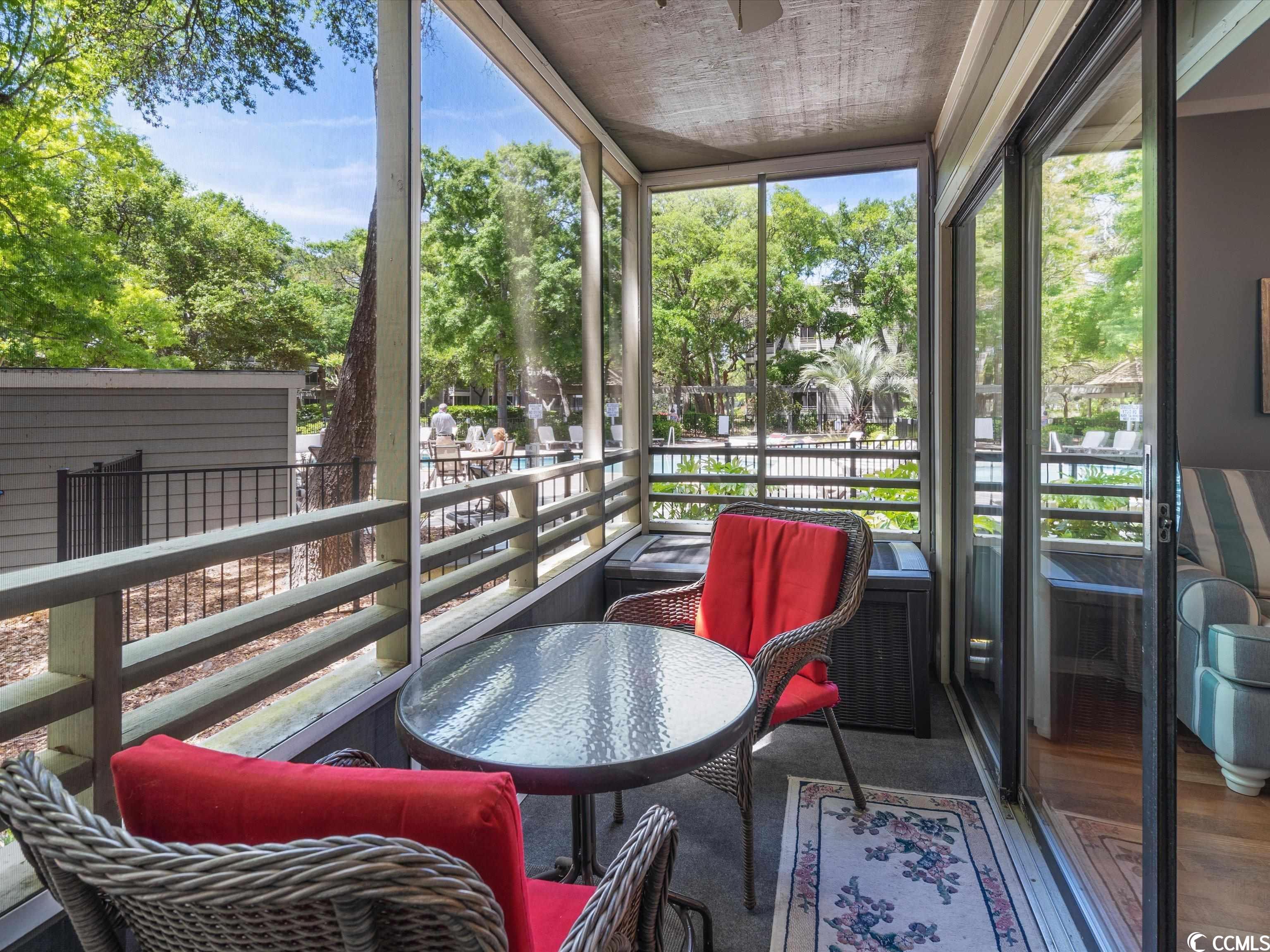 This lovely first floor condo has updated kitchen and baths and offers: beautiful tiled walk-in shower, stainless appliances and hook-ups for a stacked washer/dryer. It features laminated floors in the living areas and bedroom and coastal furniture throughout. Great location; close to the beach, indoor pool and restaurant and there a good pool view from the porch. Well cared for, the current owners' primary home, there are no current rental obligations and is available for personal use or rental immediately after closing. Situated on 57-acres of park-like ground with stunning live oaks. Ocean Creek features 24 hour gated security, elevator access in each Lodge building, a tennis center, an onsite restaurant, putting green, and multiple outdoor pools and an indoor pool. The resort boasts a wonderful oceanfront Beach Club with a snack bar, sand volleyball court, playground, outdoor pool, storage lockers, and restrooms. Easy to view!