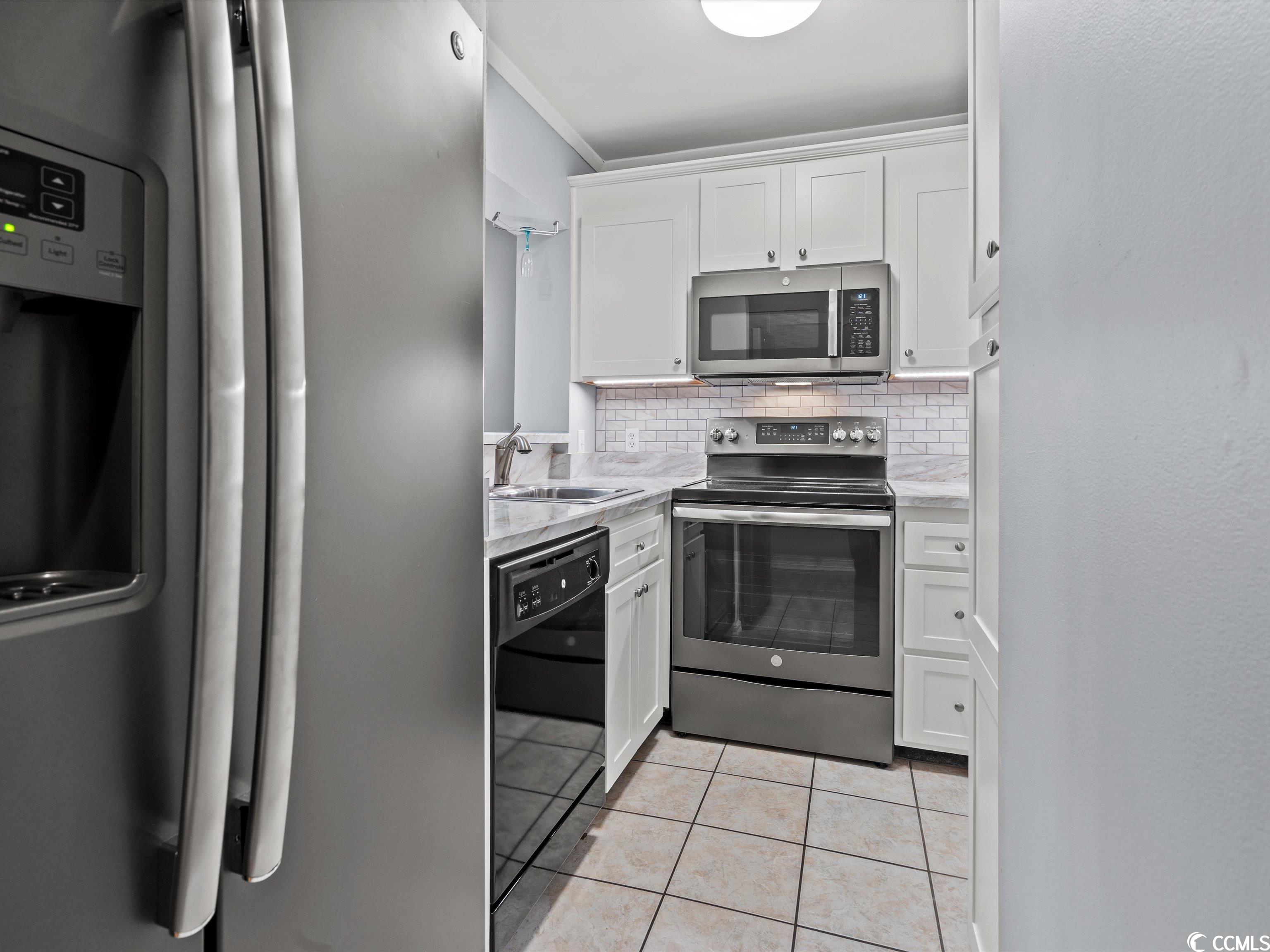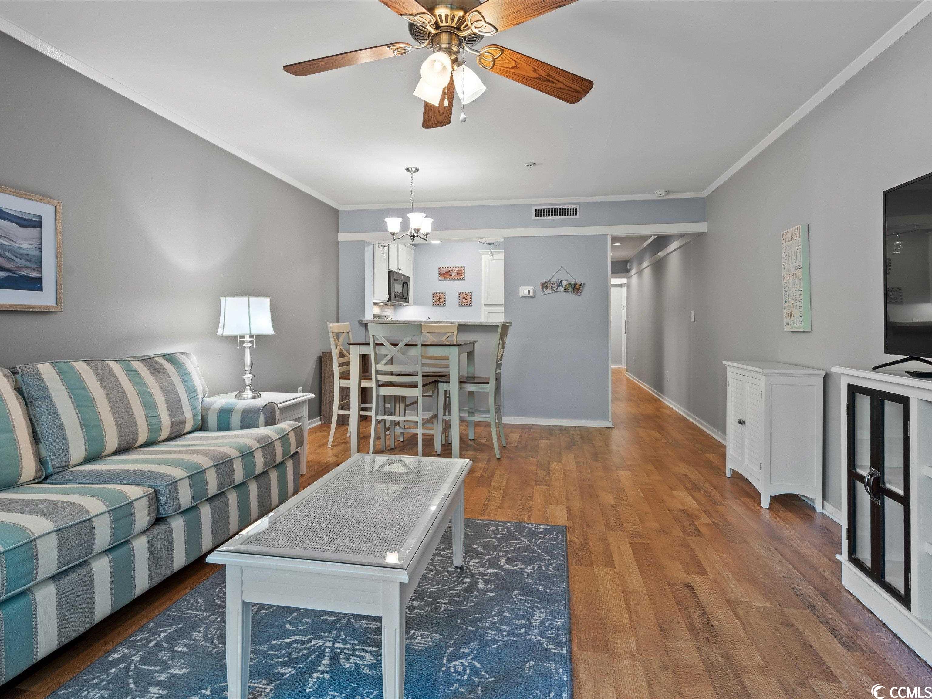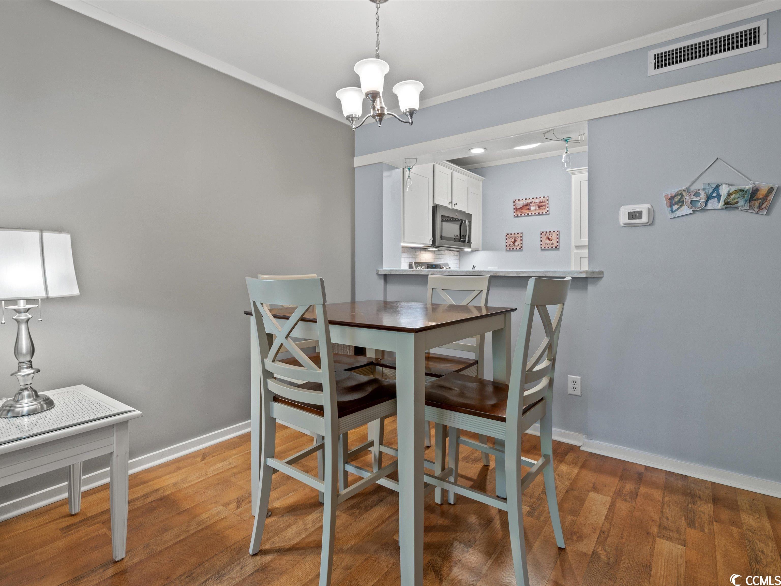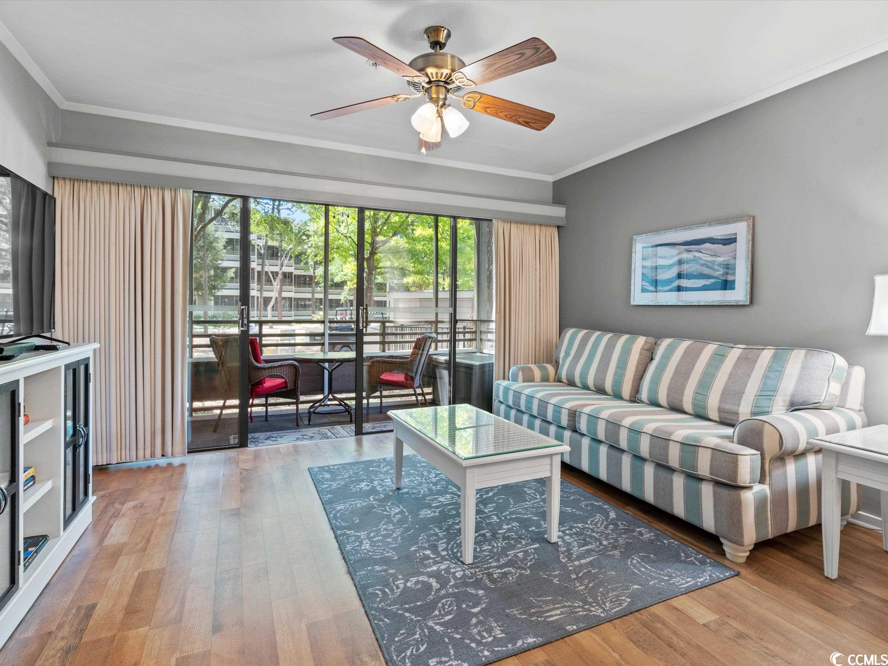 This lovely first floor condo has updated kitchen and baths and offers: beautiful tiled walk-in shower, stainless appliances and hook-ups for a stacked washer/dryer. It features laminated floors in the living areas and bedroom and coastal furniture throughout. Great location; close to the beach, indoor pool and restaurant and there a good pool view from the porch. Well cared for, the current owners' primary home, there are no current rental obligations and is available for personal use or rental immediately after closing. Situated on 57-acres of park-like ground with stunning live oaks. Ocean Creek features 24 hour gated security, elevator access in each Lodge building, a tennis center, an onsite restaurant, putting green, and multiple outdoor pools and an indoor pool. The resort boasts a wonderful oceanfront Beach Club with a snack bar, sand volleyball court, playground, outdoor pool, storage lockers, and restrooms. Easy to view!