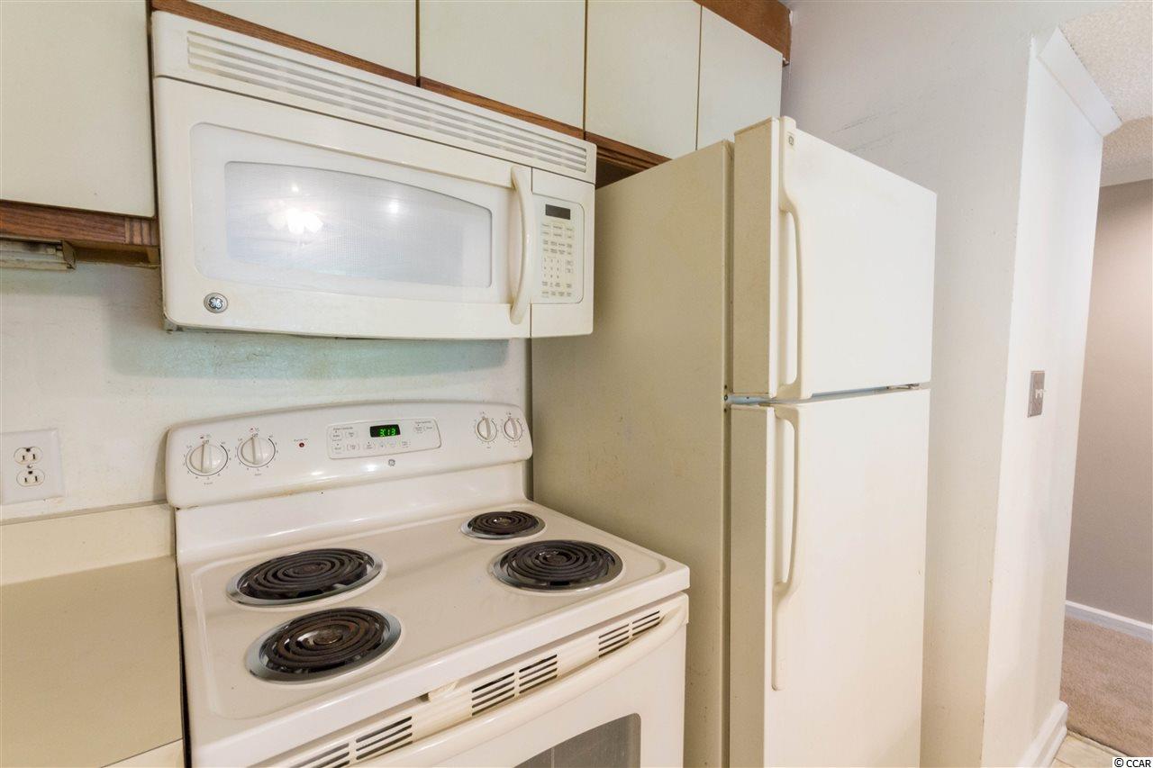 This is a first floor end unit condo with a bump out for extra room and light. It's ready for a washer/ dryer and for your decor. New bathroom vanities and microwave are being installed. Not a rental so you can begin enjoying it right away. Ocean Creek sits on 57-acres of lush greenery and park-like grounds. It features 24-hour gated security, elevator access in each Lodge building, a tennis center, a putting green, onsite restaurant, multiple outdoor pools and an indoor pool with jacuzzi. The resort boasts a wonderful oceanfront beach club with a snack bar and grill, sand volleyball court, outdoor pool, playground, storage lockers and restrooms.