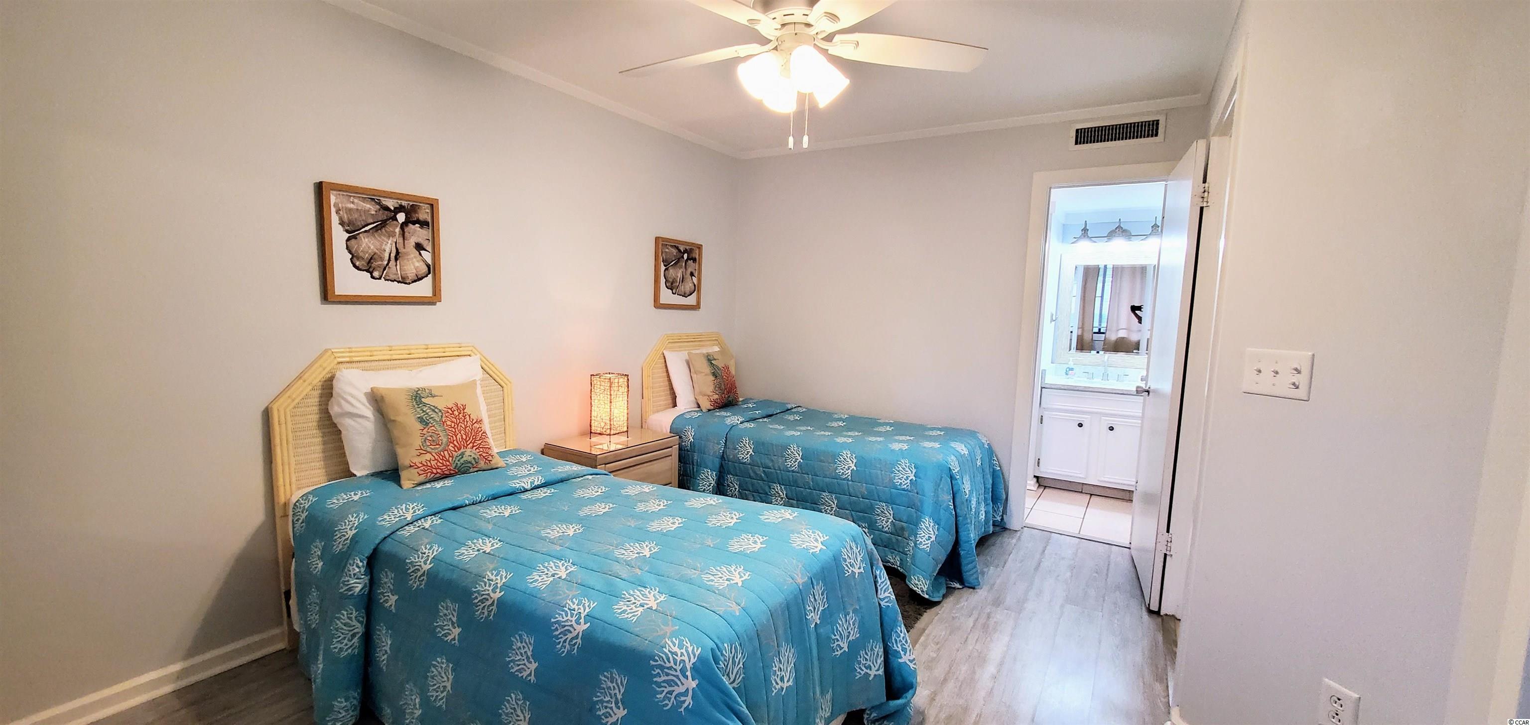 Back on the market due to no fault on seller's part. Convenient first floor unit with a washer/dryer. Beautifully appointed. Kitchen boasts quartz counters and SS appliances. Vinyl plank floors in living room and bedrooms. Ceiling fans in LR and bedrooms. Plantation shutters in the LR. Nice pool view. Ocean Creek has 57-acres of lush greenery and park-like grounds. It features 24-hour gated security, elevator access in each Lodge building, a tennis center, a putting green, onsite restaurant, multiple outdoor pools and an indoor pool with hot tub. The resort boasts a wonderful oceanfront beach club with a snack bar and grill, sand volleyball court, outdoor pool, playground, storage lockers and restrooms.