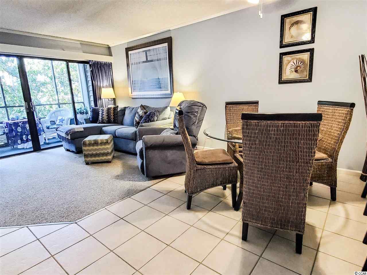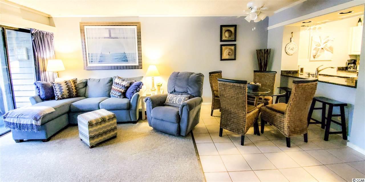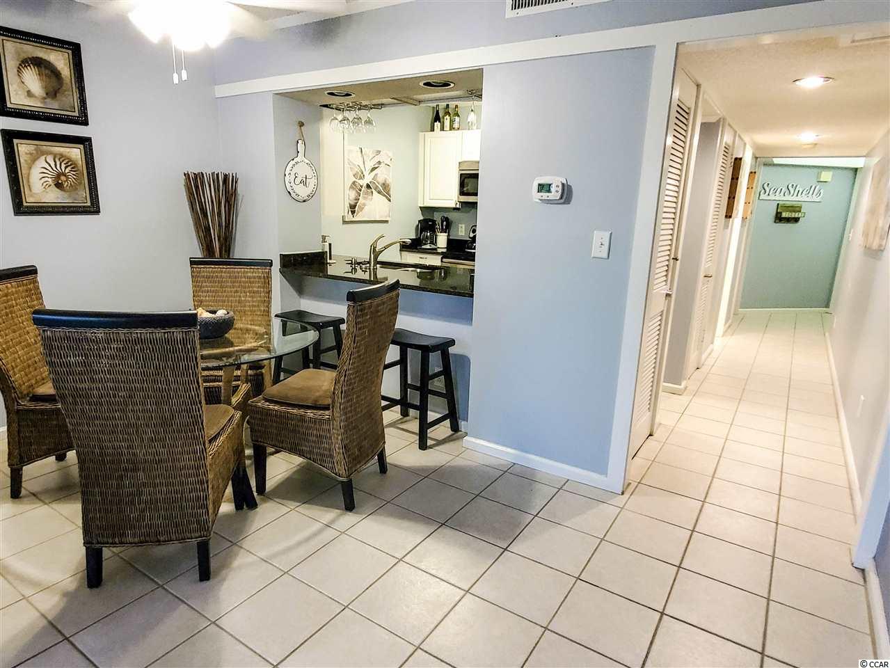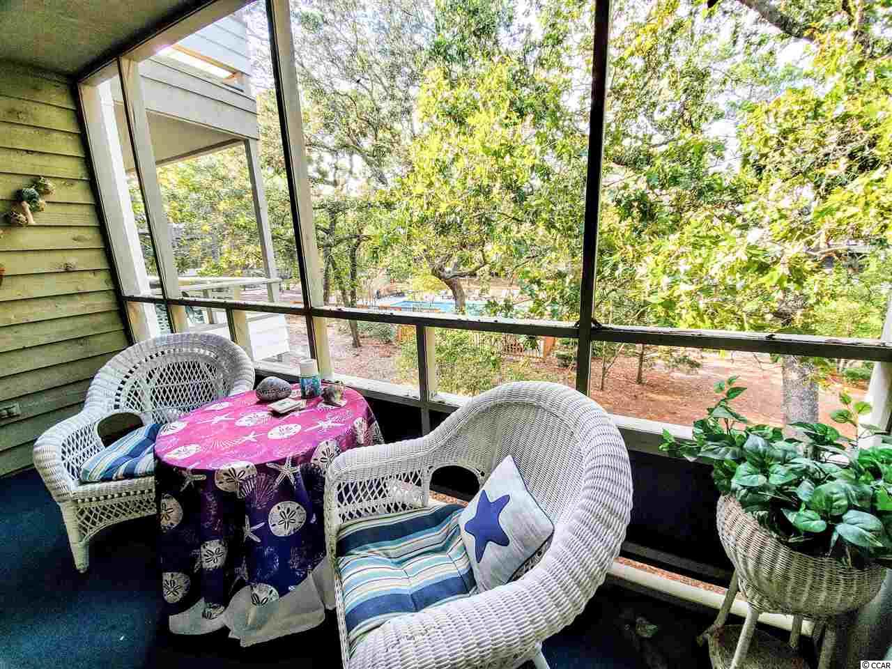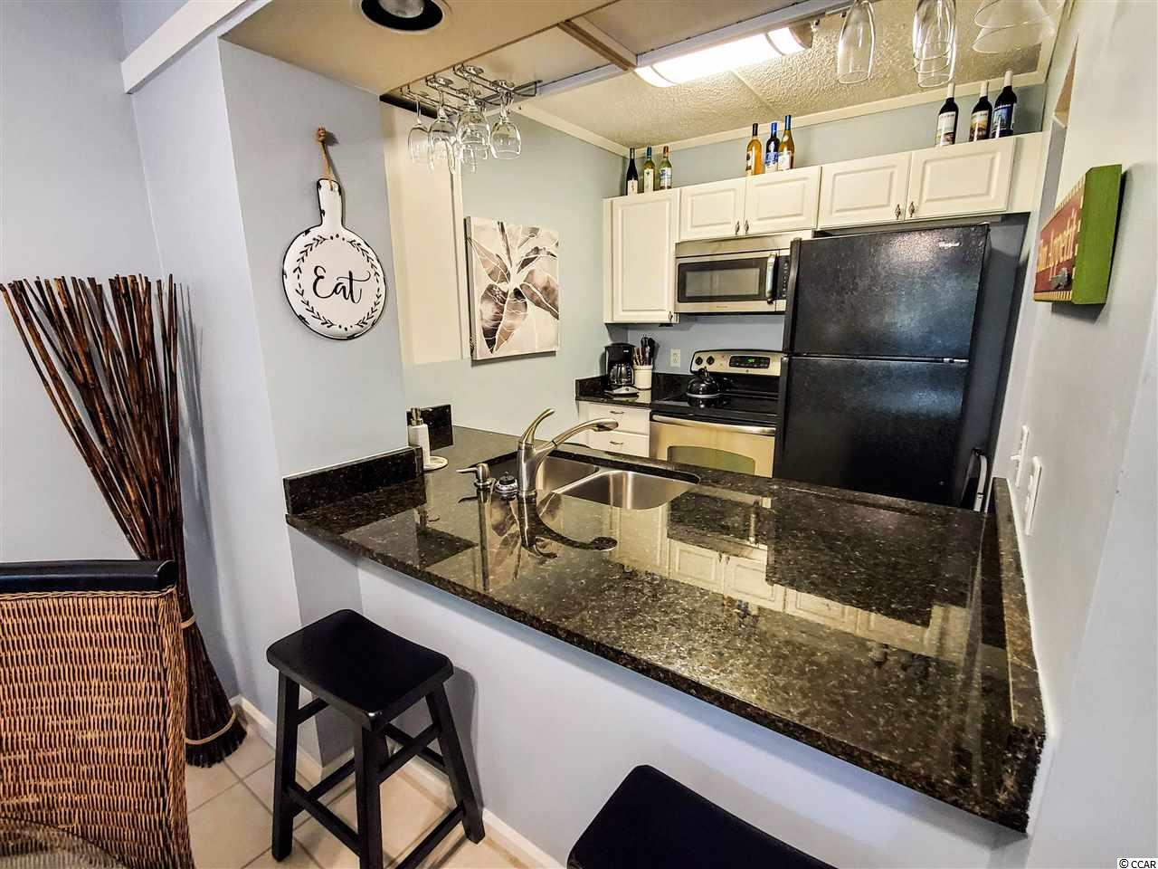 This beautifully updated condo has a lovely kitchen with white raised panel cabinets, granite counters and was redesigned to provide additional storage. Two outdoor living areas include a screened porch off the living area and a balcony off the master bedroom. Both have delightful views of the wooded courtyard and pool. Unit has new HVAC, new carpeting and new bed. Close to tennis center, indoor pool and all the great amenities that Ocean Creek offers. Stroll along the tree lined path to the ocean front beach club or in season ride the tram. Ocean Creek is 57-acre gated community on the ocean across from Barefoot Landing. Walk to wonderful restaurants, shops and entertainment. All of the Lodges are being re-sided and the entire project is scheduled to be completed by the end of May. Construction on Lodge 3 should start in January. All figs. & sq. ft. approximate.