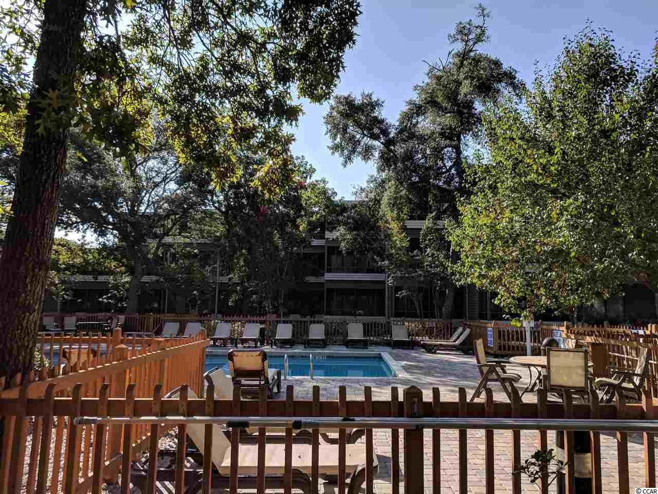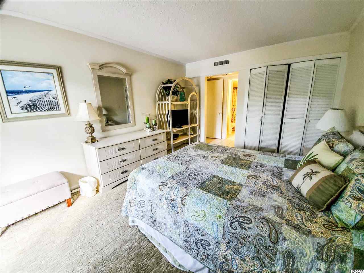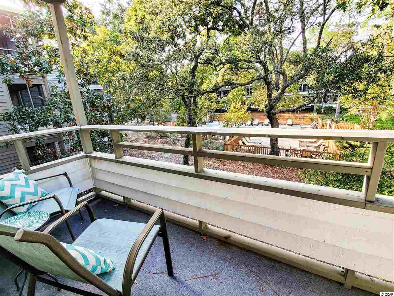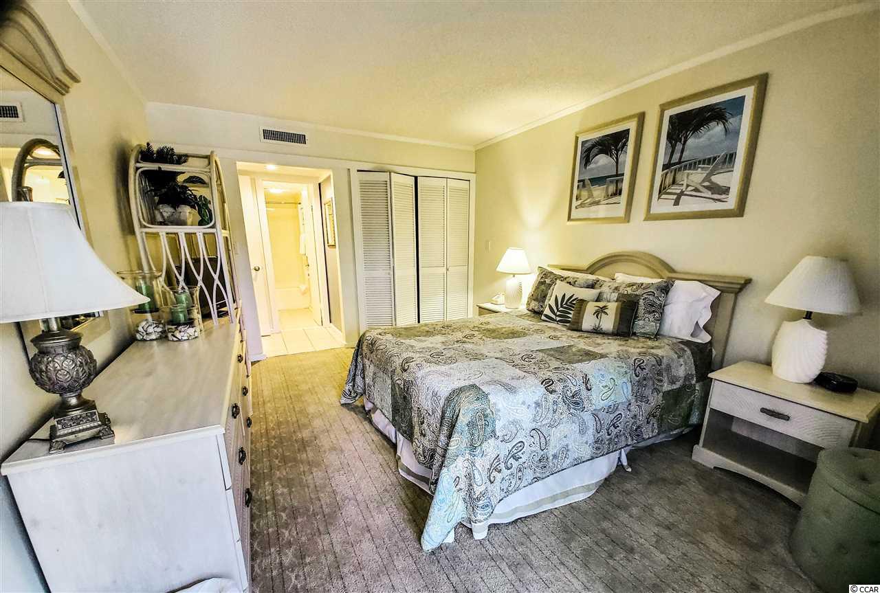 This beautifully updated condo has a lovely kitchen with white raised panel cabinets, granite counters and was redesigned to provide additional storage. Two outdoor living areas include a screened porch off the living area and a balcony off the master bedroom. Both have delightful views of the wooded courtyard and pool. Unit has new HVAC, new carpeting and new bed. Close to tennis center, indoor pool and all the great amenities that Ocean Creek offers. Stroll along the tree lined path to the ocean front beach club or in season ride the tram. Ocean Creek is 57-acre gated community on the ocean across from Barefoot Landing. Walk to wonderful restaurants, shops and entertainment. All of the Lodges are being re-sided and the entire project is scheduled to be completed by the end of May. Construction on Lodge 3 should start in January. All figs. & sq. ft. approximate.