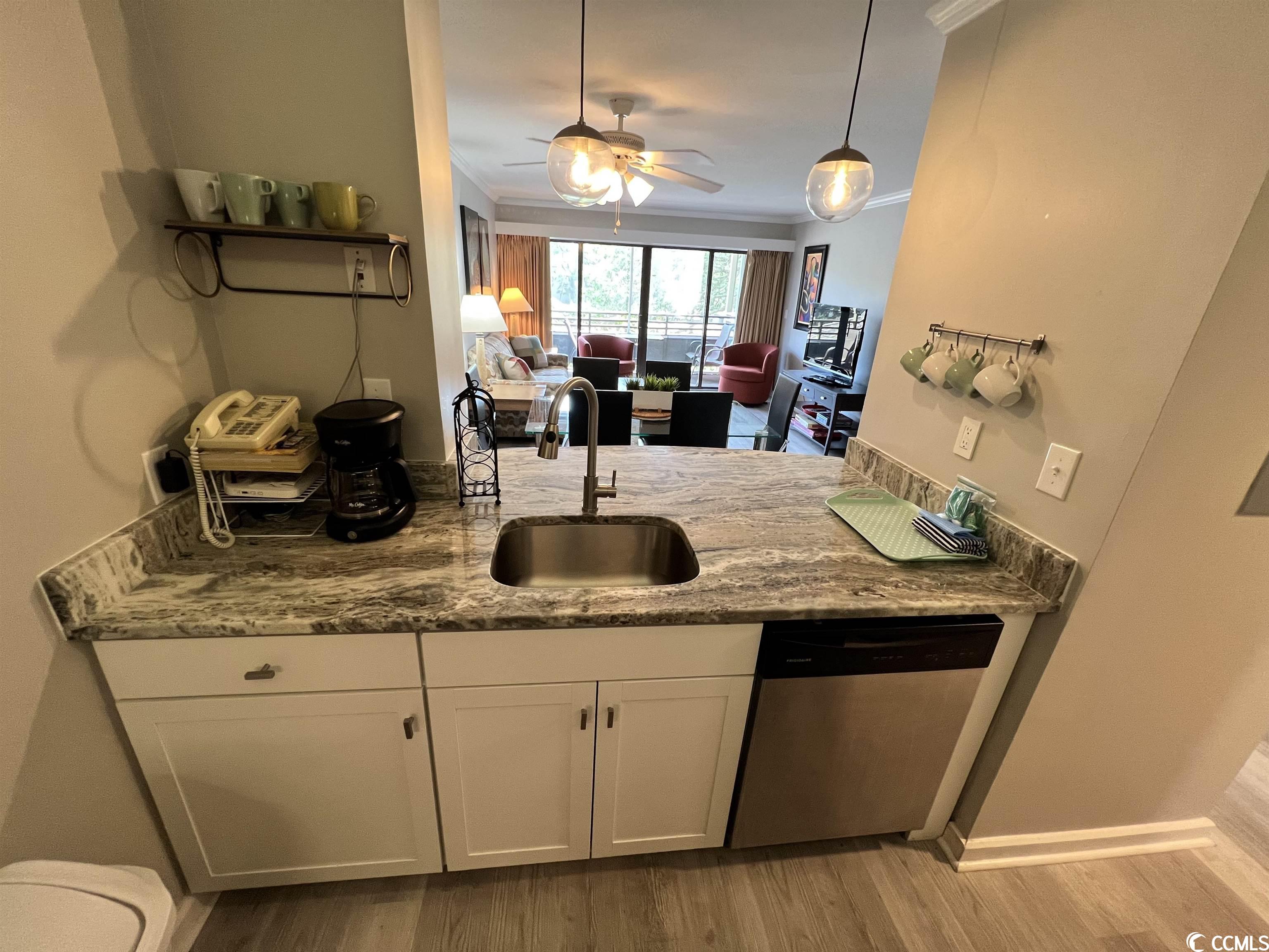 Welcome to Ocean Creek, a 57 acre gated community, located in the north end of Myrtle Beach. This fully renovated 2 bed, 2 bath property is ideally situated as an end unit in Lodge 4. You'll find new LVP flooring throughout as well as an updated kitchen with granite countertops and stainless steel appliances. Behind the scenes, the property is equally impressive; you'll find a new HVAC, hot water heater, and mattresses throughout. This property is a short walk to the ocean, beach club, tennis center, and putting green. All contents and furnishing will convey.