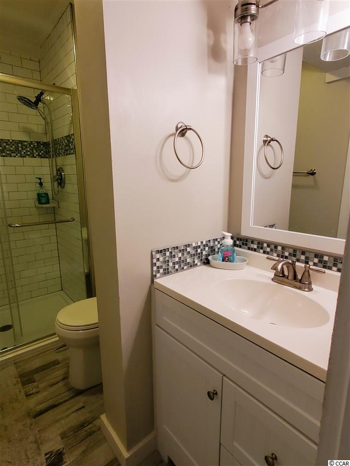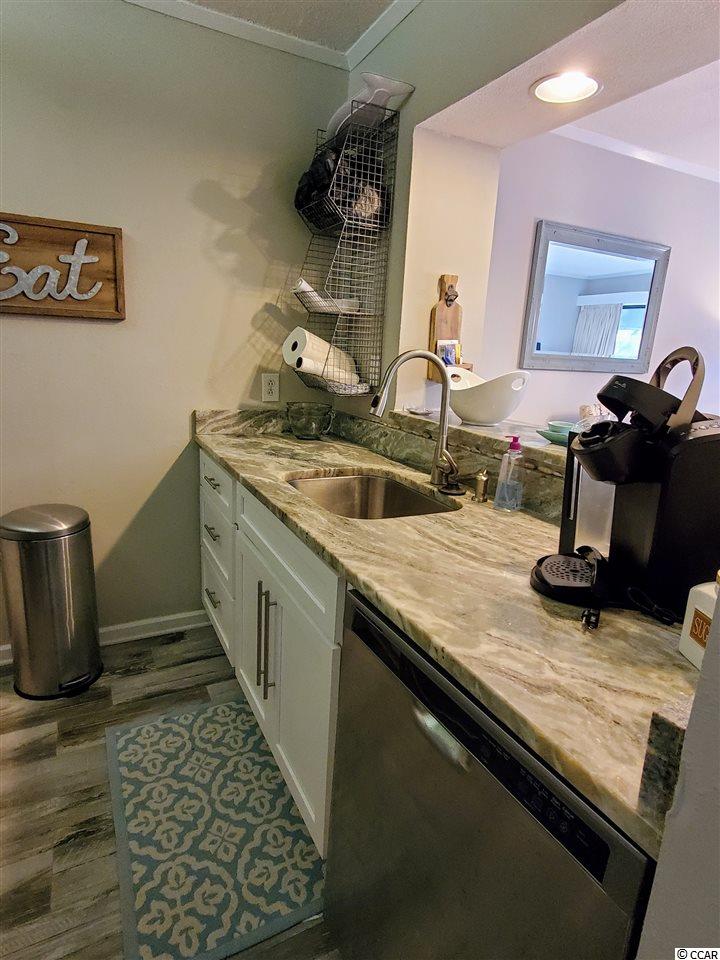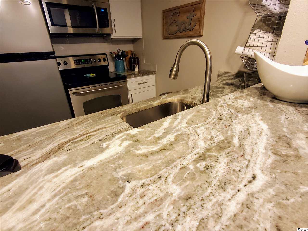 Completely renovated; kitchen with shaker cabinets, stainless appliances, granite counters, new bath vanities, walk-in tile showers, wood-like porcelain tile floors, throughout. Bright and sunny southern exposure with pool view and trees for privacy and summer shade. This condo has been used as a second home. Ocean Creek has 57-acres of park-like grounds. It features; 24-hour gated security, elevator in each Lodge building, a tennis center, pickleball court, putting green, multiple outdoor pools and an indoor pool with whirlpool. The resort boasts a wonderful oceanfront beach club with a snack bar and grill, open in season, volleyball court, outdoor pool, playground, storage lockers and restrooms.