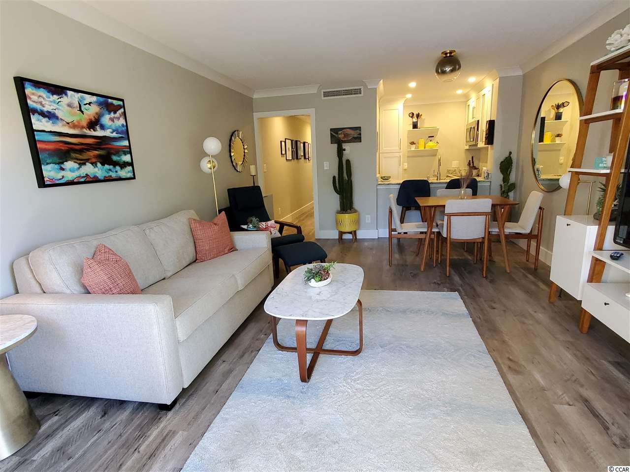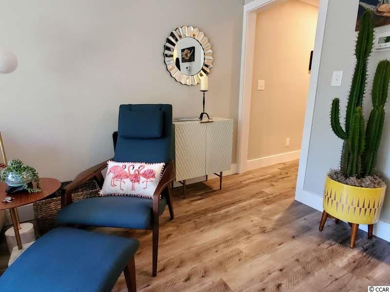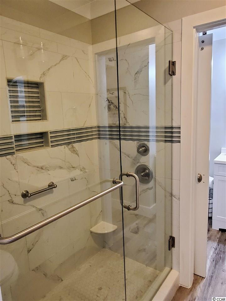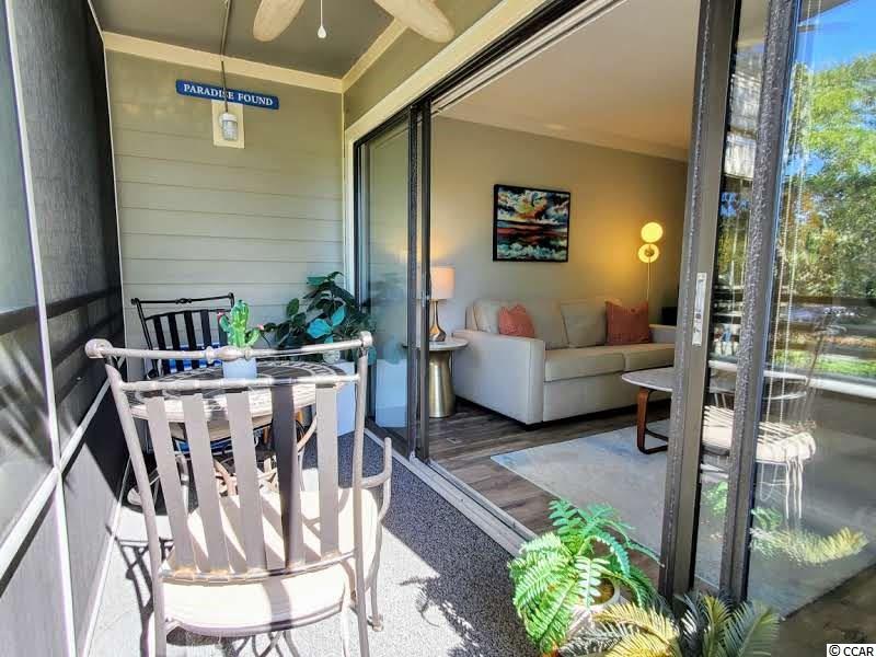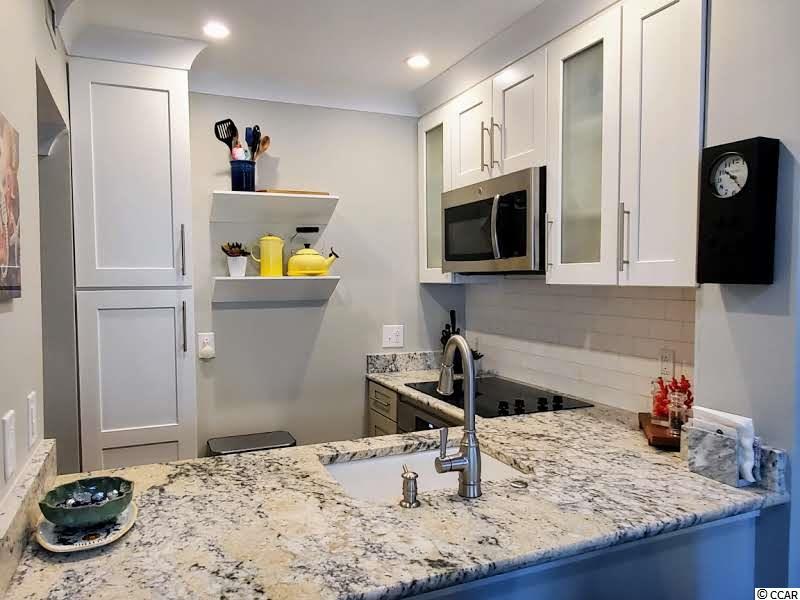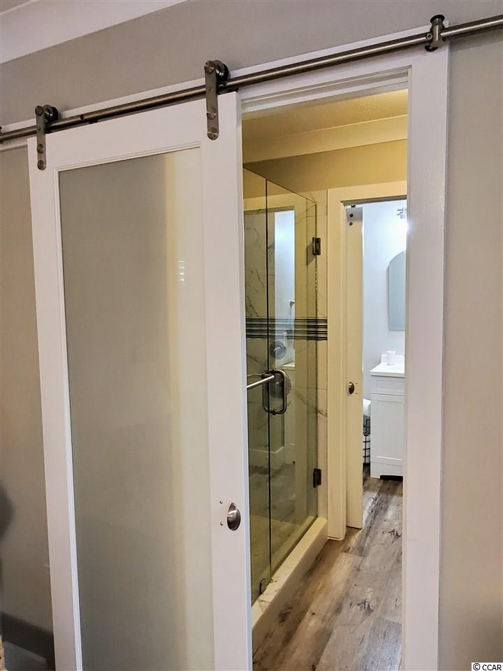 Showstopper renovations and furnished like a high end model. Kitchen and bathrooms feature stainless appliances, granite counters, luxury vinyl plank flooring, tiled shower and more. Bedroom features plantation shutters on the window and a frosted glass barn door to the ensuite bath. Bedroom and hallway have custom closets for lots of storage. Planation shutters on the foyer window. HVAC replaced in 10/15 and HWH in 2/13. Storage chest on porch remains. This sparkling clean condo is not on a rental program, so no reservations to honor. All in a 57-acre oceanfront resort just a 5-minute walk through the live oaks-lined path to the spectacular beach. Across from Barefoot Landing, Ocean Creek has beautiful trees & manicured grounds, elevators in each building, multiple pools, tennis center, putting green, & oceanfront beach club overlooking 30 miles of coastline; all within a gated community. Living in Ocean Creek is like living in a park, nestled on the ocean. Within walking distance to shopping, restaurants, theaters. Ocean Creek is just steps away from all the wonderful activities Myrtle Beach is popular for, yet offers a wonderful escape from the crowds & the hustle bustle. All figs & sq. ft. approximate. View of the walk to the beach from the condo- https://youtu.be/RbfPxYyQbQM