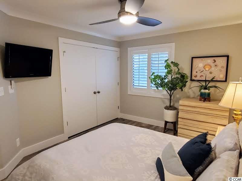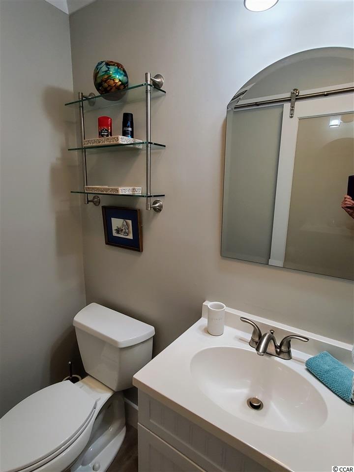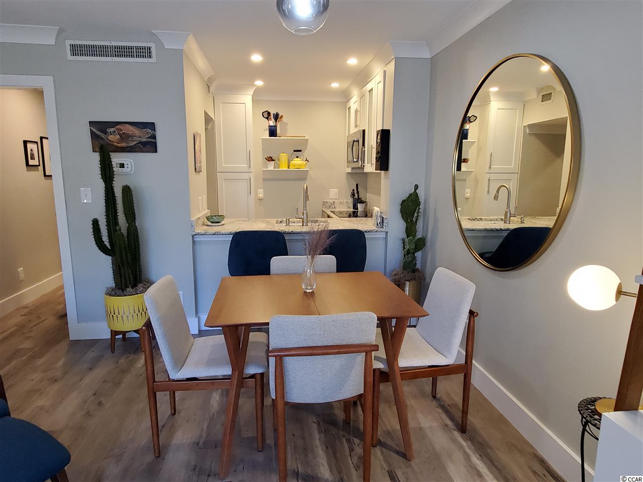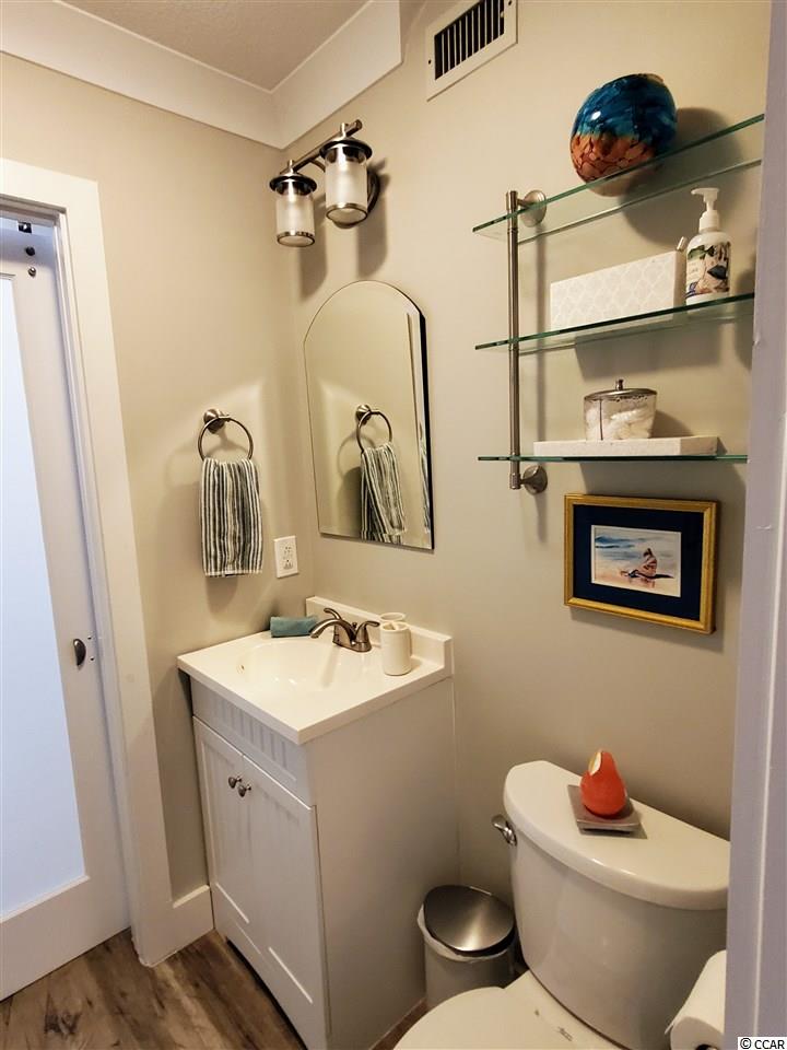 Showstopper renovations and furnished like a high end model. Kitchen and bathrooms feature stainless appliances, granite counters, luxury vinyl plank flooring, tiled shower and more. Bedroom features plantation shutters on the window and a frosted glass barn door to the ensuite bath. Bedroom and hallway have custom closets for lots of storage. Planation shutters on the foyer window. HVAC replaced in 10/15 and HWH in 2/13. Storage chest on porch remains. This sparkling clean condo is not on a rental program, so no reservations to honor. All in a 57-acre oceanfront resort just a 5-minute walk through the live oaks-lined path to the spectacular beach. Across from Barefoot Landing, Ocean Creek has beautiful trees & manicured grounds, elevators in each building, multiple pools, tennis center, putting green, & oceanfront beach club overlooking 30 miles of coastline; all within a gated community. Living in Ocean Creek is like living in a park, nestled on the ocean. Within walking distance to shopping, restaurants, theaters. Ocean Creek is just steps away from all the wonderful activities Myrtle Beach is popular for, yet offers a wonderful escape from the crowds & the hustle bustle. All figs & sq. ft. approximate. View of the walk to the beach from the condo- https://youtu.be/RbfPxYyQbQM