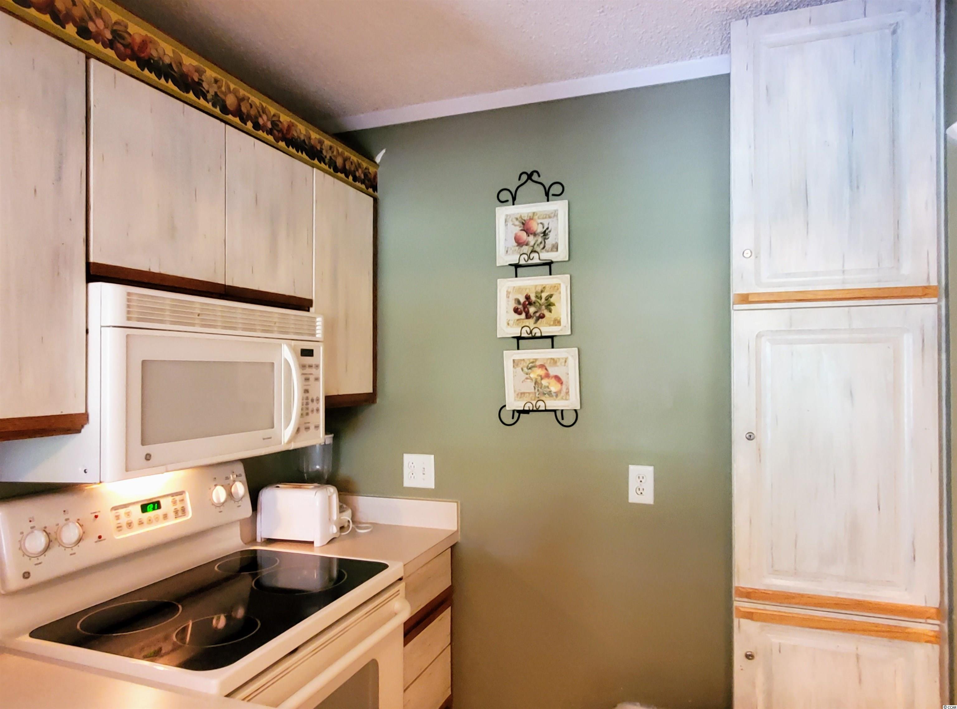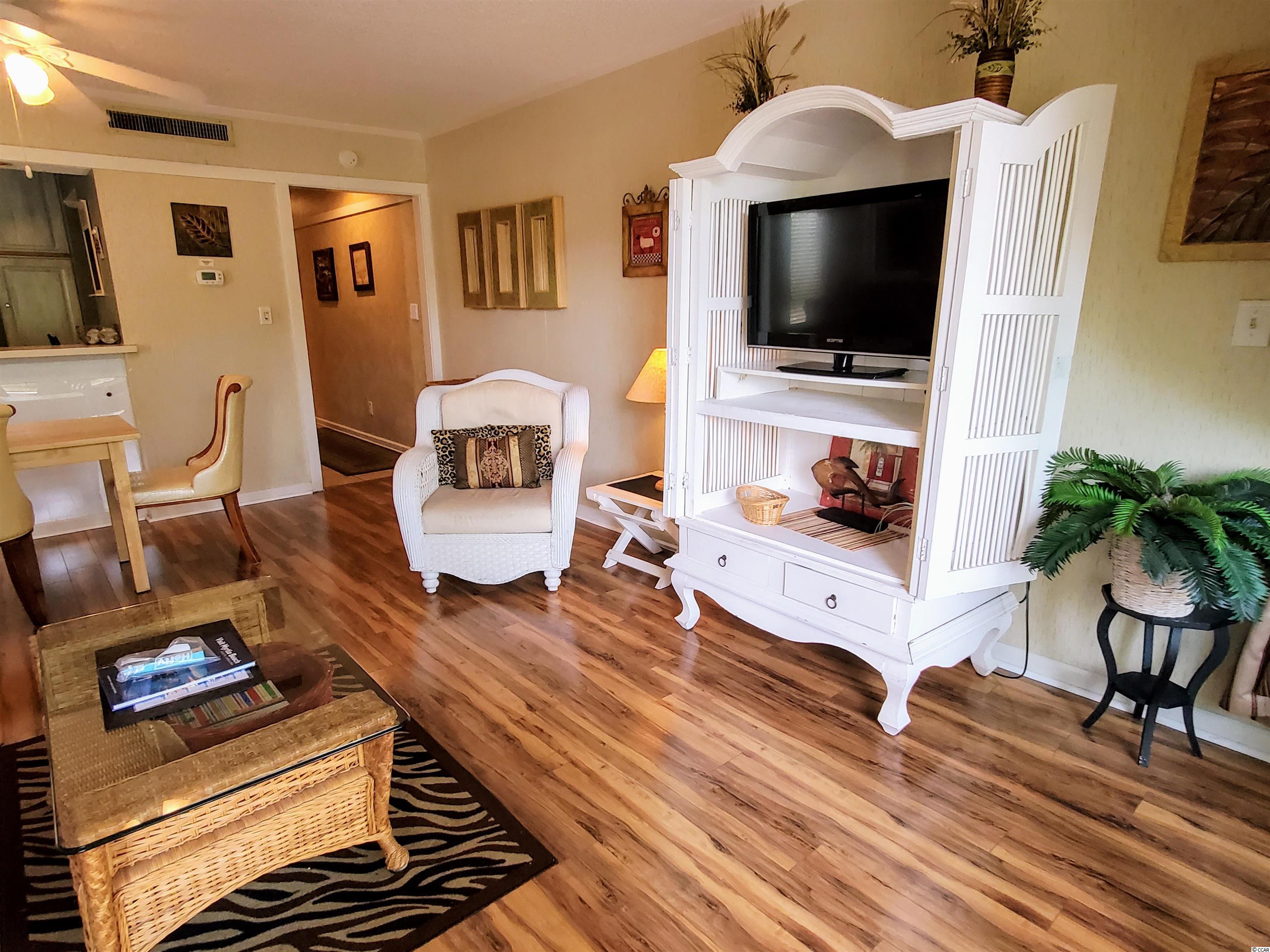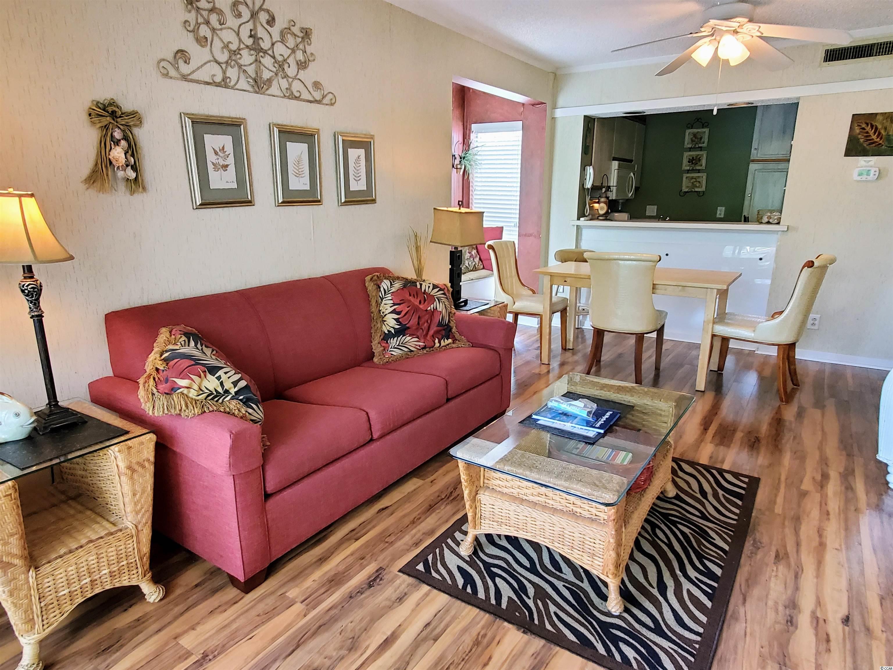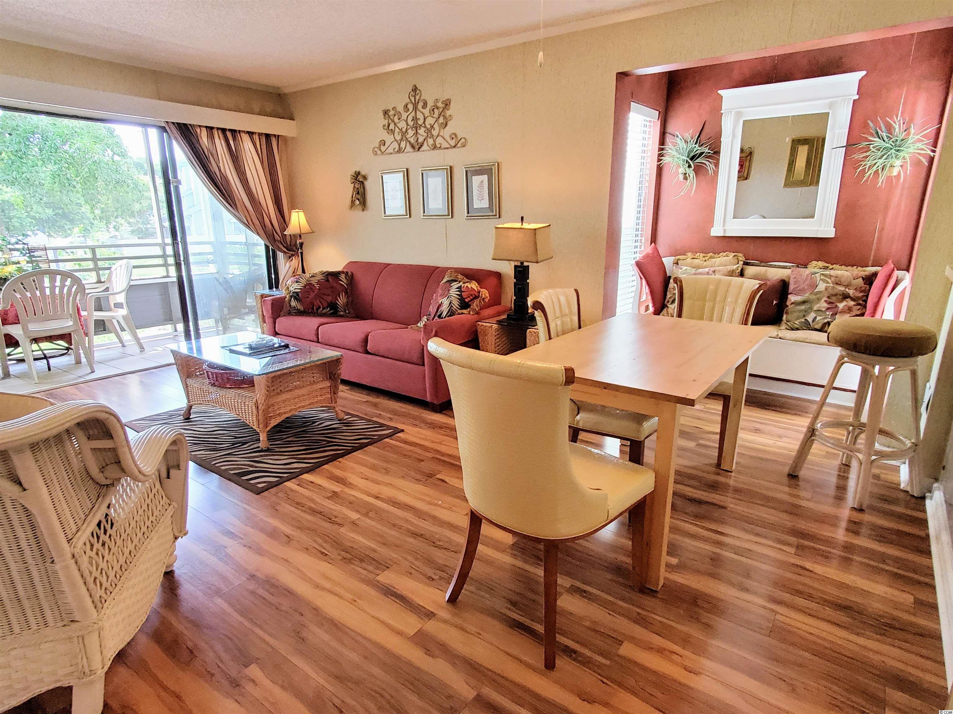 Corner unit with bay window and porch enclosure, is being sold completely furnished. Ocean Creek has 57-acres of park-like grounds. 24-hour gated security, tennis center, pickleball court, putting green, multiple outdoor pools, and an indoor pool with whirlpool. The community boasts a wonderful oceanfront beach club with a snack bar and grill open in season, sand volleyball court, outdoor pool, playground, lockers, and restrooms. All figs. & sq. ft. approximate.