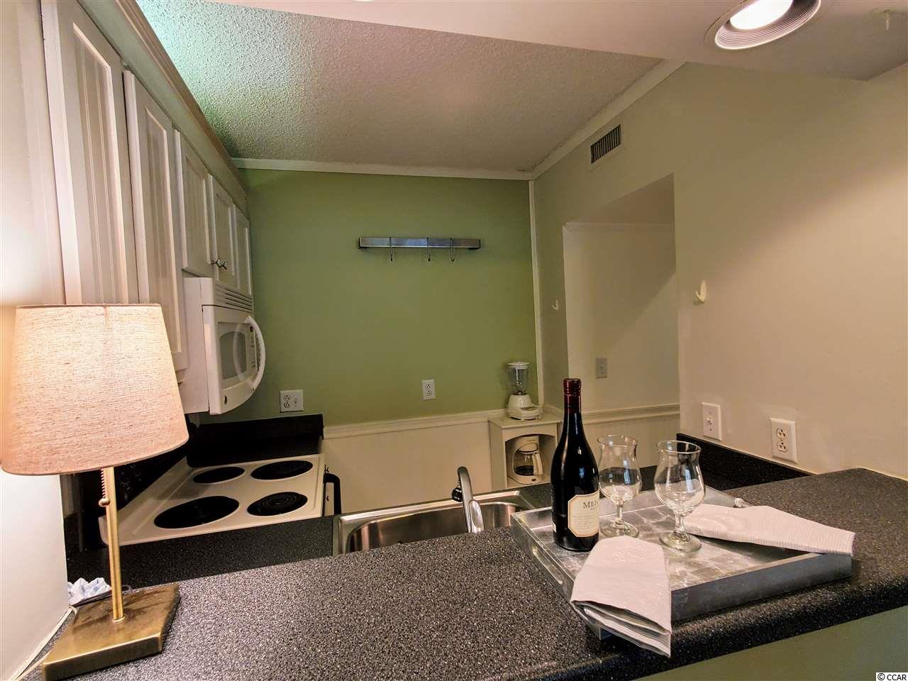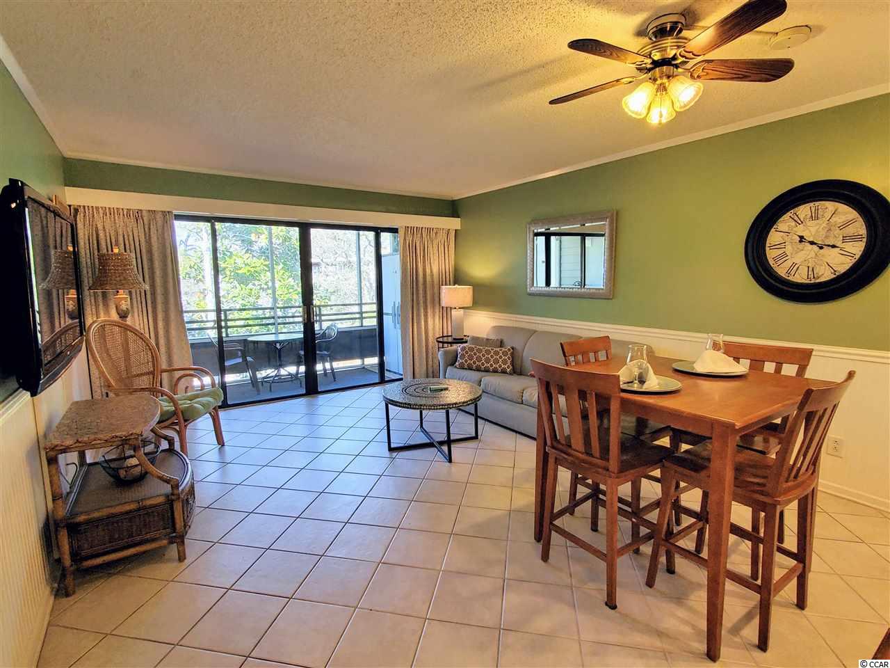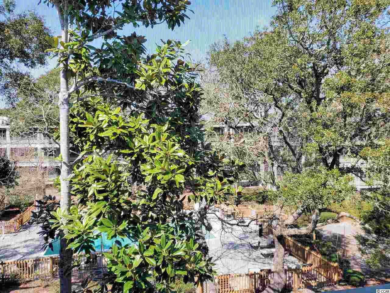 Top floor Lodge 3 East condo overlooks the pool and live oaks. Ocean Creek has 57-acres of park-like grounds. 24-hour gated security, tennis center, pickleball court, putting green, multiple outdoor pools, and an indoor pool with whirlpool. The community boasts a wonderful oceanfront beach club with a snack bar and grill open in season, sand volleyball court, outdoor pool, playground, lockers, and restrooms. All figs. & sq. ft. approximate.