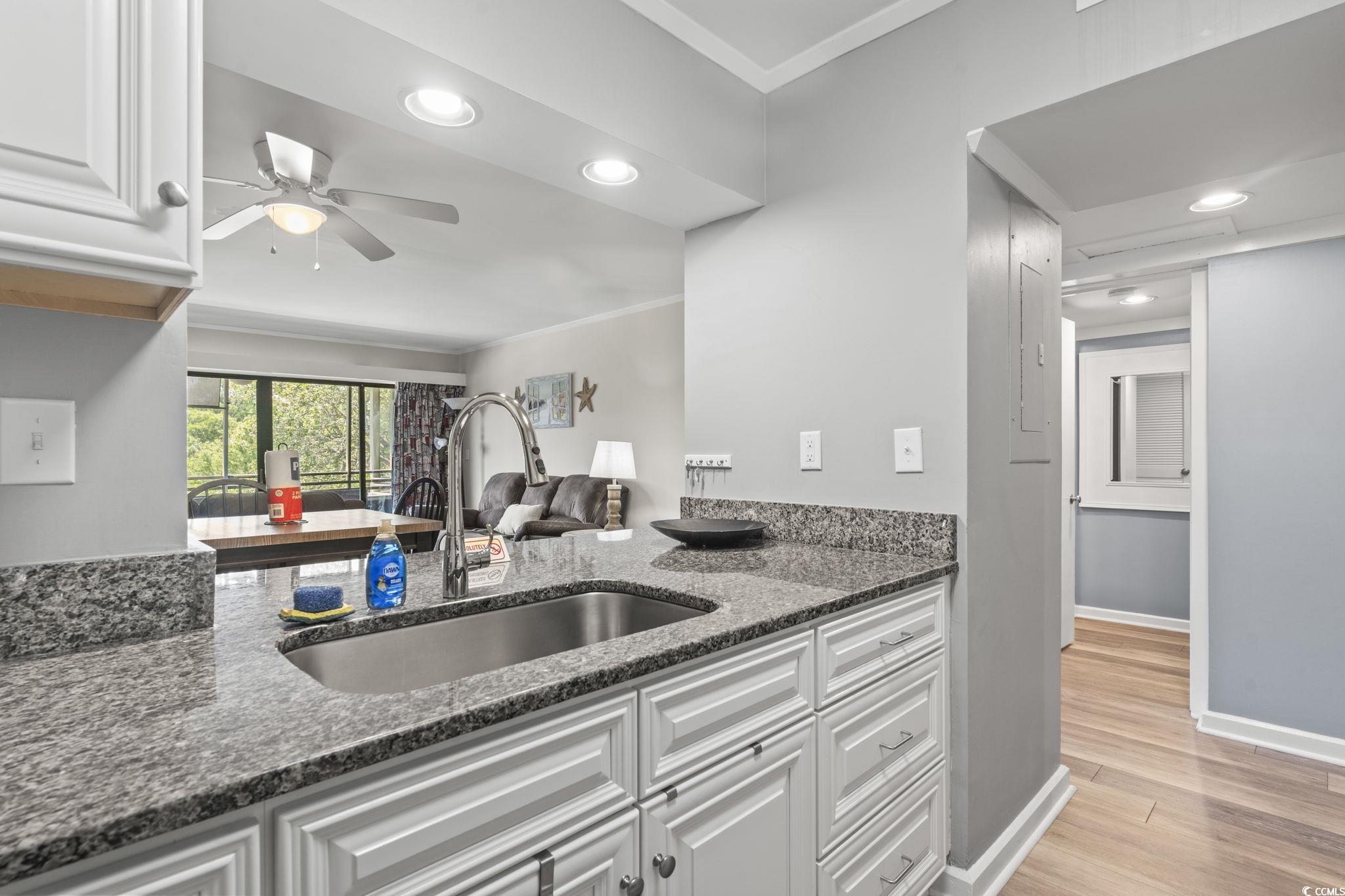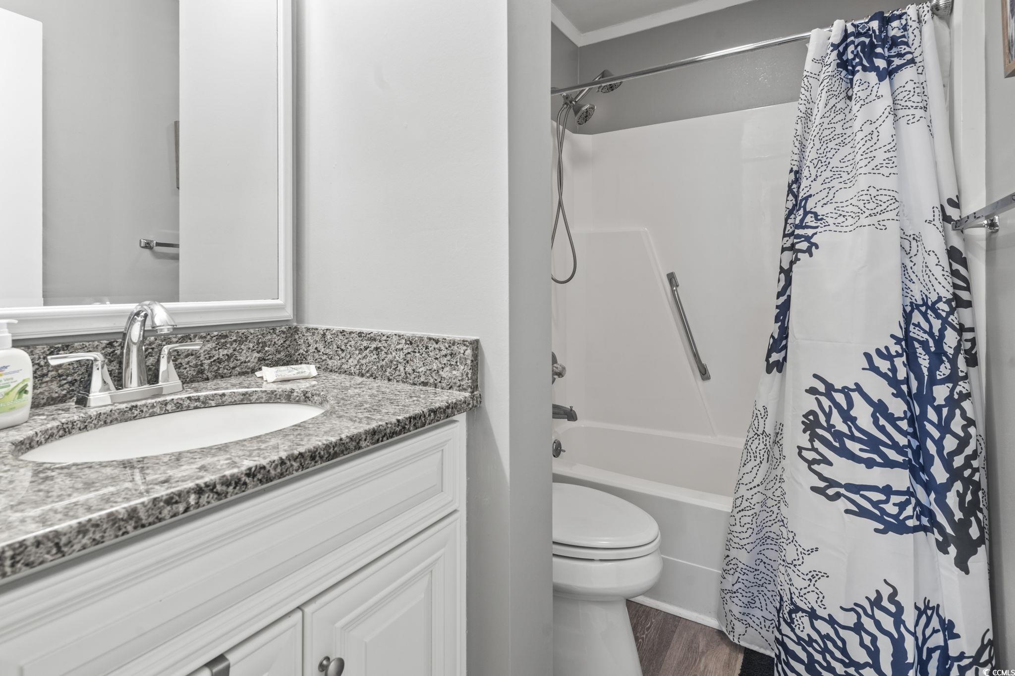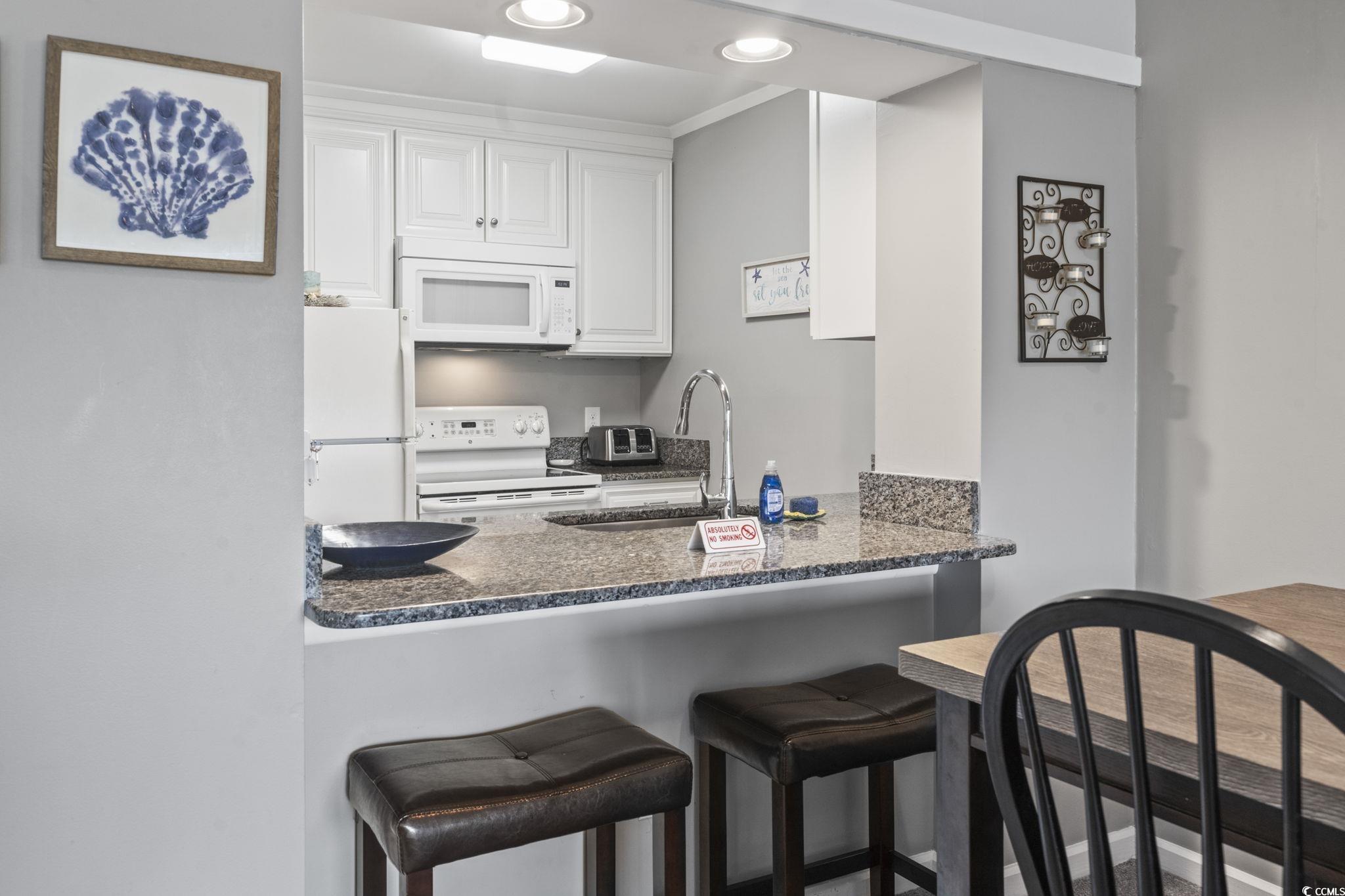 This is a top floor end unit, close to elevator and stairs. Two bedrooms and two baths, updated kitchen with granite countertops. Vinyl planking in main areas, carpet in bedrooms. Fully furnished including kitchen ware. Fresh paint, smooth ceilings. Laundry Facilities on same floor. Unit is ready for immediate use by the new owner. Perfect as a primary home, second home or investment.Ocean Creek is a 57 acre park like resort with 24 hour gated security. Amenities include a tennis center, putting green, multiple pools, including an indoor pool and whirlpool, oceanfront beach club with snack bar, sand volleyball court, and an onsite restaurant.