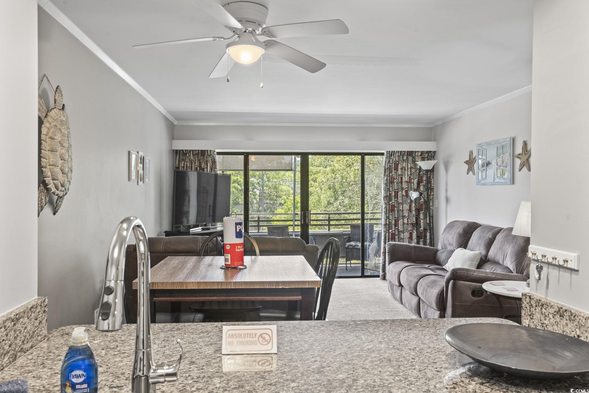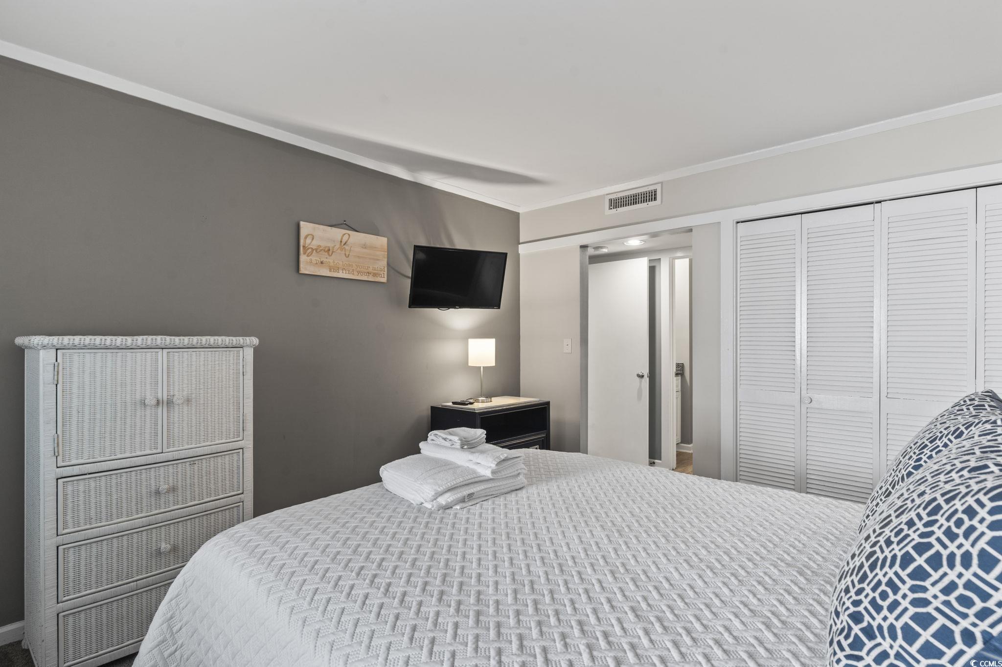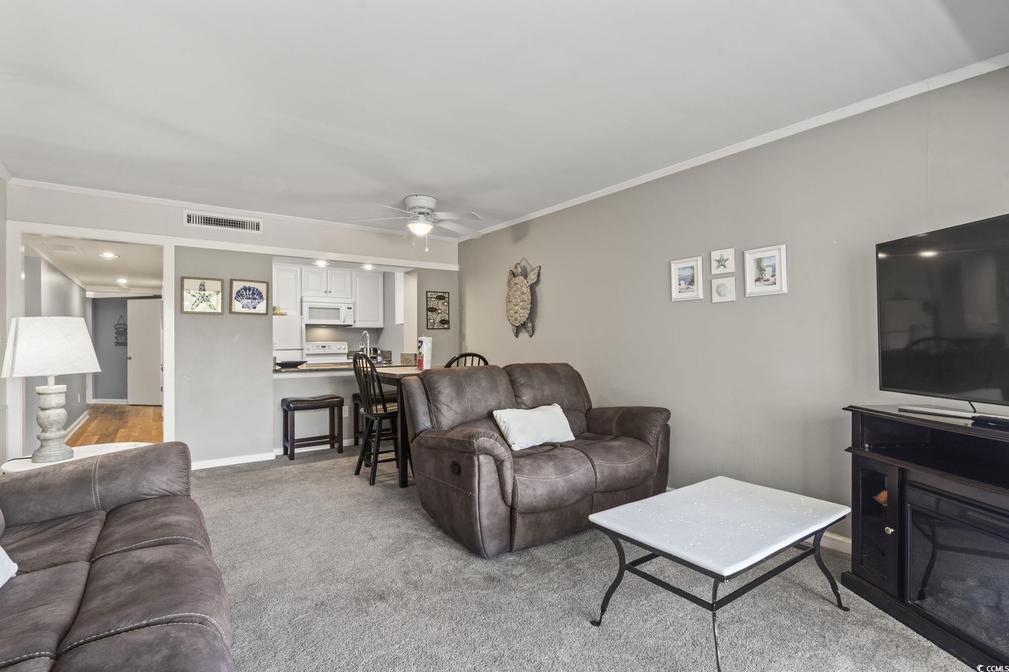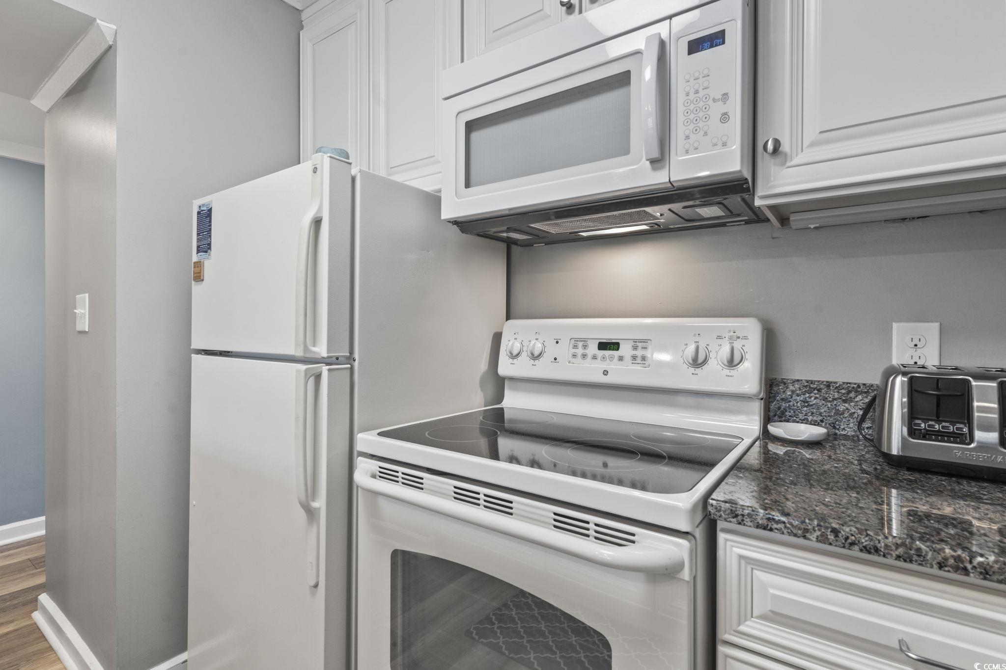 This is a top floor end unit, close to elevator and stairs. Two bedrooms and two baths, updated kitchen with granite countertops. Vinyl planking in main areas, carpet in bedrooms. Fully furnished including kitchen ware. Fresh paint, smooth ceilings. Laundry Facilities on same floor. Unit is ready for immediate use by the new owner. Perfect as a primary home, second home or investment.Ocean Creek is a 57 acre park like resort with 24 hour gated security. Amenities include a tennis center, putting green, multiple pools, including an indoor pool and whirlpool, oceanfront beach club with snack bar, sand volleyball court, and an onsite restaurant.