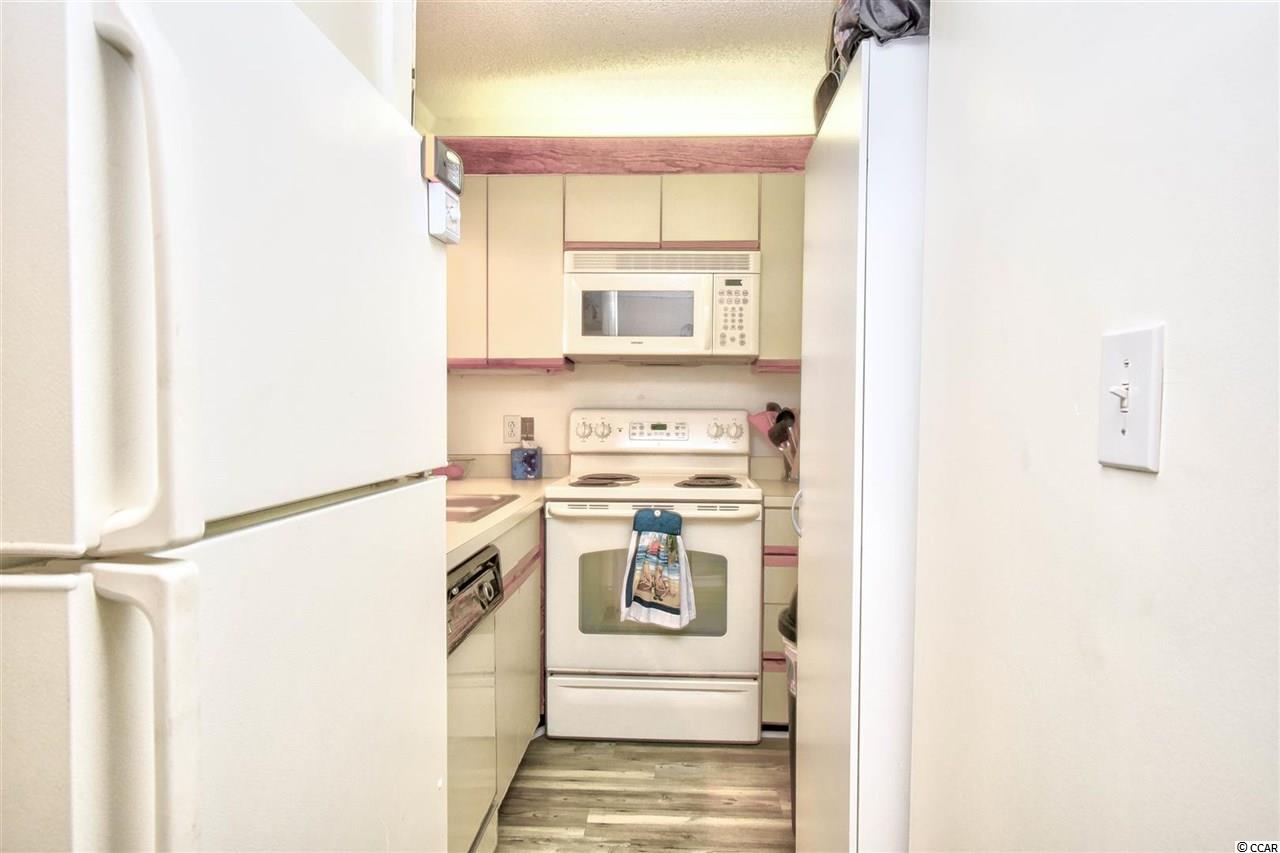 If you have been looking for the perfect vacation home, this is it! Located in the amazing Ocean Creek Resort , this 1 bedroom 1.5 bathroom is tucked away in a serene private setting and feels like you are miles away from all the hustle and bustle. Being sold furnished and tastefully decorated, this condo is also located in an elevator building and has great features inside and out. The spacious living room and dining area with direct access to the screen porch through the double sliding doors allow for light to cascade through the condo. Also convenient to the fully equipped kitchen complete with breakfast bar. Both bedrooms are large with abundant closet space and both bathrooms also have vanities. The expansive screened porch has wonderful views and is the perfect spot to relax at the end of the day. Ocean Creek is a 57 acre resort with fantastic amenities including indoor and outdoor pools, walking trails, restaurants, tennis, a fitness room, a playground, a putting green and a beach club bar and grill. This is a must see! Don't miss the chance to have your own piece of paradise!