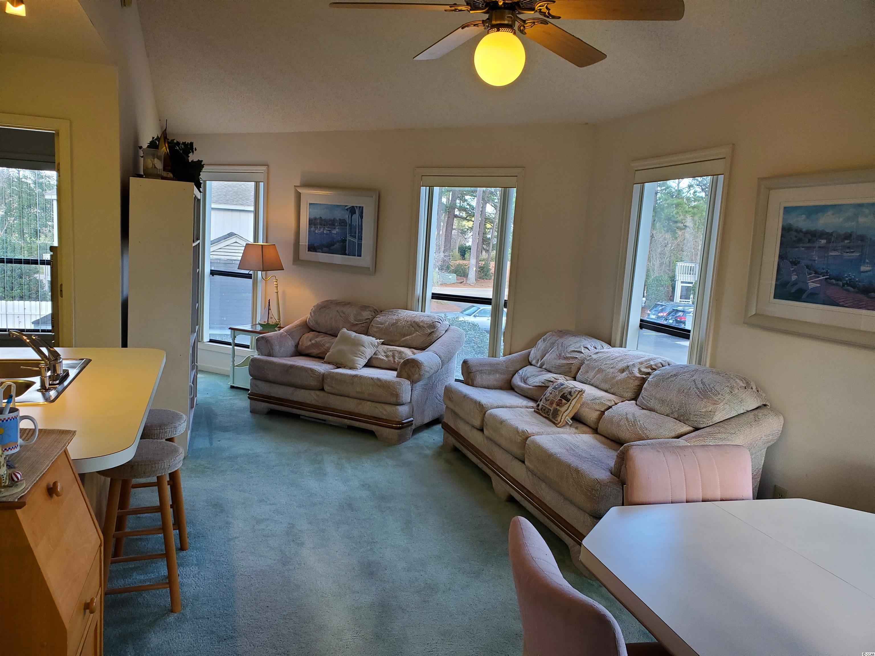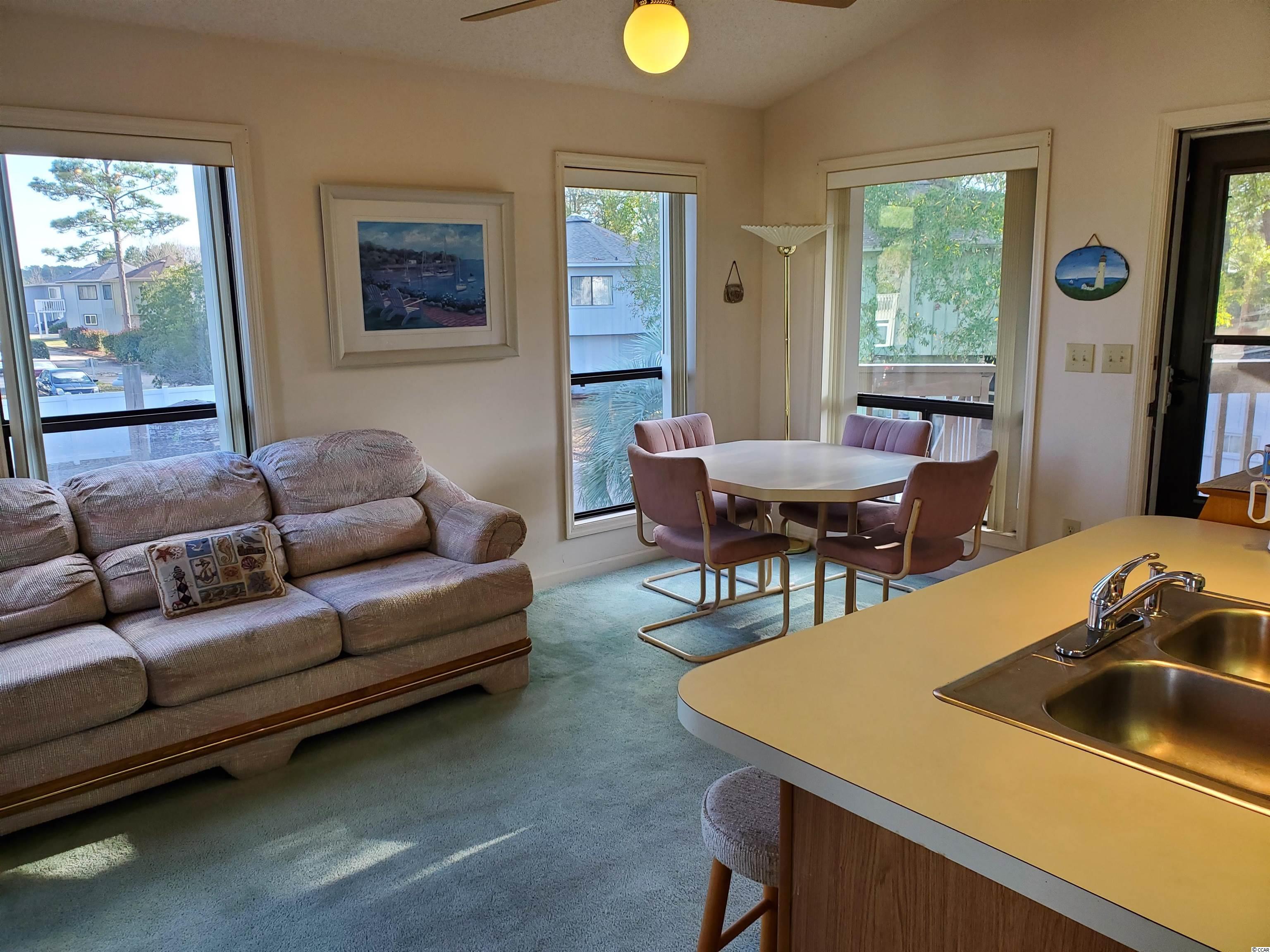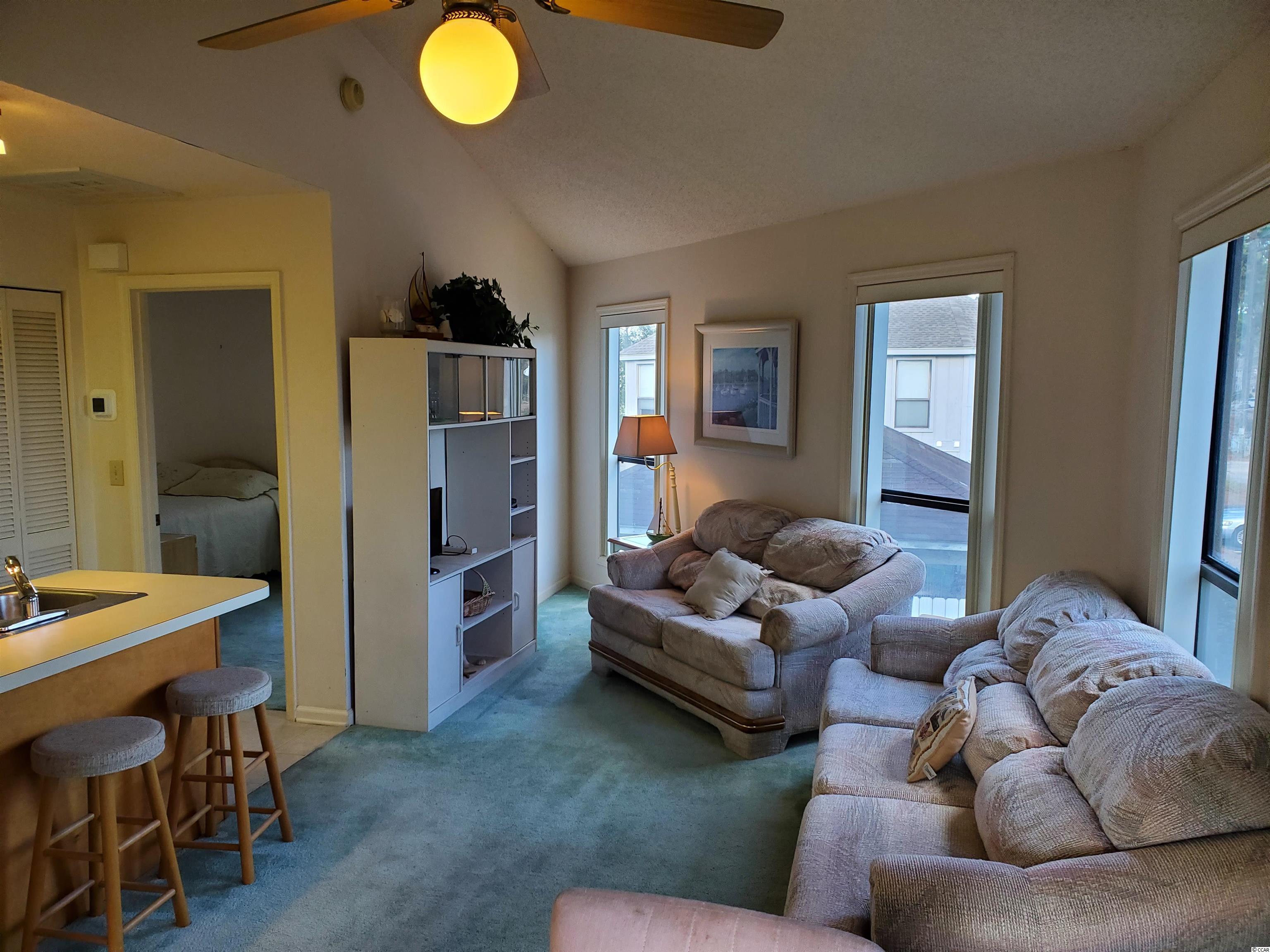 Tree Top Circle-Shaped Buildings Nestled in Gated Community of Island Green. Furnished. Plenty of Windows and Light. One Oversized Bedroom. Spacious Walk-in Closet. One Full-Sized Bathroom. 2nd/Top Floor Condo with Roomy Living Room. Kitchen. Washer and Dryer Included. Short Term and Long Term Rentals are Welcome. Low HOA Includes: Cable TV, Trash, Water & Sewer, Building Insurance, Common Maintenance/Repair, Landscaping, and Exterior Pest Control. New Roof 2020. Owners Pets are Welcome. 14 Minutes/6 Miles to the Beach! So Close to Restaurants Everywhere, Shopping, and Medical Facilities.