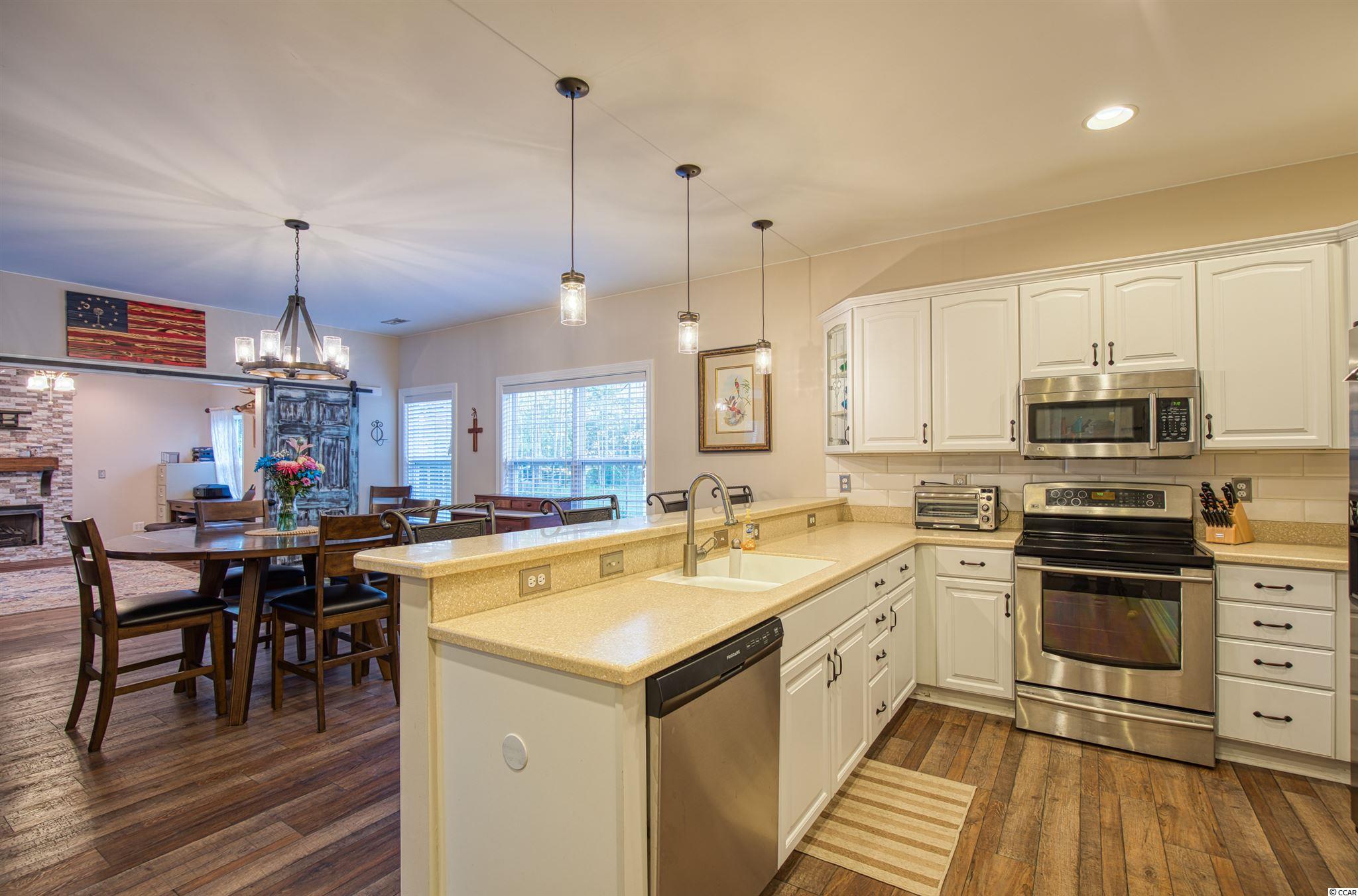 This beautiful spacious 4 bedroom 2.5 bathroom home in Waterford Plantation is just what you are looking for. On the first floor you have 3 bedrooms with two bathrooms, including the master suite, and a bedroom and half bathroom upstairs. The kitchen with 6 month old stainless steel appliances is open to the dining area and Carolina room which has a gas fireplace. This home offers beautiful curb appeal with mature trees and even has an extended driveway. The private corner lot is fenced in with trees all around and has a brick outdoor fireplace and kitchen. The low HOA fees include a large community pool with a clubhouse, tennis courts, basketball courts, and a playground. Close to Hwy 501, Hwy 31, shopping, the airport, and so much more. Set up a showing today before its gone.
