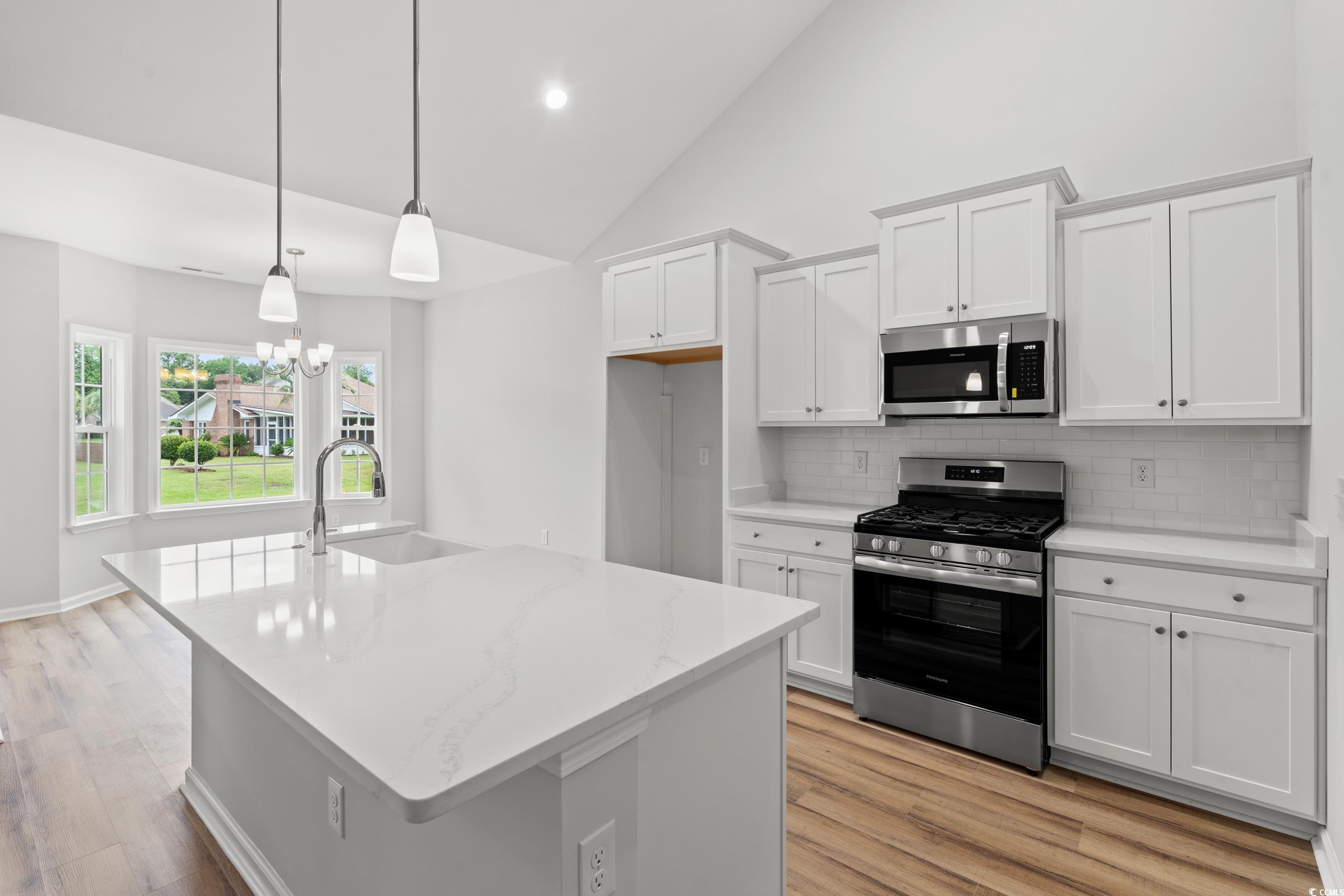 Quick Move-In. Golf cart to the beach from this beautiful Awendaw floor plan. Building lifestyles for over 40 years, we remain the premier home builder along the Grand Strand. Were proud to be the 2021, 2022, 2023, and 2024 winners of both WMBF News' and The Sun News Best Home Builder award, 2023 and 2024 winners of the Myrtle Beach Herald's Best Residential Real Estate Developer award, and 2024 winners of The Horry Independents Best Residential Real Estate Developer and Best New Home Builder award. This floor plan is very open with lots of natural light. Stainless appliances, marble-look quartz breakfast bar/counters and subway tile backsplash. Abundant recessed lighting, bay window in the adjacent dining area, double windows in the great room and a full glass door flood the home with light. The glass door in the great room leads to the covered rear porch and additional patio, with a fully-sodded backyard. All of the homes in Ocean Palms come standard with the luxury of natural gas (tankless water heater, gas heat, and gas range). The two car garage is completely trimmed and painted, with a wifi-enabled garage door opener, and floored attic storage space accessed by drop-down stairs. Ocean Palms is conveniently located near shopping, restaurants, schools, world class medical offices and hospitals, and is only a short golf cart ride to Surfside Beach's gorgeous beach and the beautiful Atlantic Ocean. Community pool and cabana.