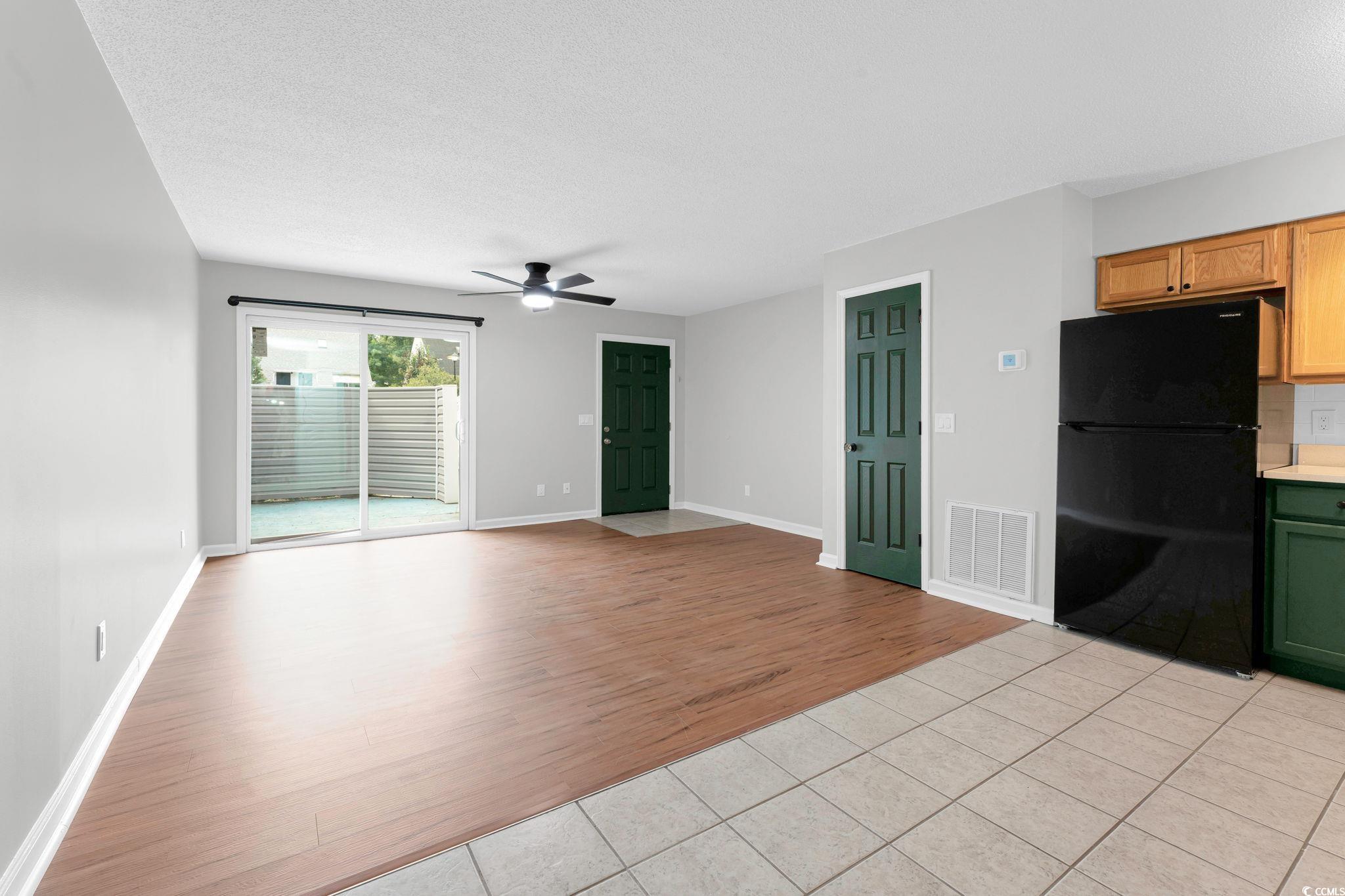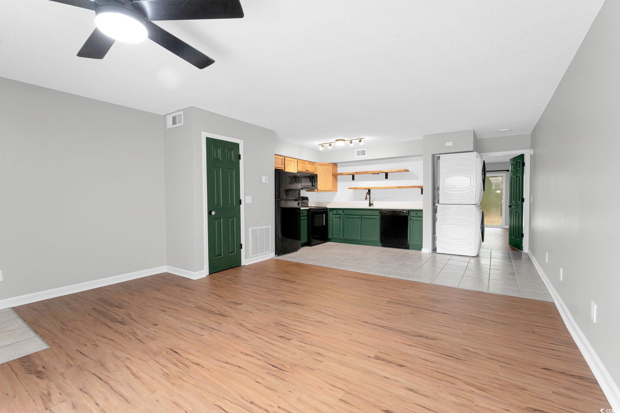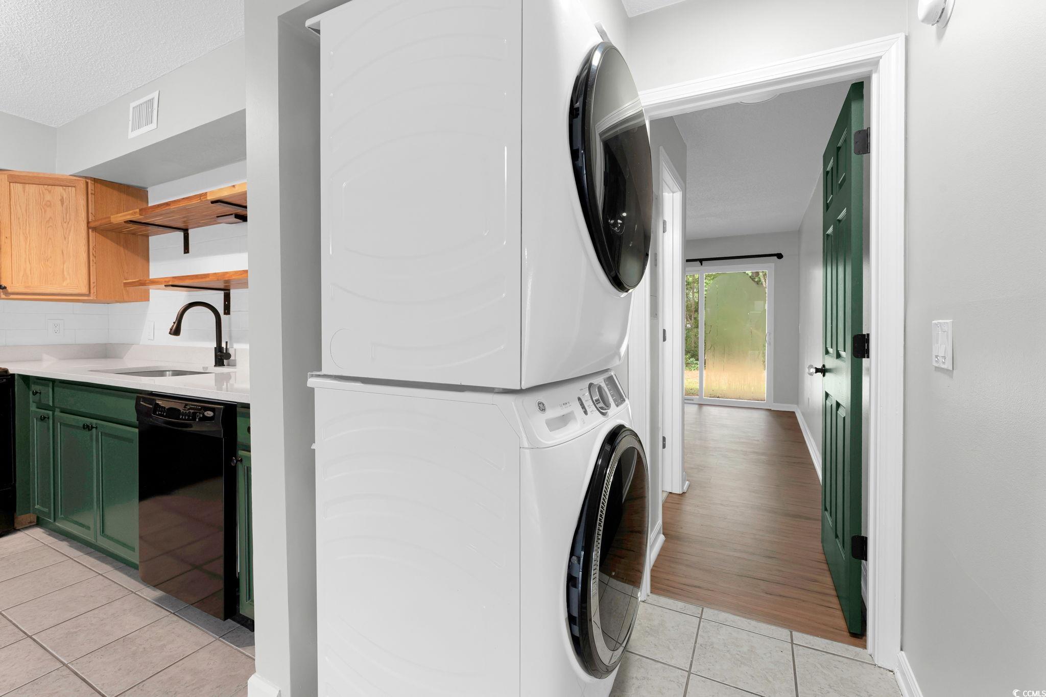 This well-maintained, ground floor, 1 bedroom, 1 bath condo, just 1.5 miles to the beautiful shores of Garden City Beach is perfect for you!!! Parking is just steps from the front door, maximum 2 car parking. As you open the new fiberglass entry door you are greeted with fresh paint throughout, new ceiling fans and lighting throughout, and a new front patio door. This condo boasts newer appliances, a recently updated kitchen including quartz countertops, and a ceramic tile backsplash. The recently replaced HVAC can be controlled from the smart thermostat. There is a spacious front patio with a small storage shed perfect for beach chairs & umbrellas and a smaller patio in the back off the bedroom. Newer luxury vinyl plank flooring in the living area and bedroom. There is a full-sized front load stacked washer and dryer. Owners & tenants allowed golf carts and motorcycles! Short term & long term rentals allowed! This is the perfect condo - whether you're looking for your new home, vacation home or a great investment opportunity, this one checks all the boxes in a prime location, convenient to beaches, dining and more!!!