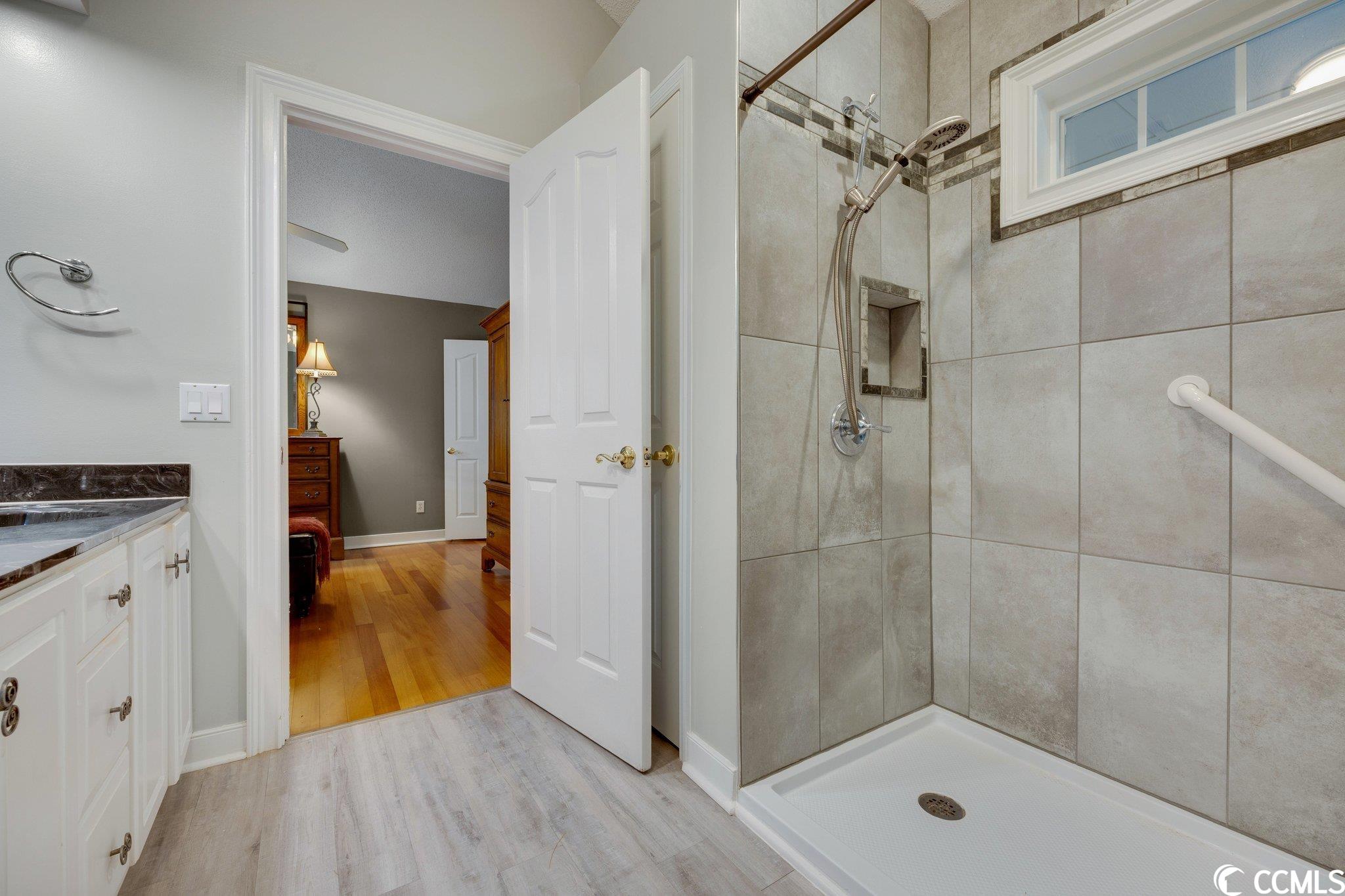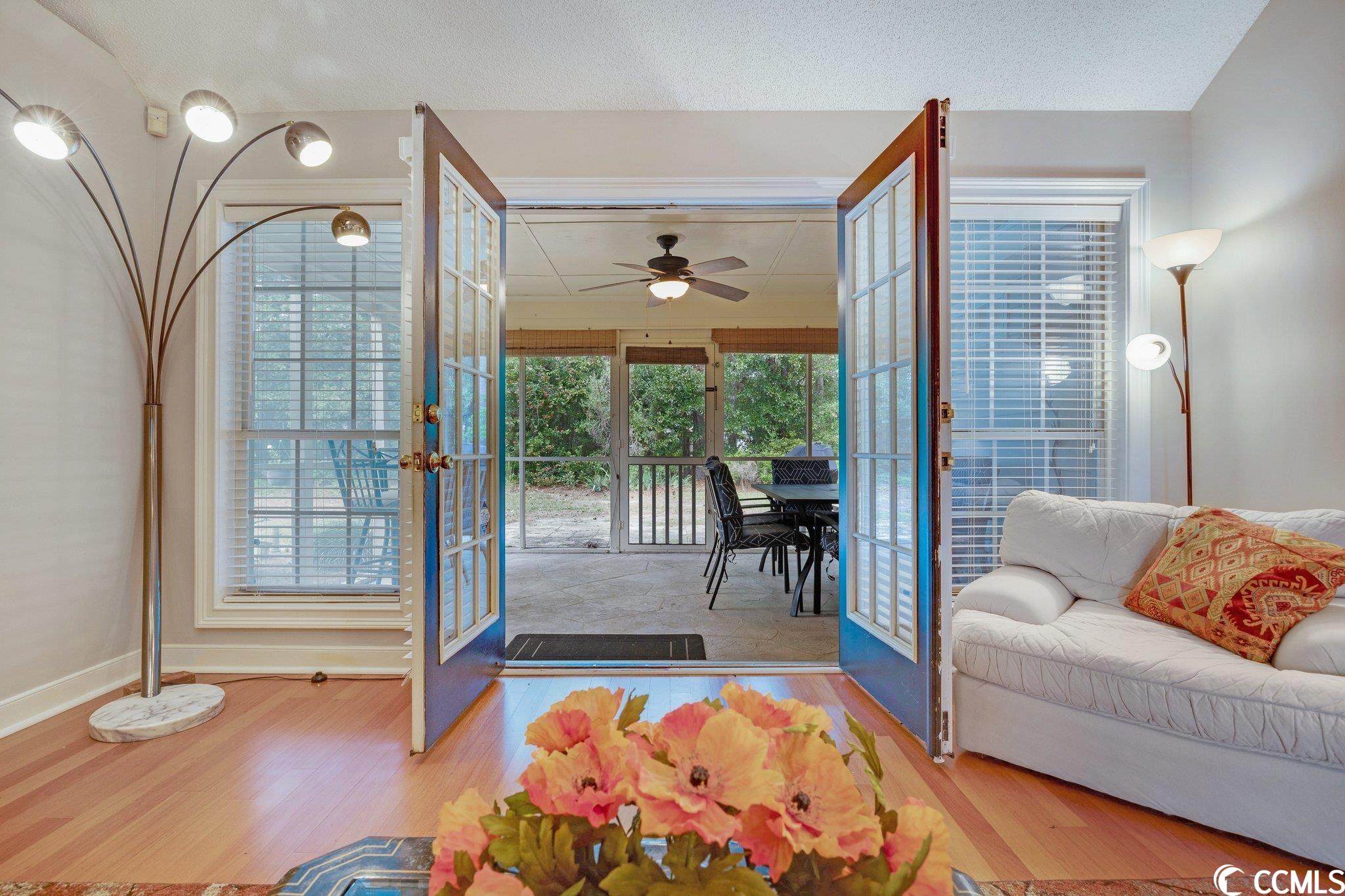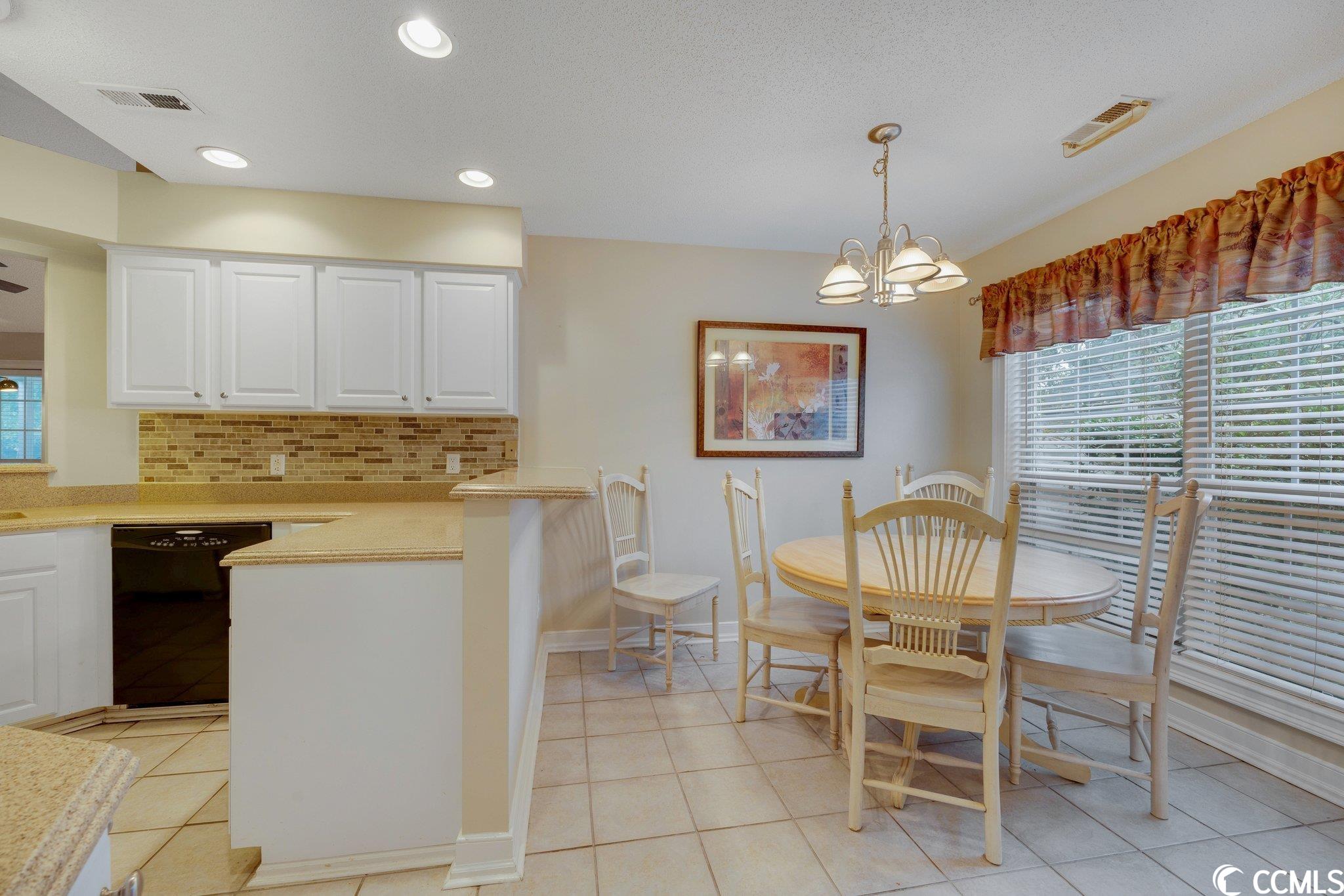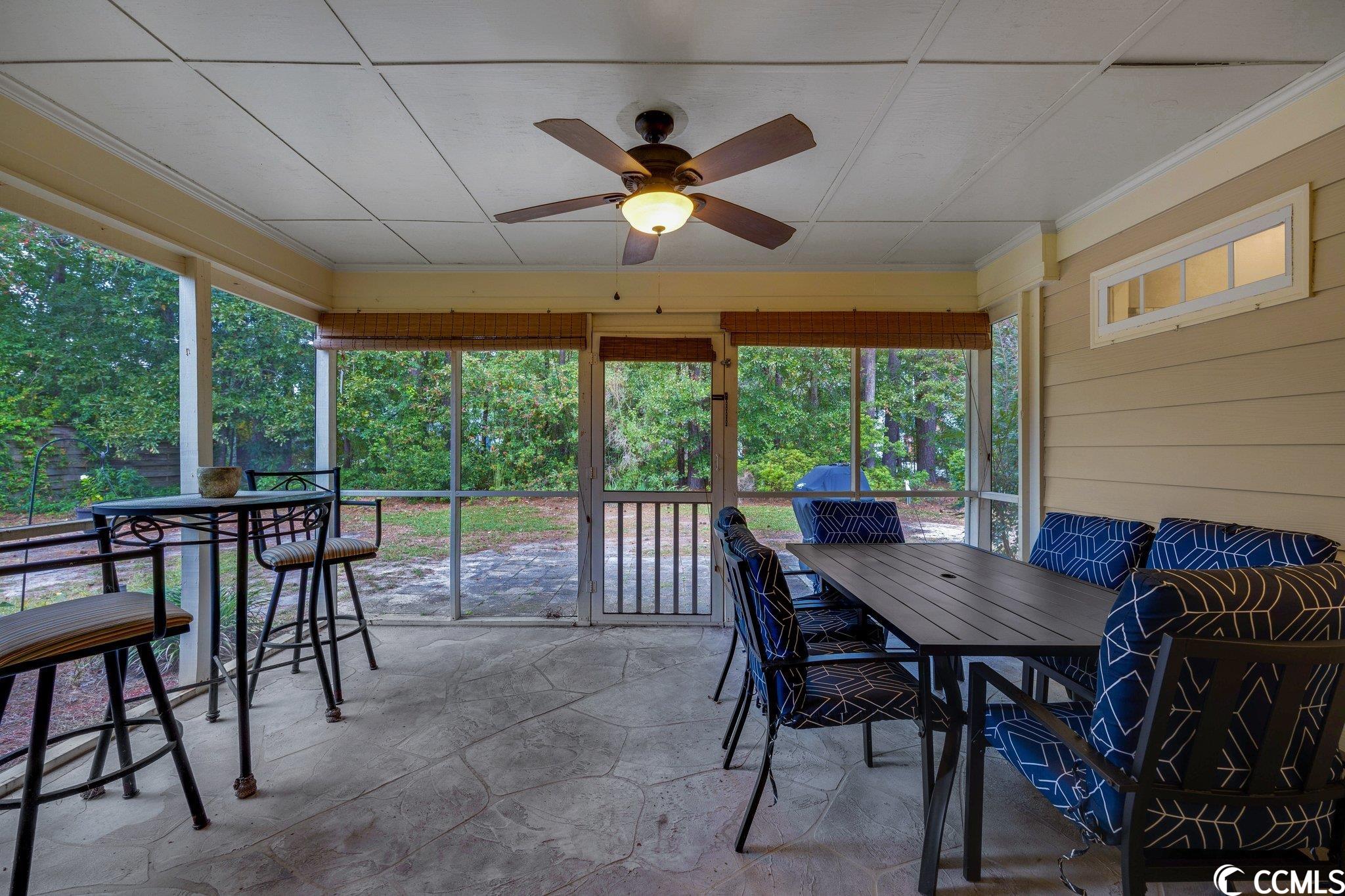 This charming 3 bedroom, 2 bathroom home is located in the lovely neighborhood community of Bellacroft. It is less than 10 minutes from the beautiful shoreline of North Myrtle Beach. Just 5 minutes away from shopping centers, and the Cherry Grove Marina, where there is boating, dining and beautiful sunsets over the inter-coastal waterway. This home is one level living at its best, with a split floor plan, tall vaulted ceilings in the living room, eat-in kitchen, and a formal dining room. The primary bedroom has a full remodeled bathroom, and the other full bathroom is located in between the other 2 bedrooms. Off the living room you'll find a tiled screened in porch to entertain or relax in during any season. Step out into the partially fenced in back yard with plenty of room for your pets or children to play. This home is close by, and just a short walk to the community pool. This home boasts several recent updates, including a roof within the last 8 years,newer hot water heater, remodeled master bathroom, newer kitchen counter tops, back splash, new sprinkler system and much more! Schedule your showing today!