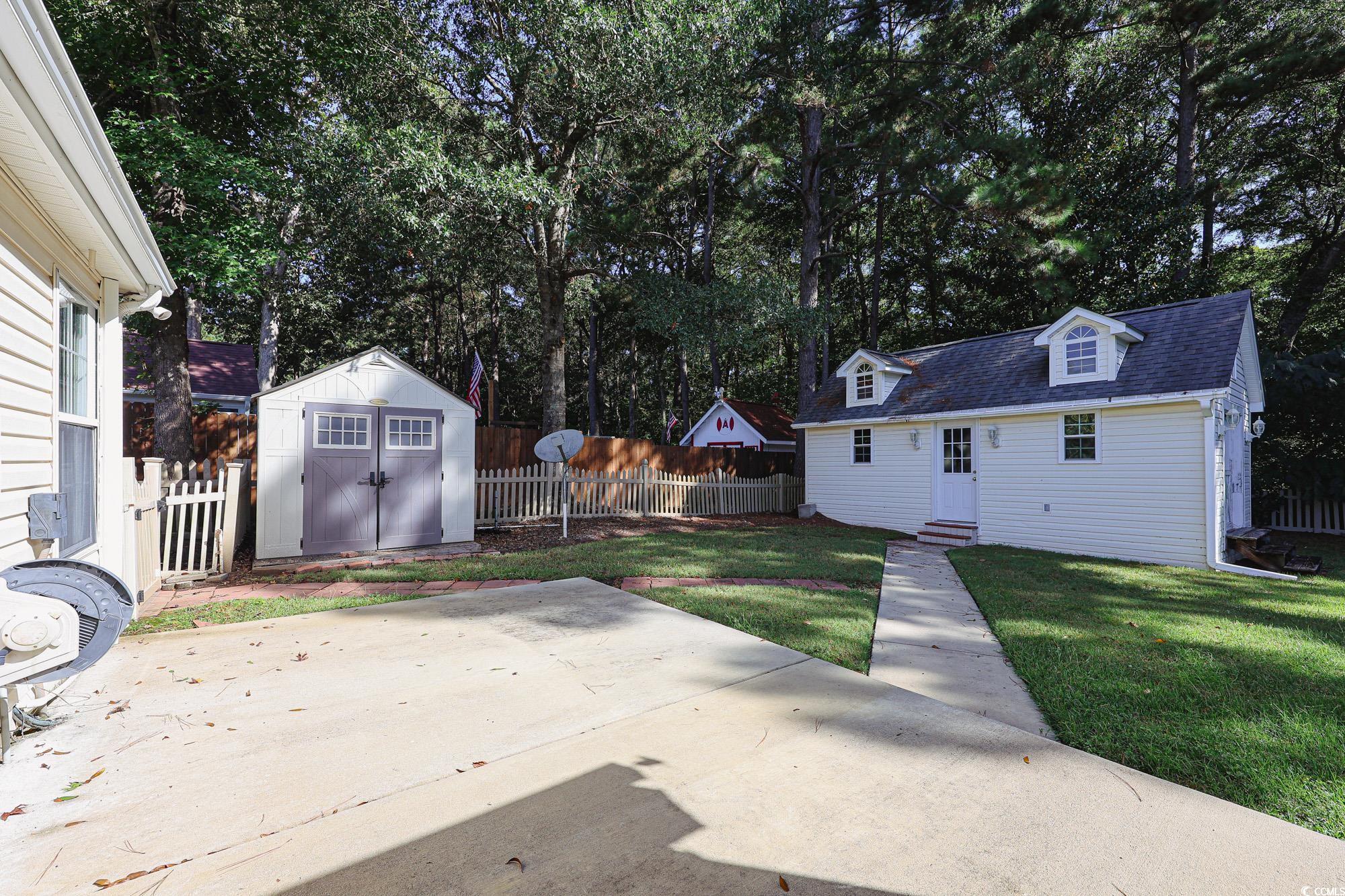 Welcome to 432 Brandymill Blvd, a bright and spacious single-level 3-bedroom, 2-bath home in the sought-after Brandymill community. The thoughtfully designed split-bedroom layout balances privacy with open living. The formal dining room features a bay window that fills the space with natural light, while the kitchen offers warm wood cabinetry, granite countertops, and vaulted ceilings that open to the main living area. The living room flows into a heated and cooled sunroomperfect for morning coffee or evening relaxationoverlooking a private fenced backyard with a detached workshop (with mini-split A/C) and an additional utility shed. The primary suite is a true retreat, featuring a walk-in closet and an en-suite bath with dual vanities, a walk-in shower, and a soaking tub. Two additional bedrooms are located on the opposite side of the home with access to a full hall bath. Set on a beautifully landscaped lot with mature trees, this home offers comfort, functionality, and convenience. Located in the award-winning Socastee school district with low HOA, its just minutes from schools, golf courses, shopping, dining, and the beach.