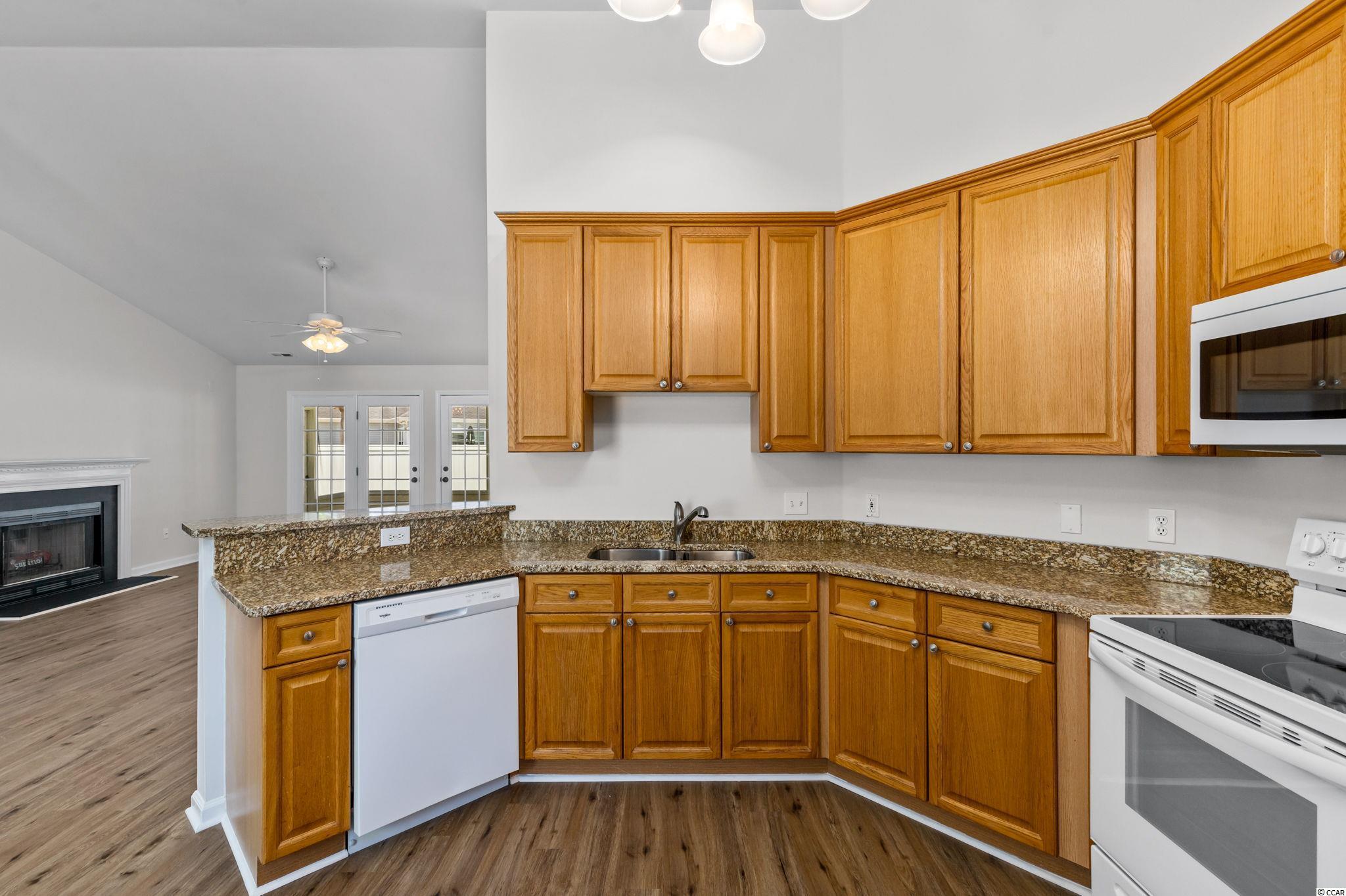 Charming 3BR-2BA home in the Brandymill community of Socastee. LOW HOA FEES! Freshly Painted - Move In ready, new Luxury Vinyl Plank flooring throughout the home, new brushed nickel hardware throughout, work bench and cabinets in garage and washer/dryer convey. The kitchen features new granite counter top, new sink & faucet, new dishwasher & stove, breakfast nook and pantry. The living room has a wood burning fireplace and French doors leading to the screened porch. Large private backyard with white vinyl fencing. The master bedroom has a tray ceiling, sitting area, ceiling fan & walk-in closet. In the master bath is a double sink vanity, soaking tub and walk-in shower with new shower door in brushed nickel. Brandymill is a quiet tucked away community that is close to beaches, restaurants, shopping and most of the area's major roadways. Make an appointment to see this house today! It won't last long!