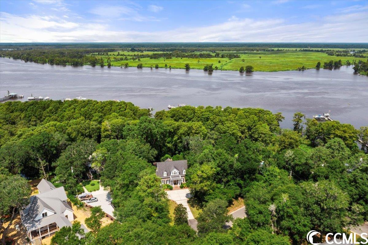 On the Intracoastal Waterway, with its own dock and within walking distance of a boat ramp -- come check out this beautiful, custom-built, colonial brick home in Hagley Estates, with no HOA. Located minutes from shopping and countless amenities and only a short boat ride to downtown Georgetown, where you'll find inviting riverfront restaurants, and just fifteen miles from the ocean via Winyah Bay. The home offers three spacious bedrooms, each with a private bath. The main-level master suite has an attached Carolina room. The living room is an open floor plan with a double-sided wood-burning brick fireplace, perfect for entertaining or relaxing by a cozy fire overlooking tall cypress trees and the Waccamaw River. The kitchen has plenty of cabinetry, as well as a center island and pantry. The dining area adjacent to the kitchen also has views of the ICW. A large screened porch is accessed via sliding glass doors from the dining area or living room. The two-car semi-detached garage, accessed via a covered walkway from the laundry room entrance, has a large attic for storage, or could be converted into living space. The property's landscaping is served by an irrigation system. The west-facing back of the home offers stunning over-water sunset views. Don't miss this rare opportunity to have your very own piece of paradise.