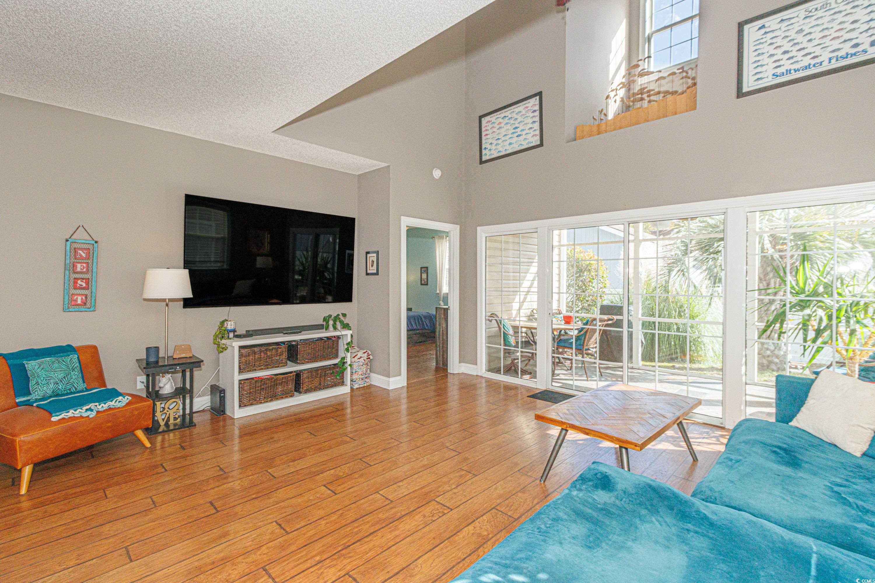 Rare opportunity, spacious end unit in an ideal location. This stunning 3-bedroom, 2-bathroom 1 1/2 bath, home offers a perfect blend of size, layout, and location - an unbeatable combination! The expansive living room features soaring vaulted ceilings, creating an airy, open feel. The end-unit design brings in extra natural light, with additional windows that brighten the space. Enjoy ultimate convenience with a private garage and ample storage throughout, including a screened-in porch perfect for relaxing or entertaining. The beautifully appointed kitchen is a chef's dream, with custom cabinetry, sleek stainless steel appliances, a wine/coffee bar, and luxurious granite countertops. This home is ideally positioned in the back of the charming Willoughby Place community, right across from the community pool, offering a tranquil setting just a mile from the beach. Located off Grissom Parkway and 44th Ave N, you'll be minutes from all the best that Myrtle Beach has to offer - shopping, dining, and entertainment. With its generous square footage, abundant storage, and garage, this is a rare find at this price point. Dont miss out on this exceptional property - schedule your showing today!