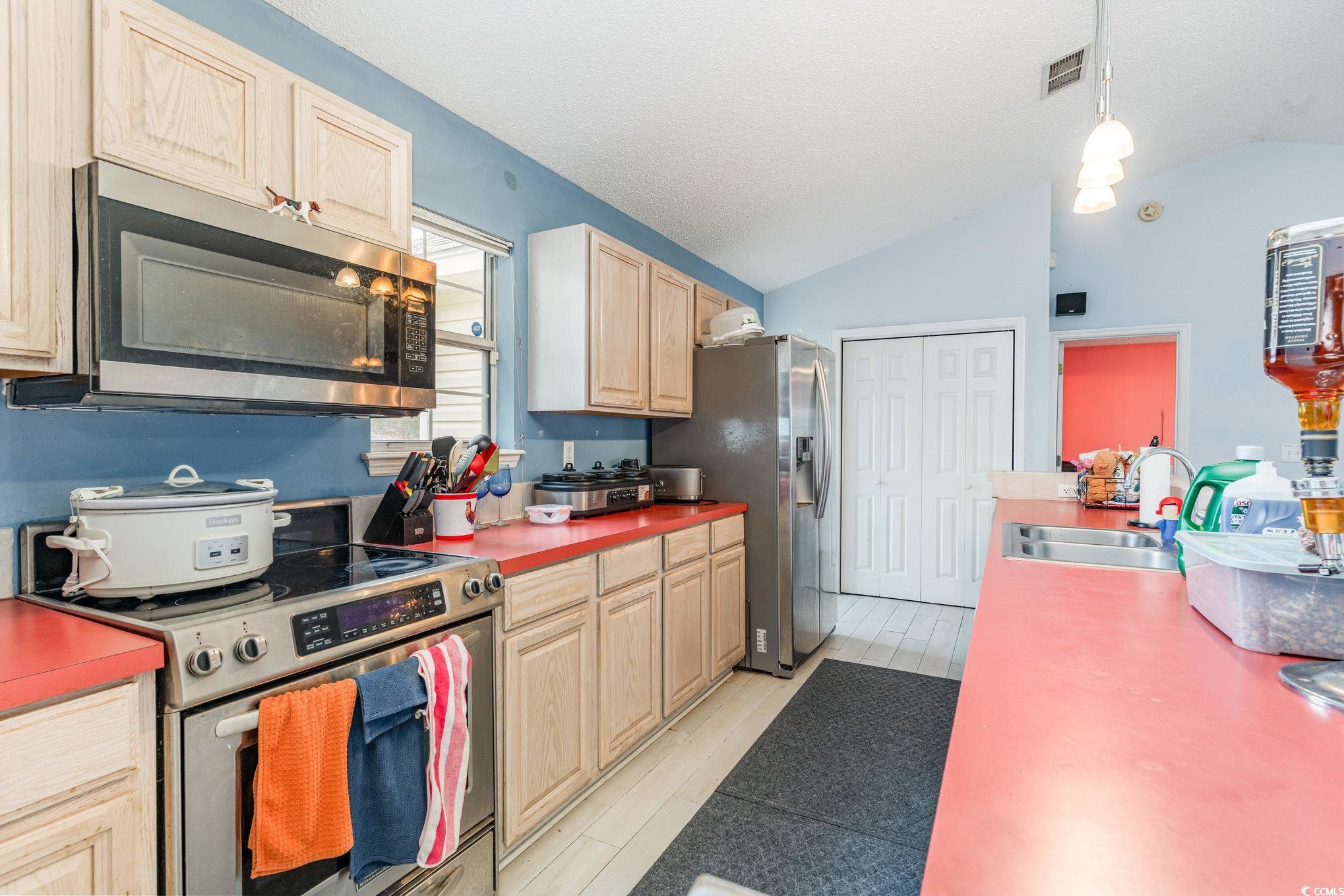 Welcome to this charming 3-bedroom, 2-bathroom single-story home tucked away in a quiet cul-de-sac within the desirable Forestbrook/Socastee school district. Offering both comfort and convenience, this home has no HOA and sits in a peaceful neighborhood setting. Step inside to an open-concept layout featuring a spacious living room with vaulted ceilings that flows seamlessly into the dining area and kitchen. The heart of the home is the large kitchen island, perfect for gathering and entertaining. A bright carolina room with patio access provides an inviting space to relax and enjoy the view of your backyard. Outside, the large fenced-in yard offers privacy and plenty of room for pets, play, or gardening. With its combination of space, style, and location, this property is perfect as a family home or a long-term investment.