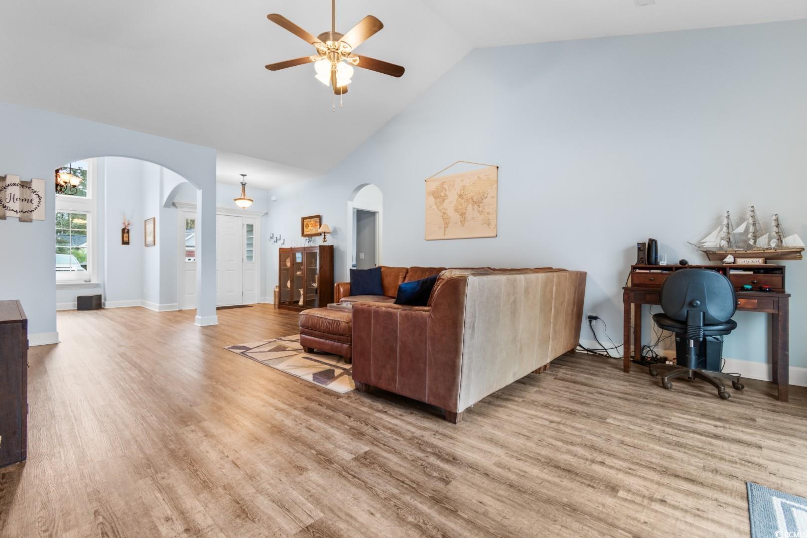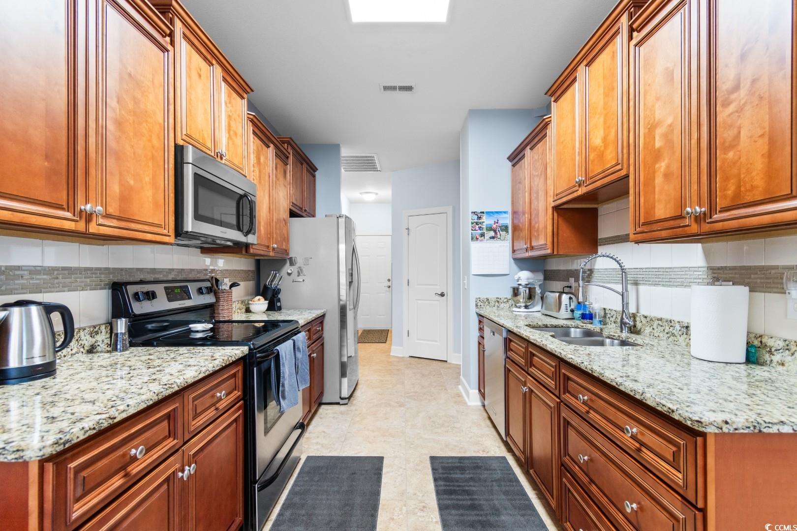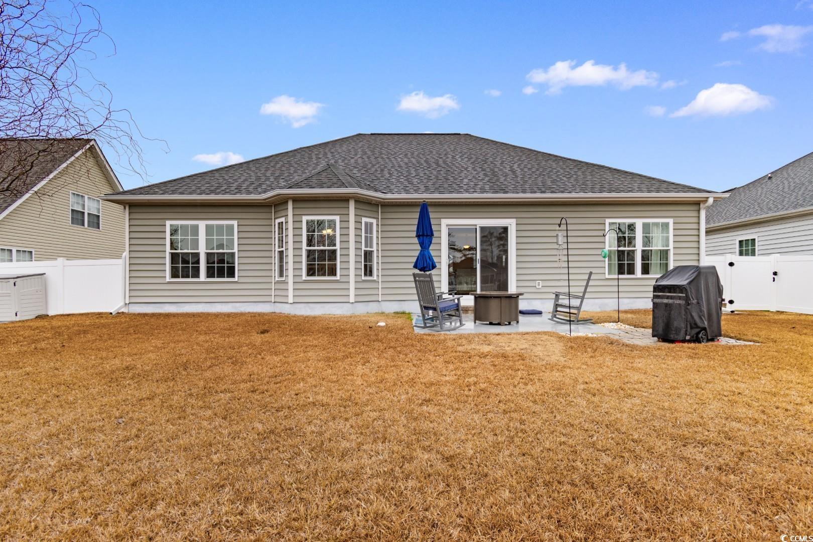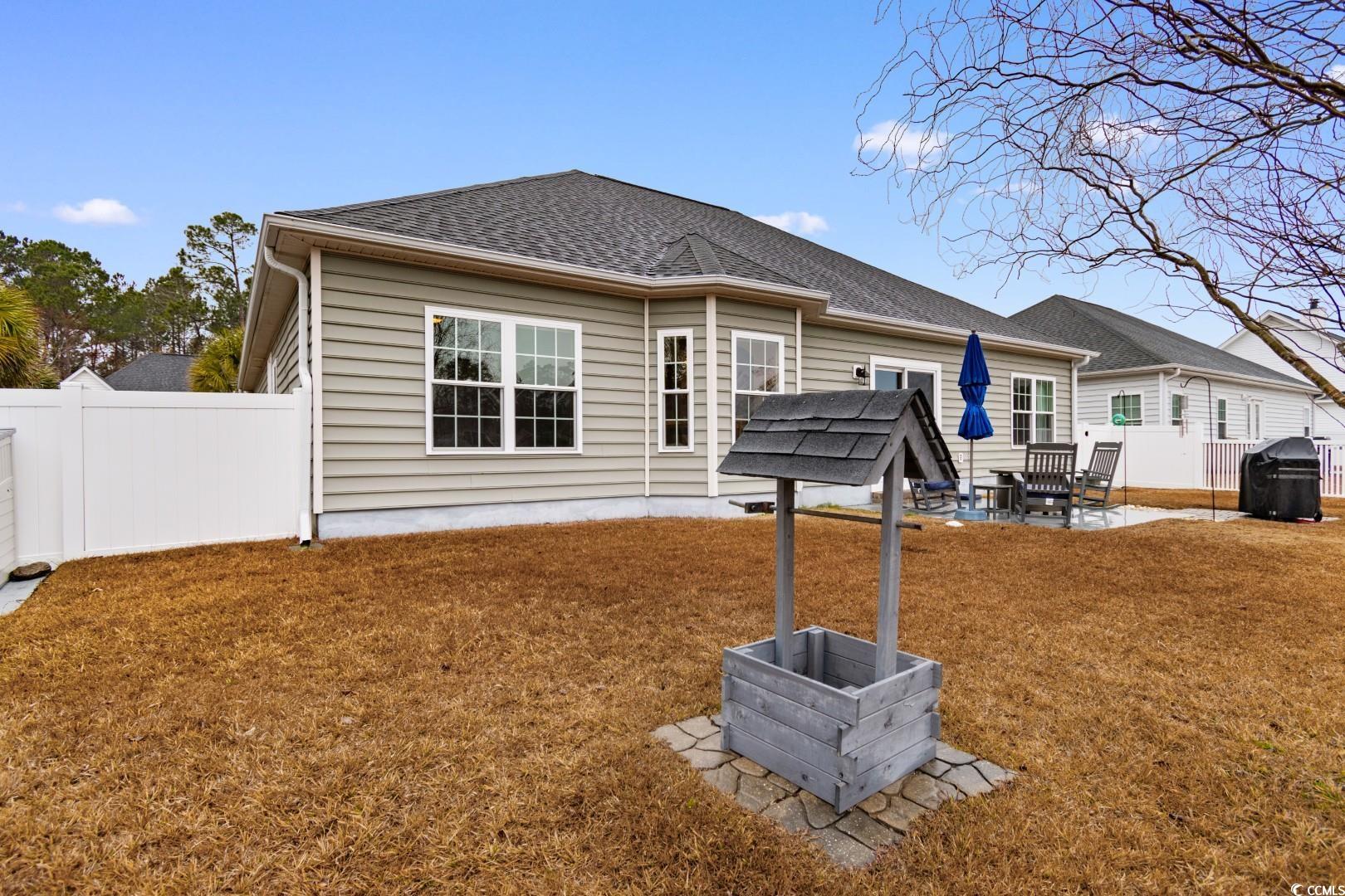 Welcome to this beautiful 3-bedroom, 2-bathroom home offering a perfect blend of comfort and functionality in the heart of the Myrtle Beach area. The spacious master suite features a walk-in closet and a separate master bathroom with a double sink vanity. The bathroom includes both a tub and shower, providing a luxurious and convenient setup. The open-concept kitchen and dining area boast stunning views of the outside, creating an inviting space for both cooking and entertaining. The kitchen is equipped with a range, dishwasher, refrigerator, microwave, and pantry, all complemented by beautiful flooring throughout. For added convenience, the home includes a garage with an automatic opener. The peaceful patio at the back overlooks the pond, and the spacious fenced backyard provides privacy and room for outdoor activities. Located just minutes from the beach, shopping, dining, and entertainment, this home offers the perfect combination of coastal living and comfort. Schedule your showing today! .