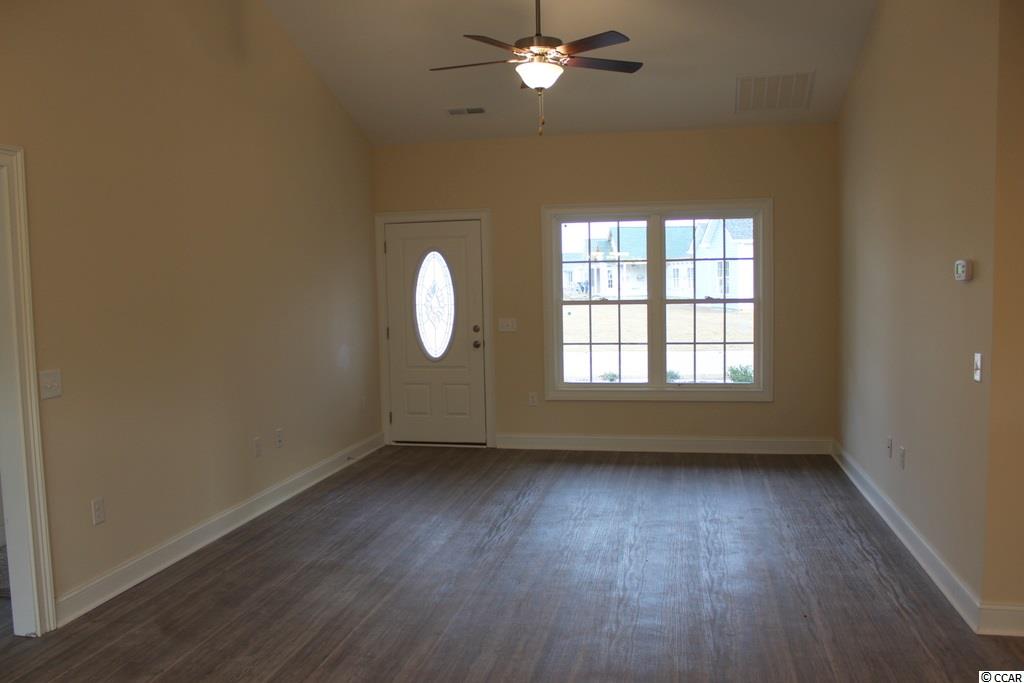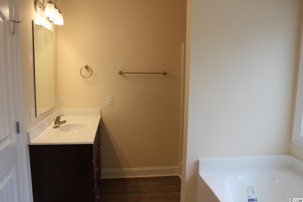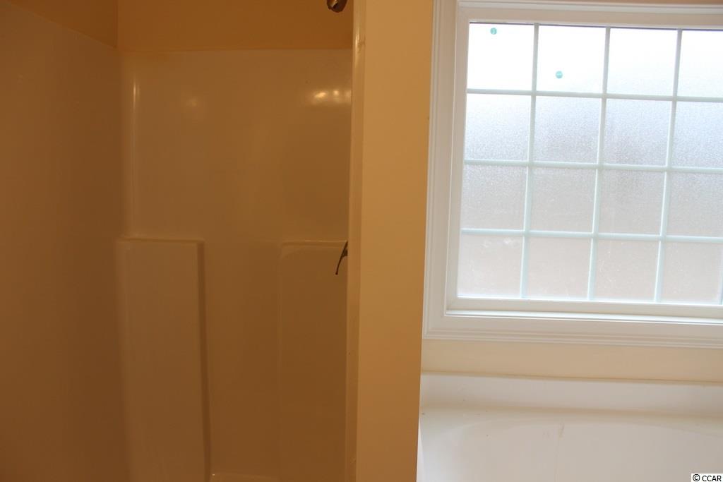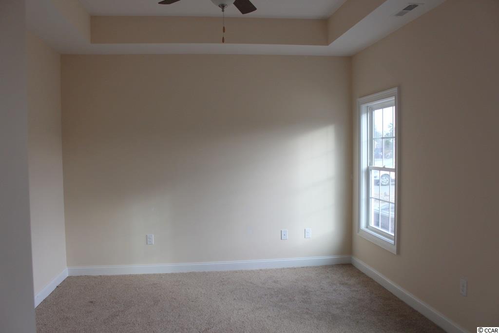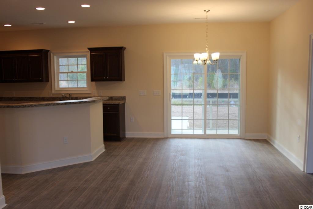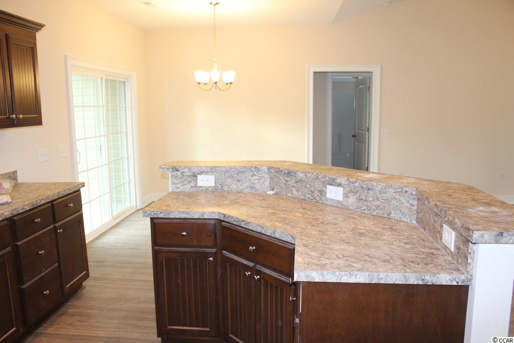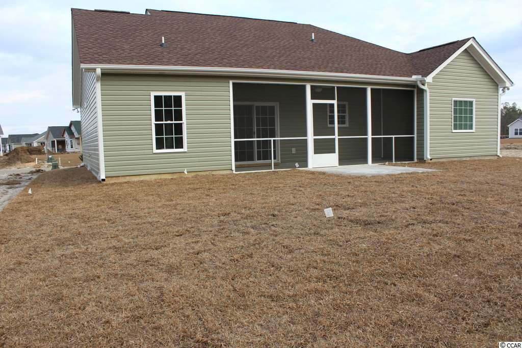 Popular 3 bedroom Park Pecan floor plan, relaxing front porch, 6' x 23' rear screen porch with ceiling fan and patio. Open floor plan, dining area, living room has vaulted ceiling, ceiling fan, large kitchen has lots of solid wood cabinets with crown molding, breakfast counter, stainless steel appliances - microwave, smooth top stove, dishwasher, and pantry closet. Split bedrooms - Master suite has tray ceiling with ceiling fan, 2 walk-in closets, 2 separate sinks in raised height vanities, garden tub plus separate walk-in shower, large window to let the light in. Wood look vinyl flooring through the home, all bedrooms have carpet. Guest bedrooms and bath on opposite side of the house. Spacious finished/painted and insulated 2-car garage with service door, automatic door opener and keypad, mop sink and pull down stairs to attic storage above. Upgraded 16 seer HVAC system and radiant roof barrier. Irrigation system, front and back gutters, sodded and landscaped yard. Gated community with community pool and clubhouse. Award winning local builder. Video is for illustrative purposes only and may be of similar house built elsewhere. Close to North Myrtle Beach shopping, dining, and the beach! Square footage is approximate and not guaranteed. Buyer is responsible for verification.