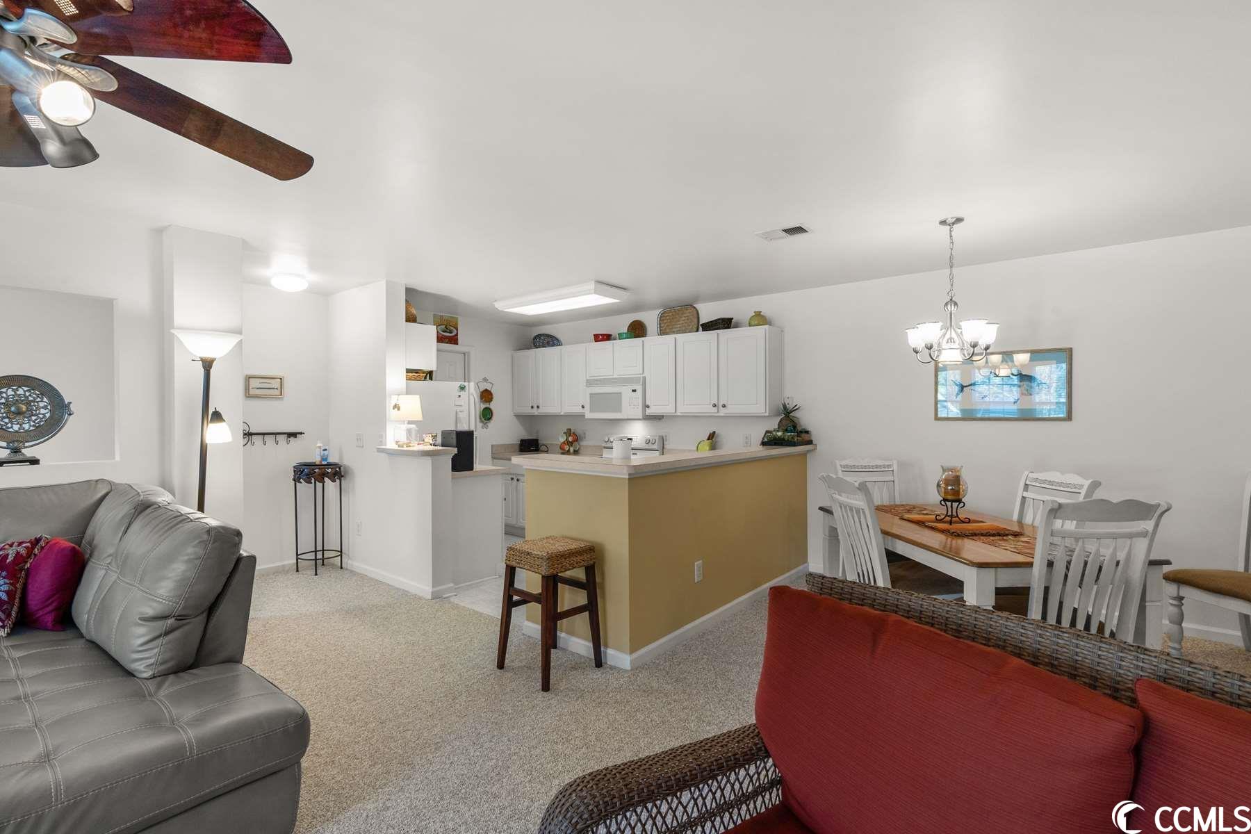 Welcome to Wyngate at Wachesaw East, a GATED and SECURE community, just a few miles to the Murrells Inlet beaches. Wyngate has 24/7 Gated Security, great amenities, and one of the Grand Strands best golf courses. Don't miss your opportunity to own this 3 bedroom, 2 bathroom unit in the highly sought after community, Wyngate in Wachesaw East! This unit has been immaculately kept, and is truly ready for you to move in or start renting! The kitchen is equipped with all appliances, plenty of cabinet and counter space, a breakfast bar, and a dining area with room for the whole family to gather! The spacious open floor plan of the main living areas makes entertaining guests a breeze, with a Carolina room leading to your screened in balcony! Each bedroom includes a ceiling fan, a spacious closet, and easy access to a bathroom, while one of the two guest bedrooms also features access to the balcony! Spend your days relaxing on the back patio just downstairs overlooking the lake and the golf course, or at the many community activities. Wyngate offers its own community pool and access to the Wachesaw East pools, playground, clubhouse, tennis courts, walking trails, and more! Perfectly situated close to all of the Grand Strand's finest dining, shopping, golf, and entertainment attractions, and just a short drive to the beach and the famous, Murrells Inlet Marsh Walk. You won't want to miss this. Schedule your showing today!