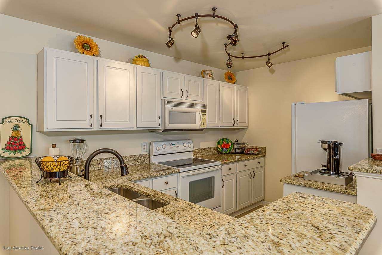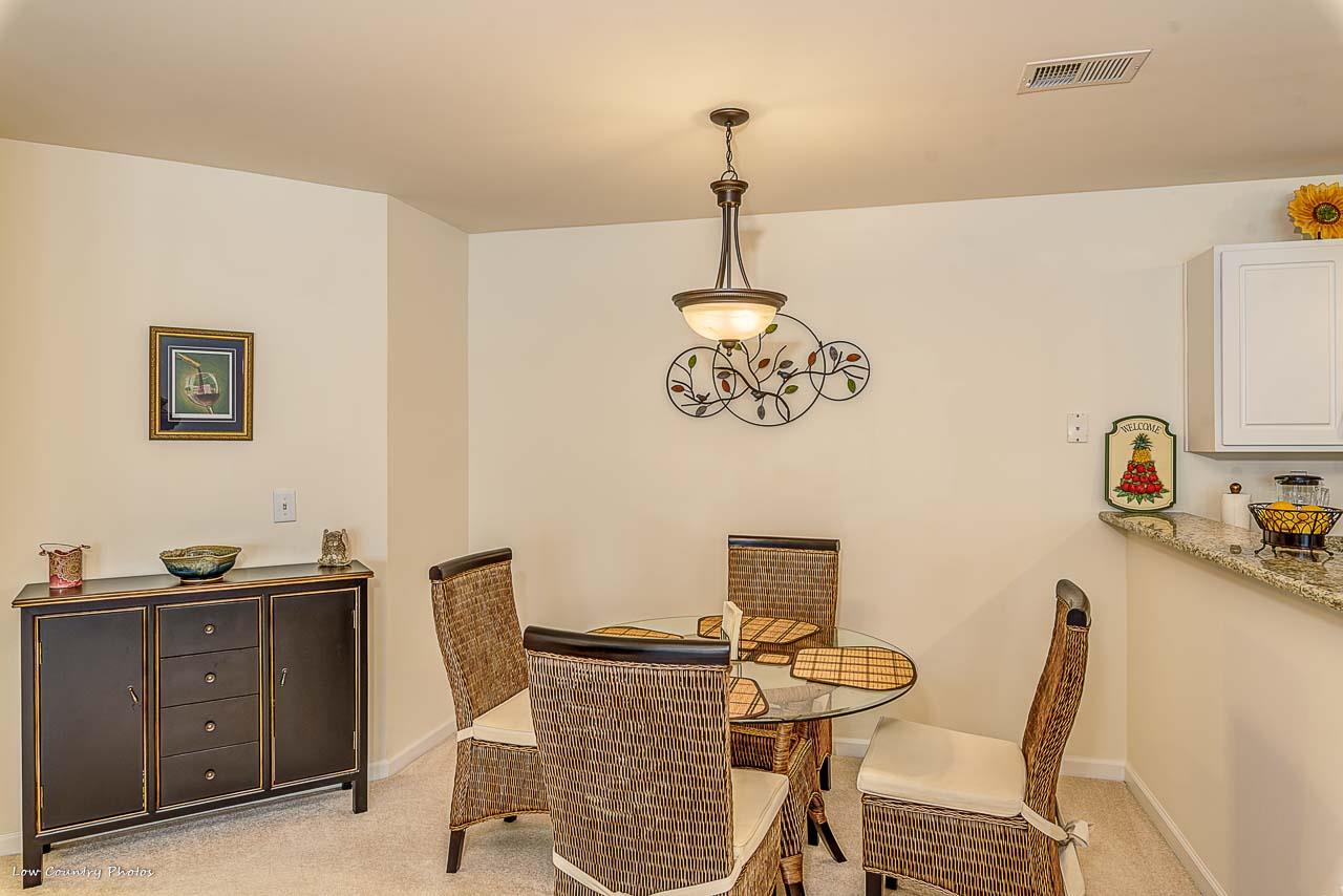Look no more: This beautiful, spotless, four bedroom, two bath home is move-in ready! With neutral carpeting, newly tiled floors in kitchen and bath and lots of light, it is both spacious and relaxing. At the end of Lady Banks Lane with privacy, quiet and golf course view, it is the perfect vacation get-away or permanent residence. The fourth bedroom adjacent to kitchen has been used as an office for work at home or could be used for extra storage. The kitchen has granite counter tops, a bar for quick meals and a dining area overlooking the vaulted ceilinged family room. A screened porch off the family room affords additional leisure space and a great spot for afternoon tea. Plantation shutters throughout are included as are all appliances EXCEPT washer and dryer. This is only one of 3 four bedroom units in Wyngate and comes with its own deeded garage near the apartment. Great location: near hospital, shopping, marina, Brookgreen Gardens and the Marshwalk. Pool, walking and fitness trails, gym and optional golf membership available.