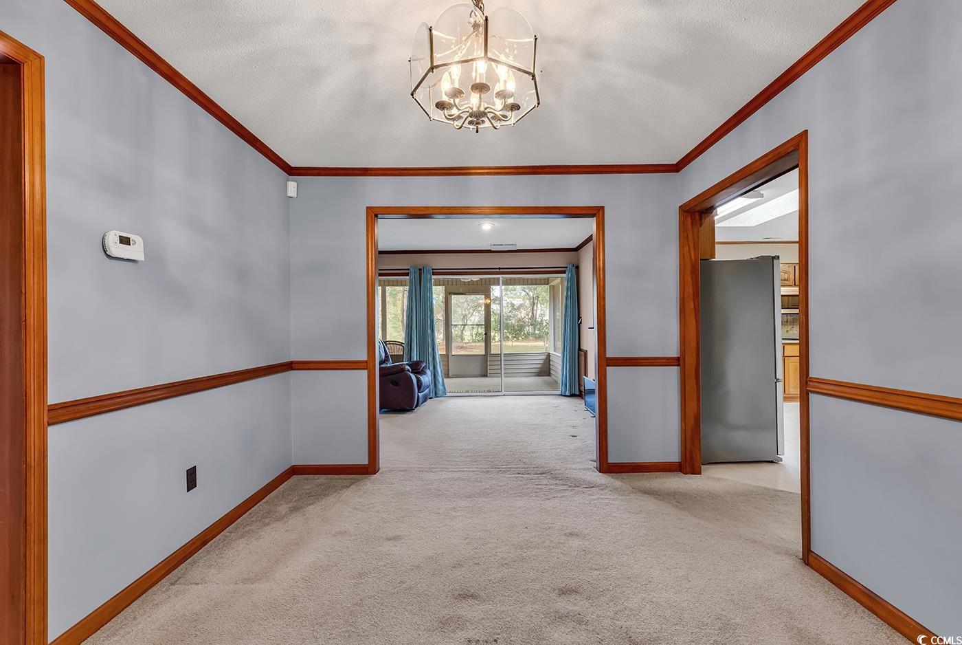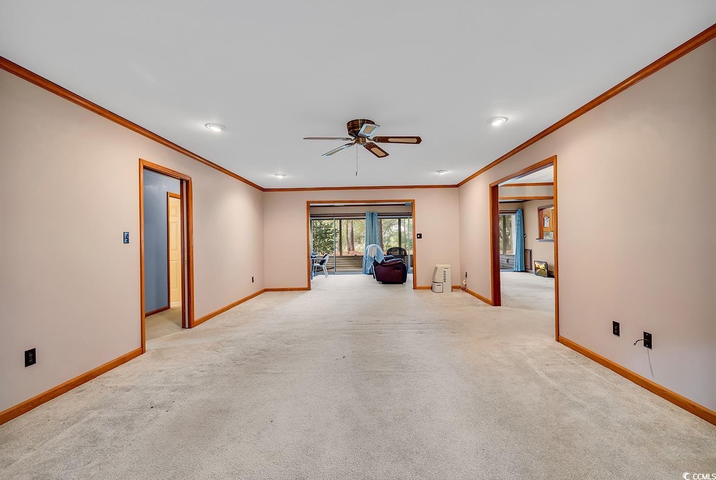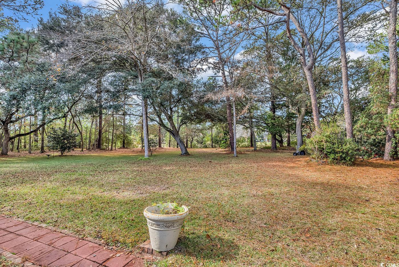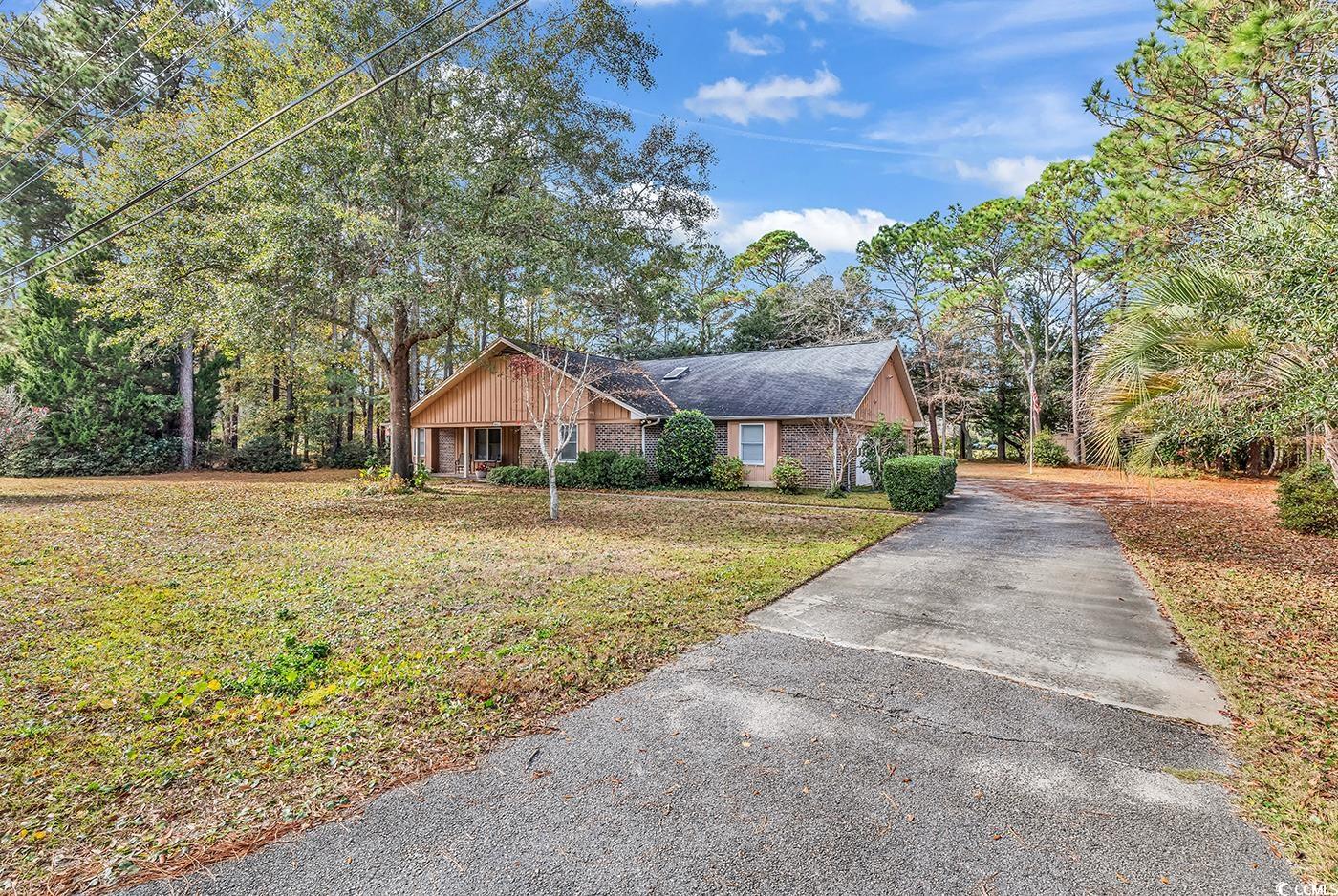 Here is your chance to be in the desirable Pawleys Island neighborhood of Hagley Estates! This single level, brick exterior 3 bedroom, 2 bathroom home has an abundance of space, inside and out. A sizable kitchen with new granite countertops (2020) and LVP flooring (Dec 2023), formal dining room, living room, Carolina room and screened porch with extensive views of your secluded backyard. Loads of cabinets and storage space in the kitchen and the oversized 3 car garage. (880 square feet of garage space!) The 3rd bay is temperature controlled--use it as a workshop, hobby area, golf cart parking and more. This well-built and maintained custom designed home sits on a unique .79 acre lot (originally 2 lots merged together) offers plenty of privacy with its picturesque trees and mature landscaping with the Founders Club Golf Course and a pond as your neighbors behind. This a must see home in scenic Pawleys Island! (All figures are approximate and not guaranteed. Buyer responsible for verification.)