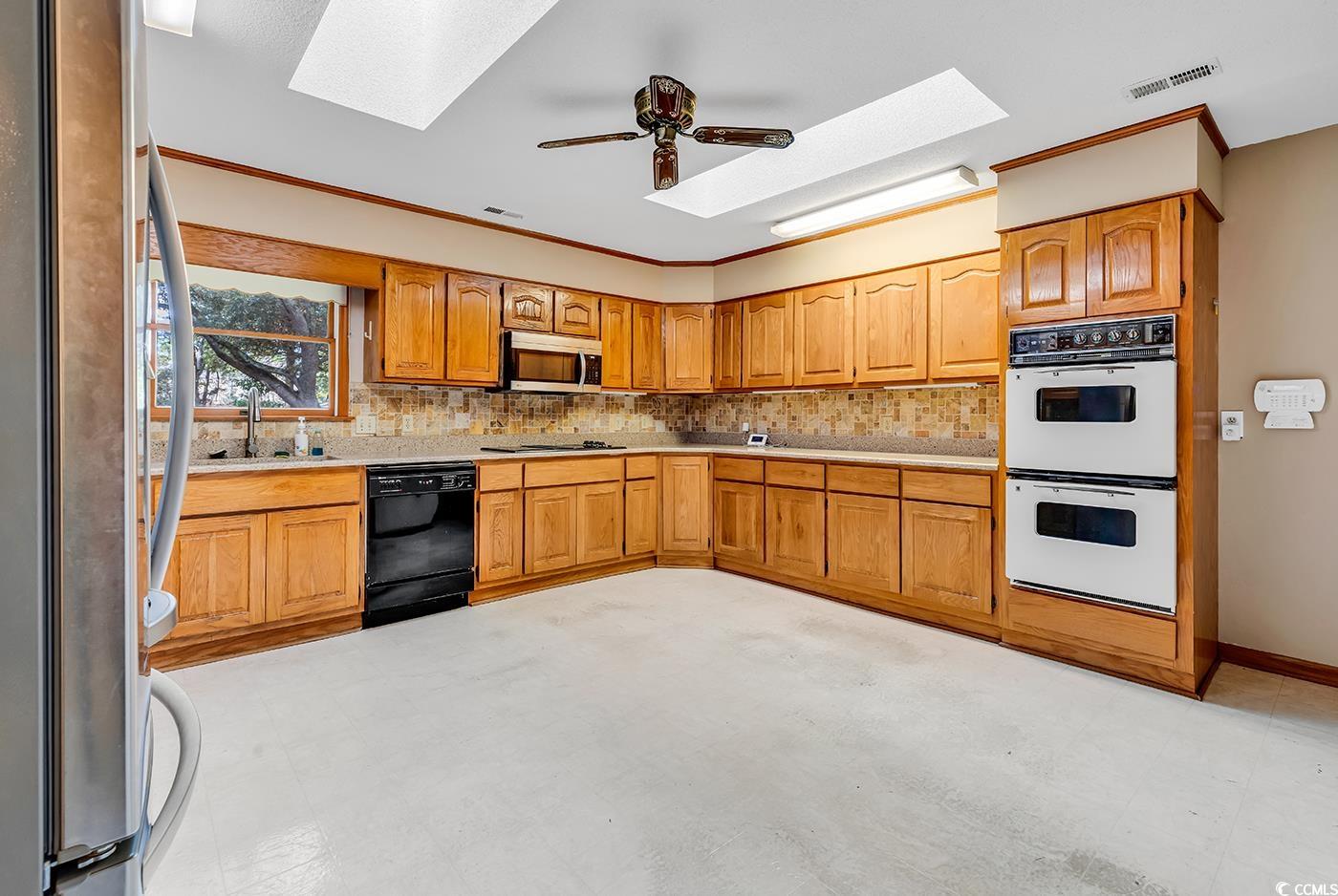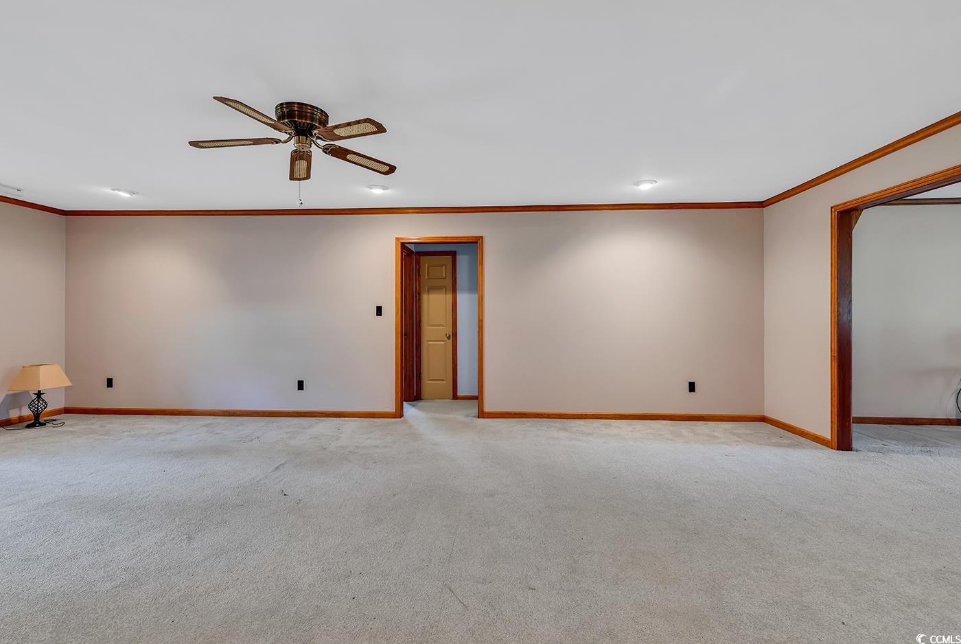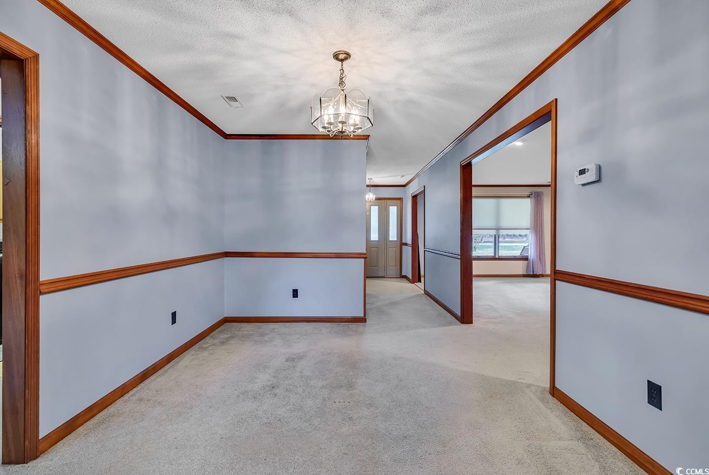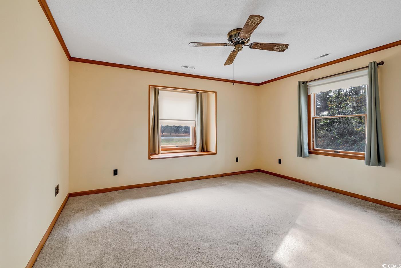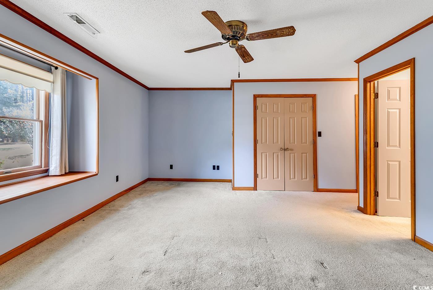 Here is your chance to be in the desirable Pawleys Island neighborhood of Hagley Estates! This single level, brick exterior 3 bedroom, 2 bathroom home has an abundance of space, inside and out. A sizable kitchen with new granite countertops (2020) and LVP flooring (Dec 2023), formal dining room, living room, Carolina room and screened porch with extensive views of your secluded backyard. Loads of cabinets and storage space in the kitchen and the oversized 3 car garage. (880 square feet of garage space!) The 3rd bay is temperature controlled--use it as a workshop, hobby area, golf cart parking and more. This well-built and maintained custom designed home sits on a unique .79 acre lot (originally 2 lots merged together) offers plenty of privacy with its picturesque trees and mature landscaping with the Founders Club Golf Course and a pond as your neighbors behind. This a must see home in scenic Pawleys Island! (All figures are approximate and not guaranteed. Buyer responsible for verification.)