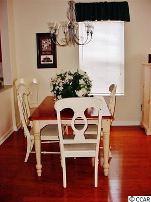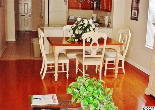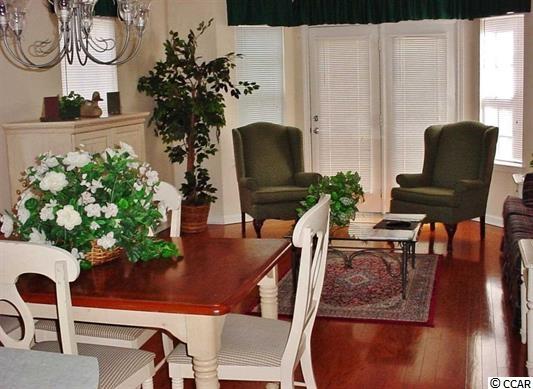 Looking for a perfect Myrtle Beach PIED A TERRE getaway, this two bedroom two bath first floor corner unit is nice and bright. Very private back yard setting with a large concrete patio surrounded with mature landscaping. The Pool and tennis courts are right outside the front door.Three golf courses and golf school are also within this 1300 acre gated community. Recent improvements of the inside are wood floors and a complete new outside compressor and inside coil HVAC system. Both these items have really enhance the value of this unit over the units for sale. New windows were just installed.Prefect retirement home or second home with rental opportunity. Being sold completely furnished with 2 double beds in each bedroom and lovely dining room & Living room set. Come see this one before it gets away.6 miles from downtown Myrtle Beach.