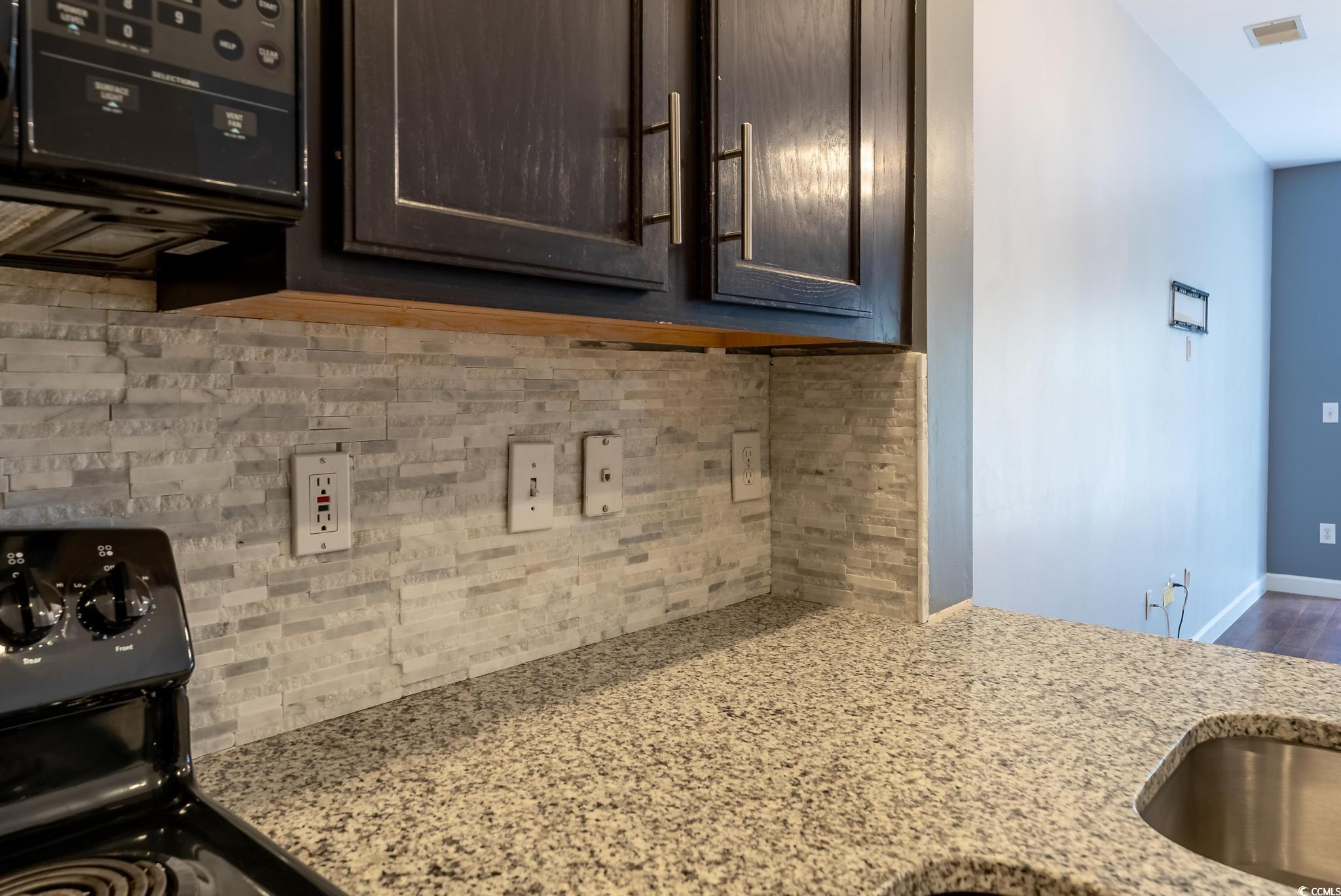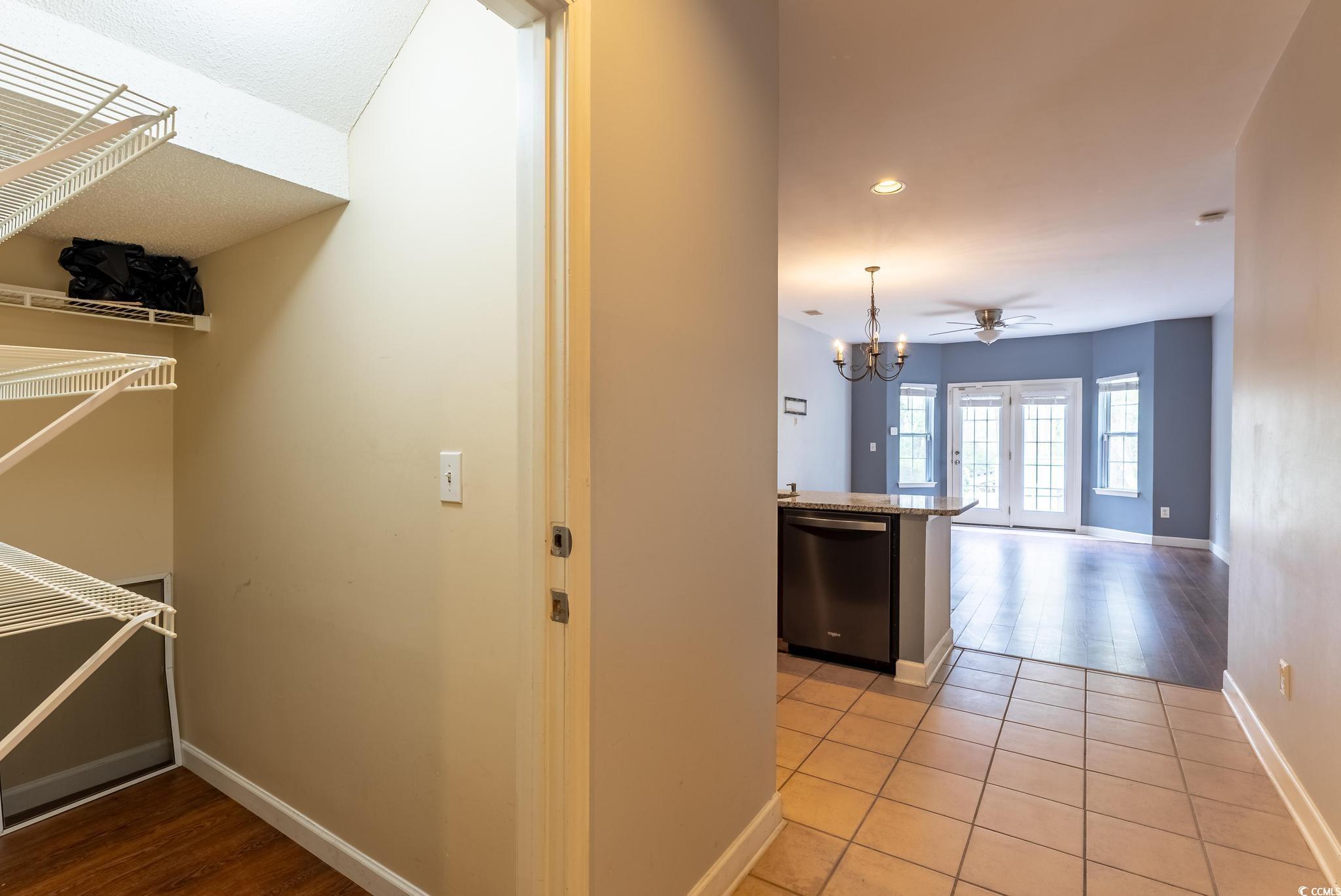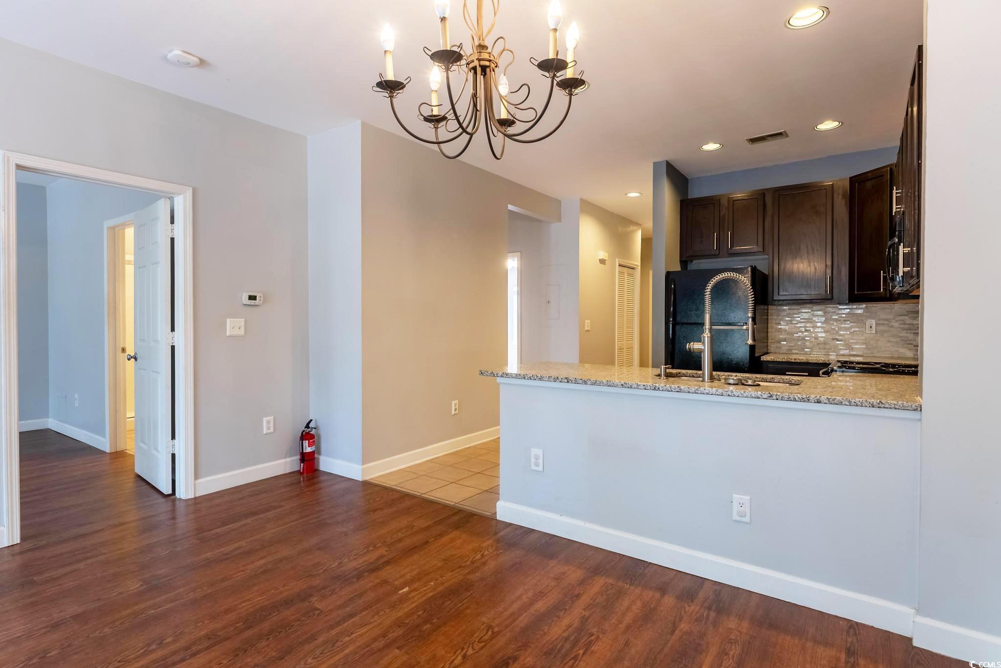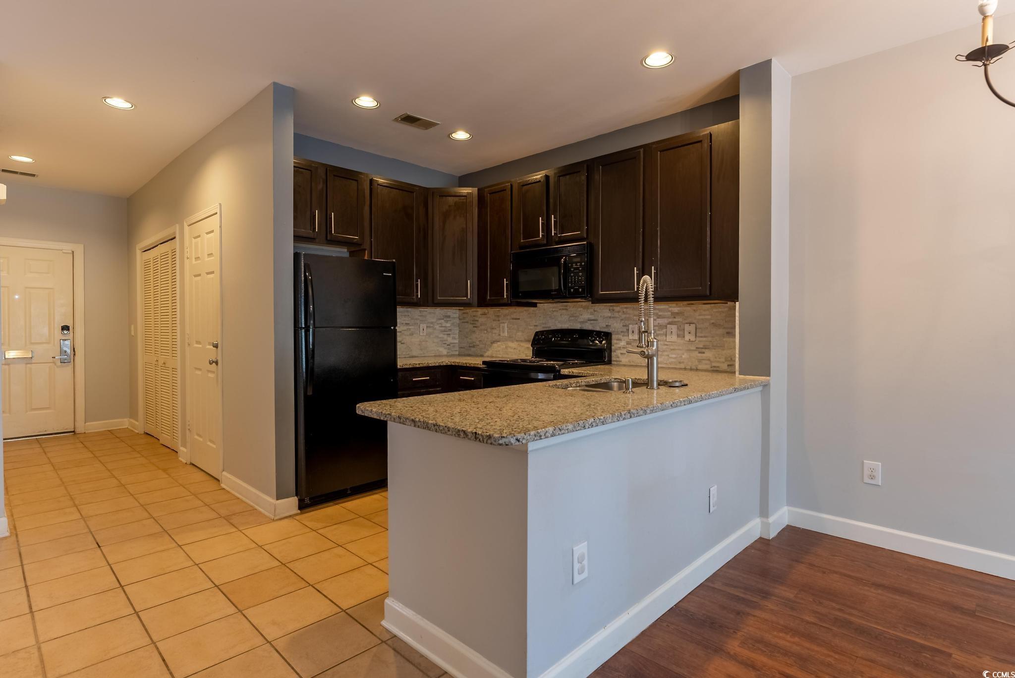 This first floor end unit features an open floor plan with living dining and kitchen, equipped granite countertops, all appliances, and including the washer and dryer. It is a 2 bedroom and 2 bath unit with a wooded area behind the building and an outside patio. Flooring is a tile in entry, kitchen, and bathrooms and wood veneer in the rest of the unit. It is a perfect choice for a primary residence, second home, or investment property and offers wonder amenities such as outdoor pool, tennis courts, pickleball courts, restaurants, and more. Short- or long-term rentals are available, and this is a rental-ready condo and priced to sell. Legends Golf & Resort, which has three on-site golf courses, Mooreland, Heathland and Parkland with two other affiliated courses, Oyster Bay and the Heritage. There is a great practice facility, the Classic Swing Golf School, a Scottish style clubhouse, and the famous Ailsa Pub. Legends is located just minutes away from Tanger Outlets, restaurants, shopping, airport, beach, and everything else Myrtle Beach has to offer! Come live the Legendary Lifestyle!
