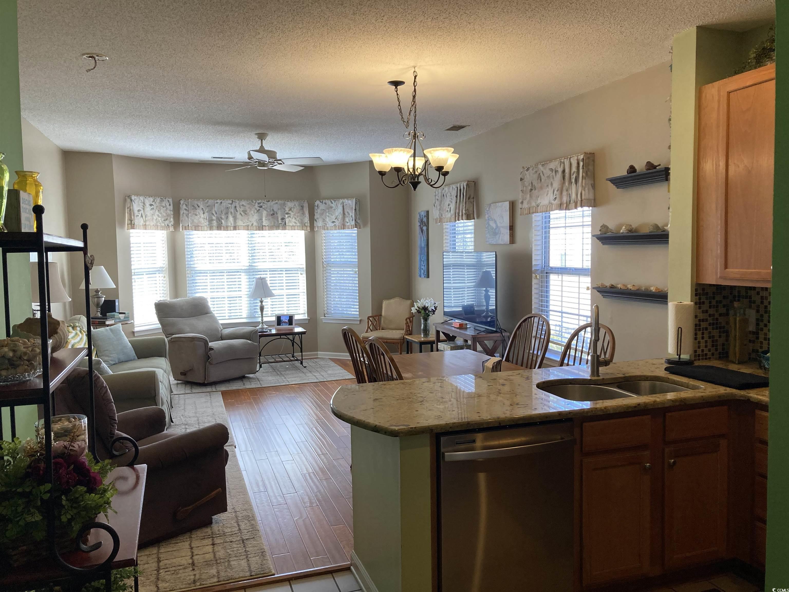 Welcome to this well maintained 2 bedrooms, 2 bath 2nd floor unit in the highly sought-after community of Turnberry Park at the Legends. This unit has a private side entrance with a storage closet at the bottom of the steps for golf clubs and beach toys. Unit features an open floor plan. That is perfect for entertaining. The kitchen is spacious and offers plenty of counter & cabinet space with granite countertops and stainless-steel appliances also a nice tile backsplash. Tile in kitchen and wet areas. Beautiful laminate flooring in living room. Washer and dryer in unit which conveys. This unit is move in ready being sold fully furnished except for a few items. Turnberry Park and Legends offers great amenities including outdoor pool, tennis courts, a clubhouse and golf courses, onsite dining, and so much more. The community has a great location in the Carolina Forest area, close to shopping, dining and just a short drive to the beach! Schedule you're showing today. This unit is a must see!