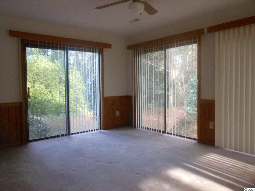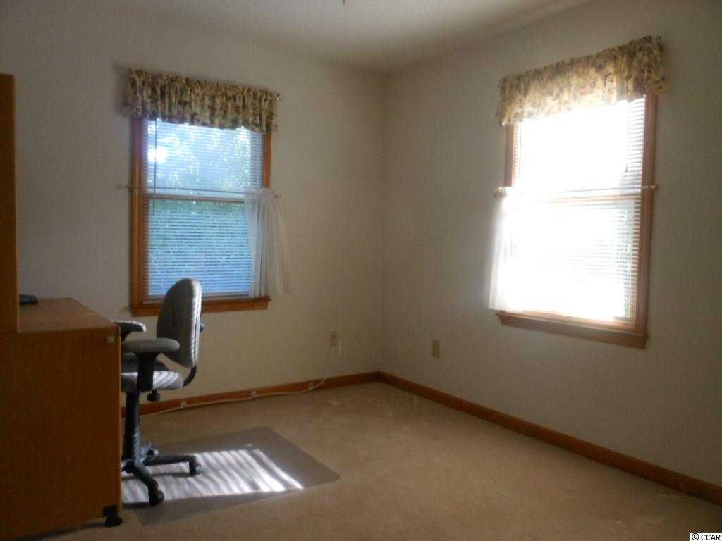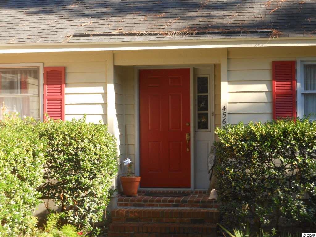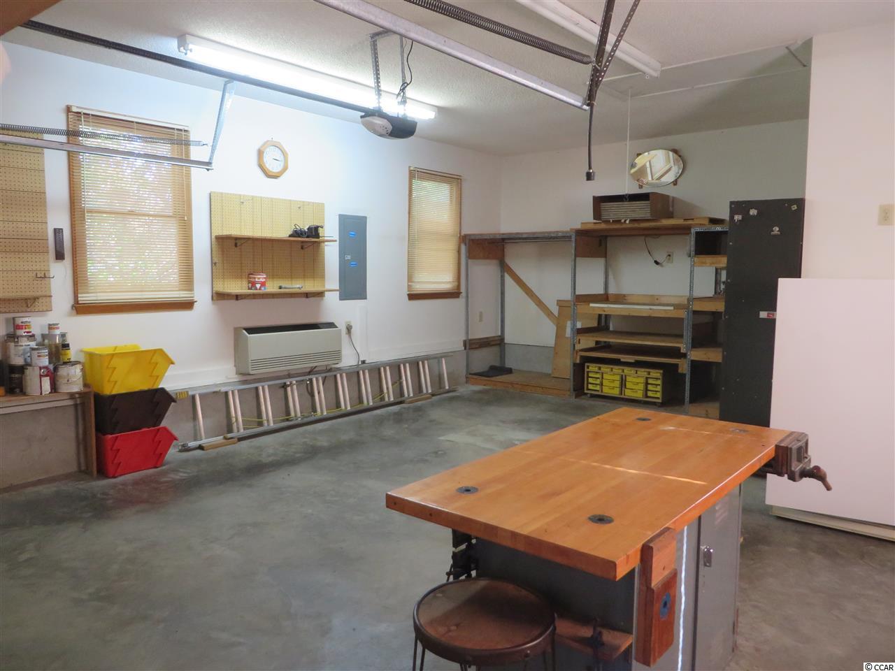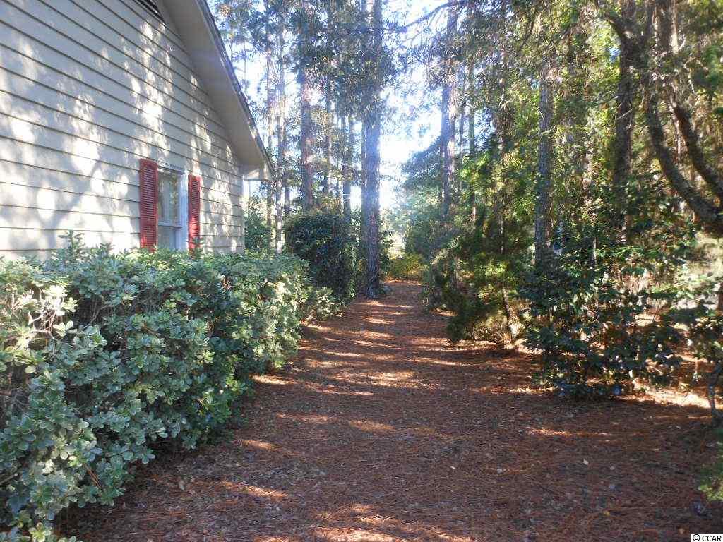 One owner home in Hagley Estates community. Surrounded by trees and mature shrubbery. Flowering bushes and pine trees buffer home from green and streets. Foyer entry with closet, slate floor. Open, split plan with larger Master, walk in closet. Slider to deck. Stone gas fireplace & hearth. 2 bedrooms and bath on opposite side of home off kitchen. 12 x 23 Carolina room also leads to deck. Ceiling fangs. Gas connection for gas grill on deck. Open kitchen with window, counter space and cabinets. Storage above both garage & carport. 1.5 car attached garage used as work shop by previous owner, has wall heat/air wall unit. 22 x 23 carport. Room for small boat inside or out. Detached storage building as well. It's 1 mile to the Hagley boat landing. Convenient to shopping on Highway 17