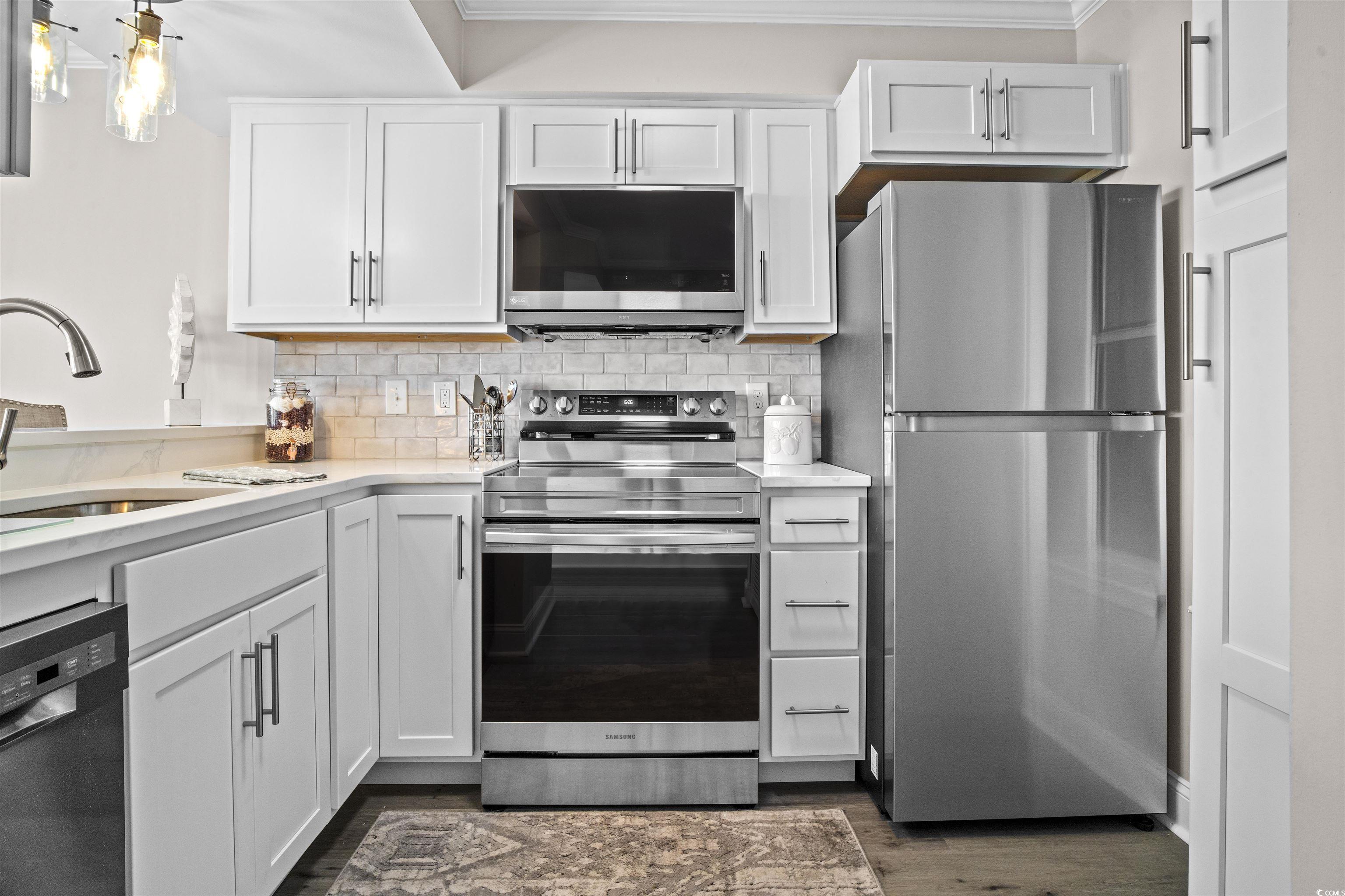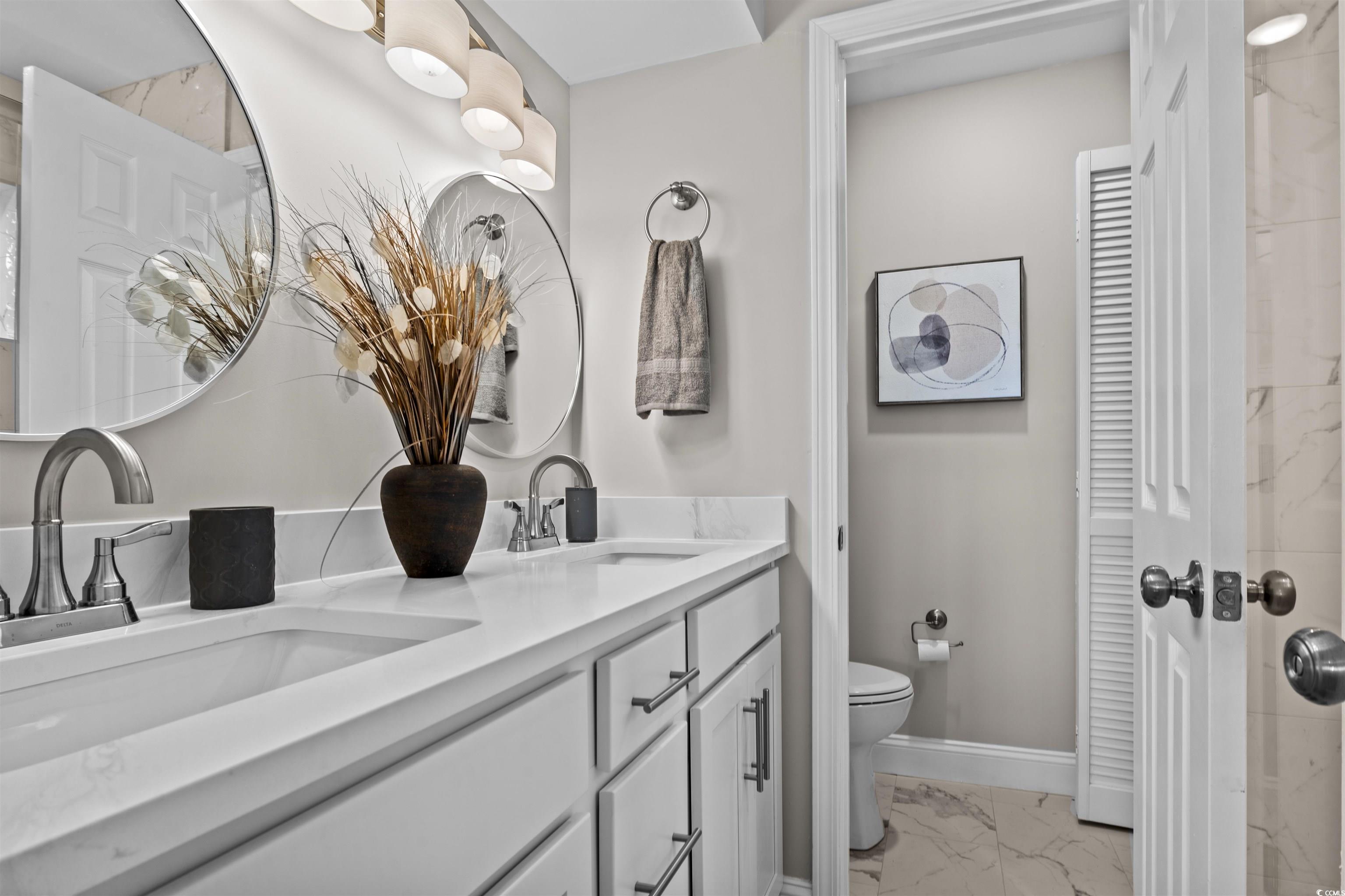 Welcome to this beautifully fully remodeled end-unit condo with breathtaking views of the waterway, nestled in the highly sought-after Cascades community in Little River. From the moment you step inside, youll notice the fresh, modern updates throughout. The entire condo features new flooring and fresh paint, giving it a clean and inviting atmosphere, with elegant crown molding adding a touch of sophistication to every room. Both bedrooms and entry closet are outfitted with custom-built closets, offering ample storage solutions. The master bedroom includes a new sliding door that opens to a private space with scenic waterway views. The bathrooms have been transformed into spa-like retreats with floor-to-ceiling tiled showers, custom sliding glass doors, and all-new vanities, toilets, and mirrors. Every detail has been thoughtfully considered, including new door hardware, hinges, a brand-new front door, and a front window for enhanced security and style. Upgraded electrical outlets, switches, and light fixtures, along with new ceiling fans, ensure modern functionality, while a new thermostat and smoke detectors offer added peace of mind. In the kitchen, you'll find all-new soft-close cabinets, a sleek quartz countertop, a custom backsplash, and a brand-new sink and faucet. All new stainless-steel appliances complete this stylish, modern kitchen. Just minutes from local dining, shopping, and the stunning nearby beaches, this condo is move-in ready and ideal for anyone looking to enjoy modern comforts in a serene, picturesque environment. Whether you're seeking a savvy investment, a peaceful vacation escape, or a permanent waterfront haven, this property offers it all. Seize the opportunity to make this exceptional condo your own!