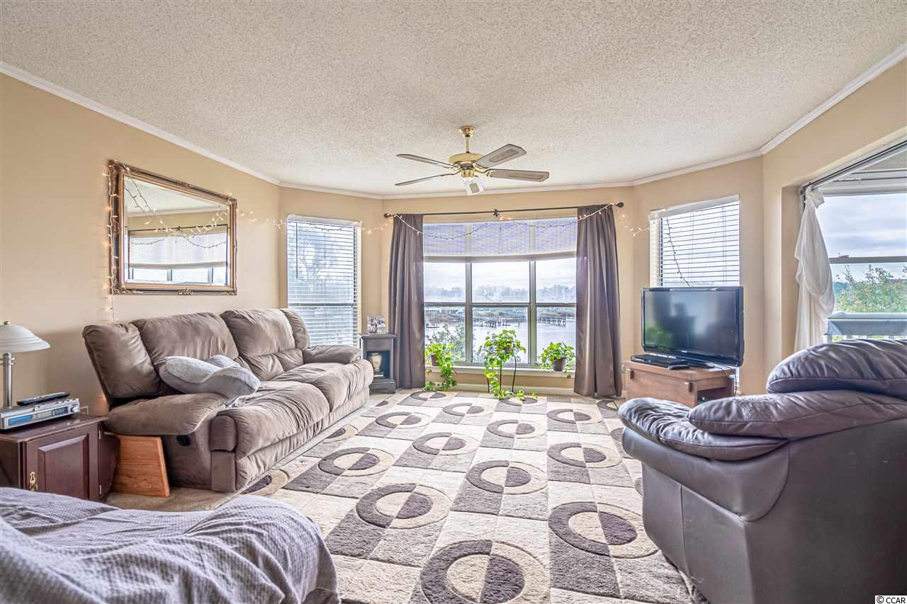 THE VIEW! This is a top floor end unit in an elevator building directly on the Intracoastal Waterway. The screened in porch has been converted into a Carolina room which also overlooks the Waterway. This has been grandfathered and cannot be replicated. The entire front of the unit has large windows that give you scenic views traveling up and down the Intracoastal. This condo will require some updating and is priced accordingly. Located in the heart of Little River close to beaches, shopping, restaurants, golf, and so much more. This condo features a large walk-in closet in the master, an interior storage closet and an exterior storage closet. The popular East Port community also features it on 18 hole golf course and community pool.