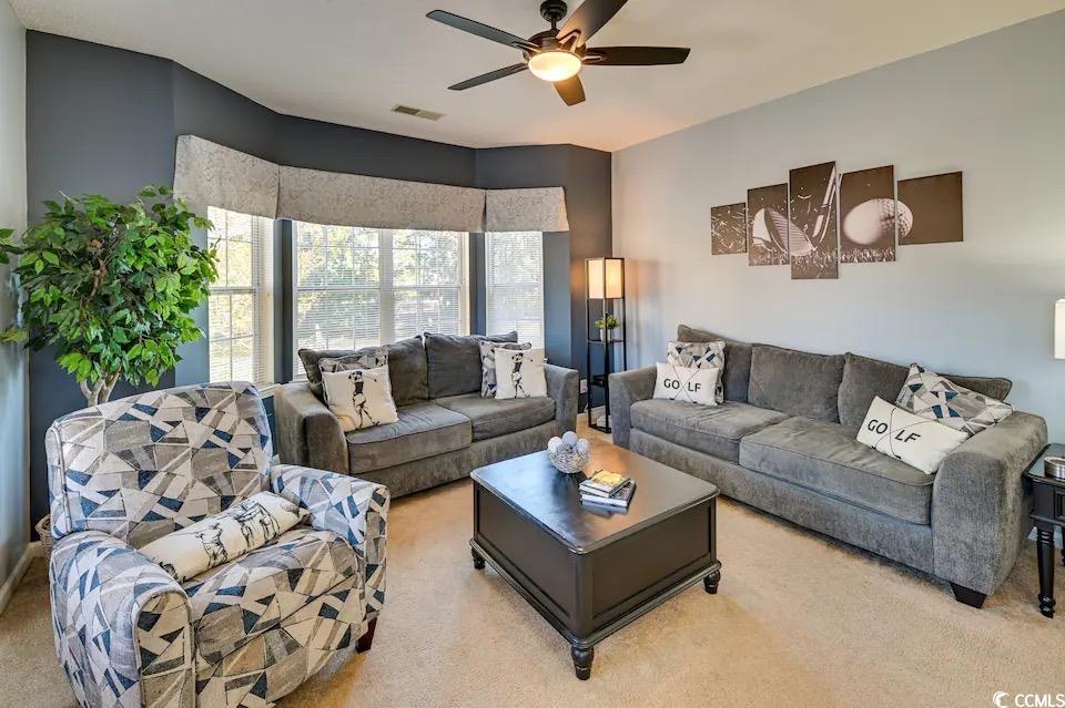 Welcome to a golf lovers dream in Turnberry Park at Legends! This is a top floor, fully furnished 2-bedroom, 2-bathroom end unit. As you enter into a private foyer there is a designated space for your golf bag. Continue upstairs and step into the modern kitchen equipped with sleek stainless steel appliances. The washer/dryer combo that conveys adds to the ease of living. Wake up to tranquil views in the master bedroom overlooking the picturesque pond, while the spacious second bedroom offers versatility with enough space for 3 queen-size beds, ideal for guests or a growing family. With the HVAC system replaced in 2018, enjoy peace of mind and comfort in every season. Experience the epitome of resort-style living with Legends amenities, including 54 holes of golf, an onsite restaurant, a sprawling 30-acre practice facility, tennis courts, a refreshing pool, and much more. Whether youre seeking a permanent residence or a lucrative investment opportunity with short-term rentals allowed, this property offers the perfect blend of convenience, and endless leisure possibilities. Dont miss outschedule your showing today and indulge in the lifestyle you deserve!