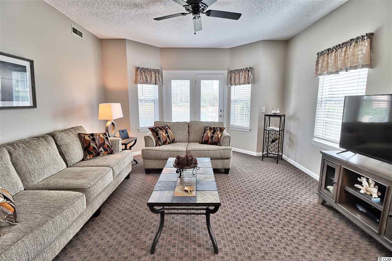 Immaculate, turn-key golf villa in one of the most popular resorts and highly desired location, the Legends Golf Resort. This 2br/2ba, fully furnished, 1st floor, end unit, has incredible views of the 2nd tee box of the Parkland course. Serenity is the mood, while listening to the soothing water fountain in the pond as you wind down the day on the back patio. This unit has designer carpeting, newer kitchen appliances, newer light fixtures in both bathrooms, new ceiling fan in living room, and new light in dining area. Living room furniture is 2 yrs old. HVAC was replaced in 2014 and hot water tank was replaced in 2016. Several windows have been replaced within the last 2 years. There are three pools, along with hot tubs and tennis courts, and a stones throw away from the Ailsa Pub. Turnberry Park is situated within the 1300 acres that make up the Legends Resort, offering tremendous amenities as 3 award winning golf courses, walking trails, biking paths, massive putting green, extremely large Pro Shop, 30 acre lighted practice range, the Highlander Pub inside the large Clubhouse, and evening gated security. Legends is located across from Tanger Outlets on Hwy 501, close to the Myrtle Beach Airport, local hospitals, and all the dining, shopping, entertainment, and area attractions of the Grand Strand, and just minutes away from the beautiful beaches.