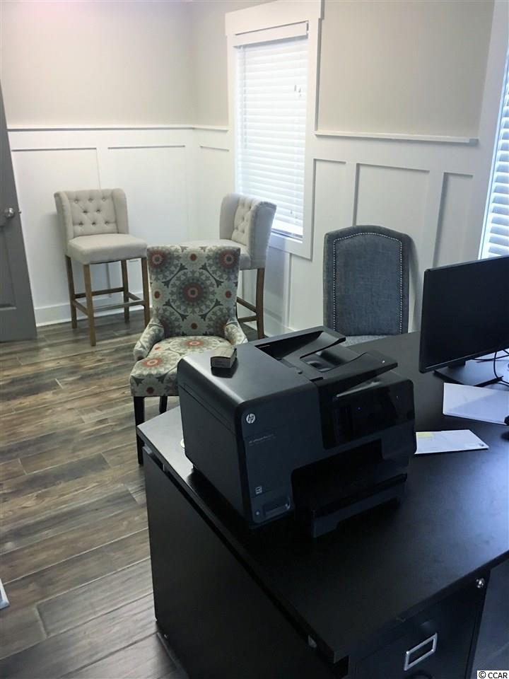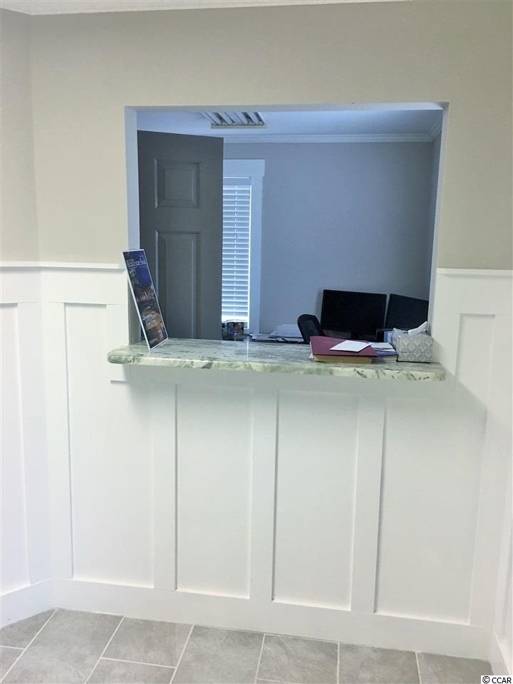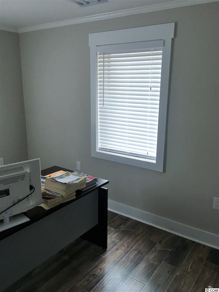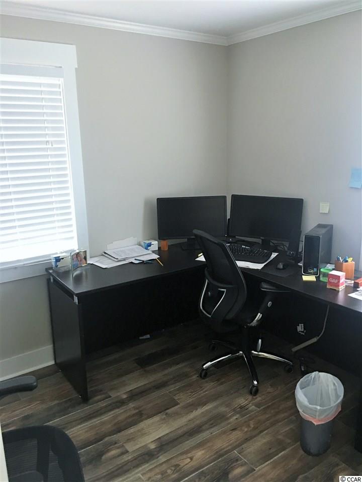Newly renovated office space in a prime Myrtle Beach location. This first floor end unit features 6 private offices, conference room, kitchenette, lobby, storage room, bathroom and a covered rear porch. The office has a main and rear entrance and sits directly on Oleander Drive. The inside was completely redone with new flooring, trim, paint, granite, and custom features throughout. Very low maintenance and the low monthly POA includes water, insurance, exterior maintenance and trash. Very easy to see.