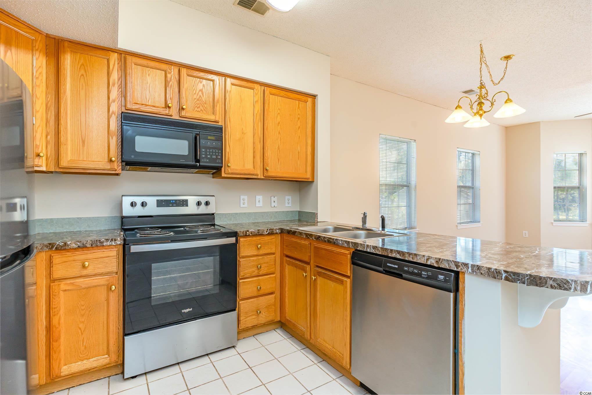 NEWLY UPDATED! Owner just had the entire unit painted, new carpets in bedrooms and flooring in living room. New HVAC in 2021, new fridge, new stove and new washer/dryer! MUST SEE this spacious 3 bed 2 bath second floor end unit in the highly sought after community, Turnberry Park at the Legends. These unique villas offer only 6 properties to a building with this second floor villa having a private stairway to the top. The great open floor plan flows from the Great Room and Kitchen with all bedrooms forking off into their own private areas. The two full baths round out the plan with the Owner's bath offering a separate vanity and tub/shower. The Legends is an amazing golf complex with 3 beautiful layouts and one of the areas best clubhouses. From this great villa you are only steps from the famous Alisa Pub. Fill your days with golf, swimming pools or tennis. There is a lighted practice range and golf school on-site. The neighborhood is conveniently located in the Carolina Forest area, close to shopping, dining and just a short drive to the beach! Don't miss out on this opportunity!